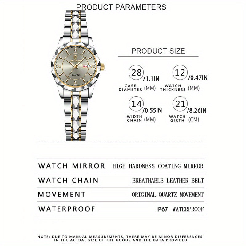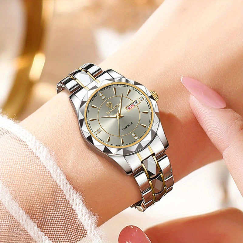 BINBOND շքեղ նորաձև օրացույցով և ամսաթվով կանացի քվարցային ժամացույց