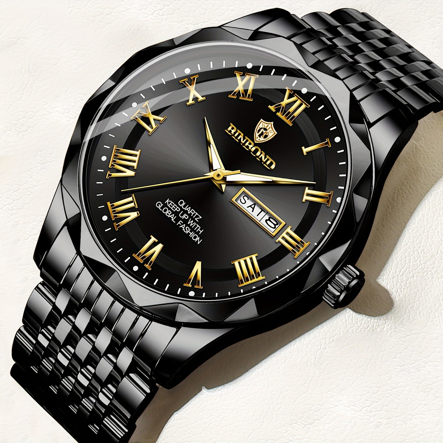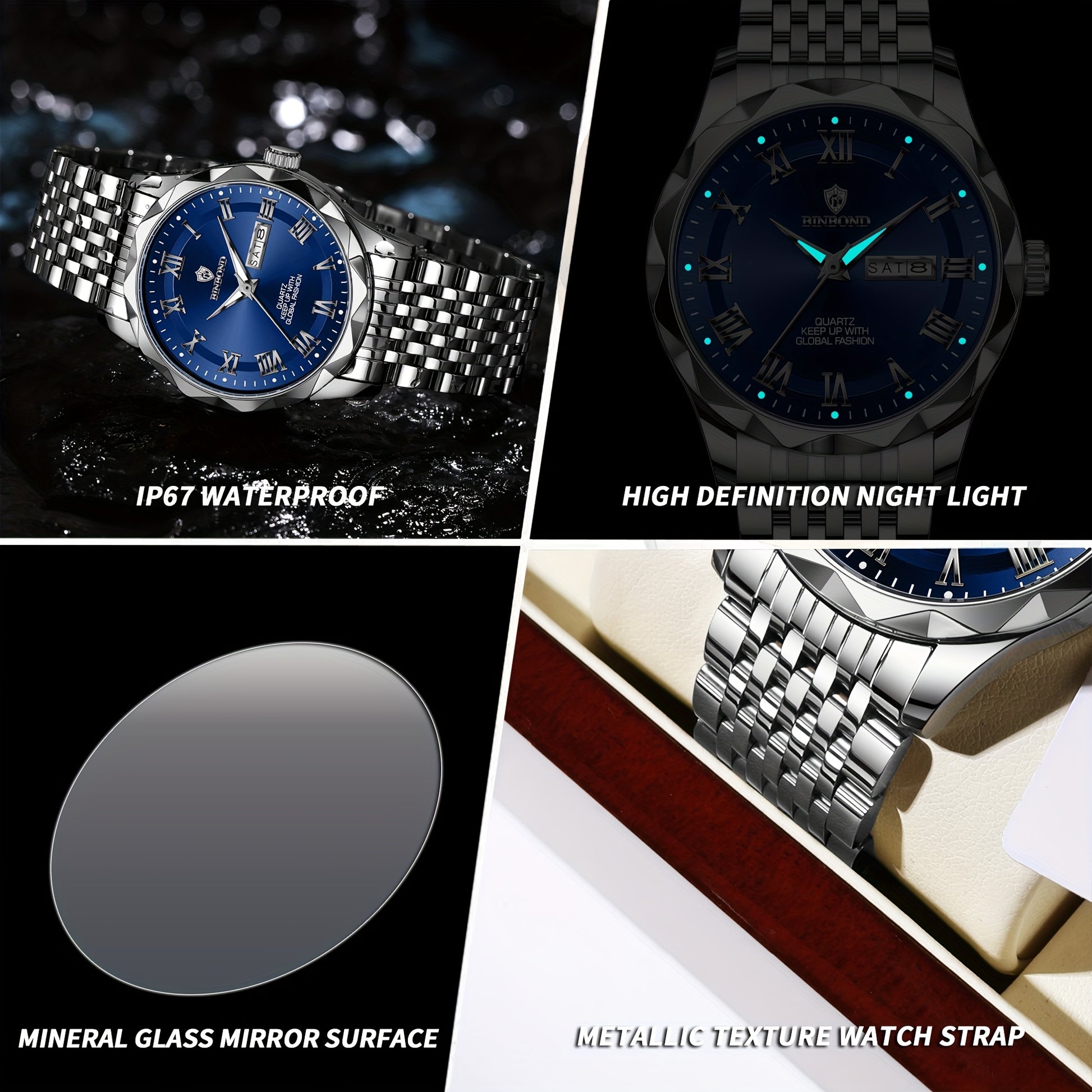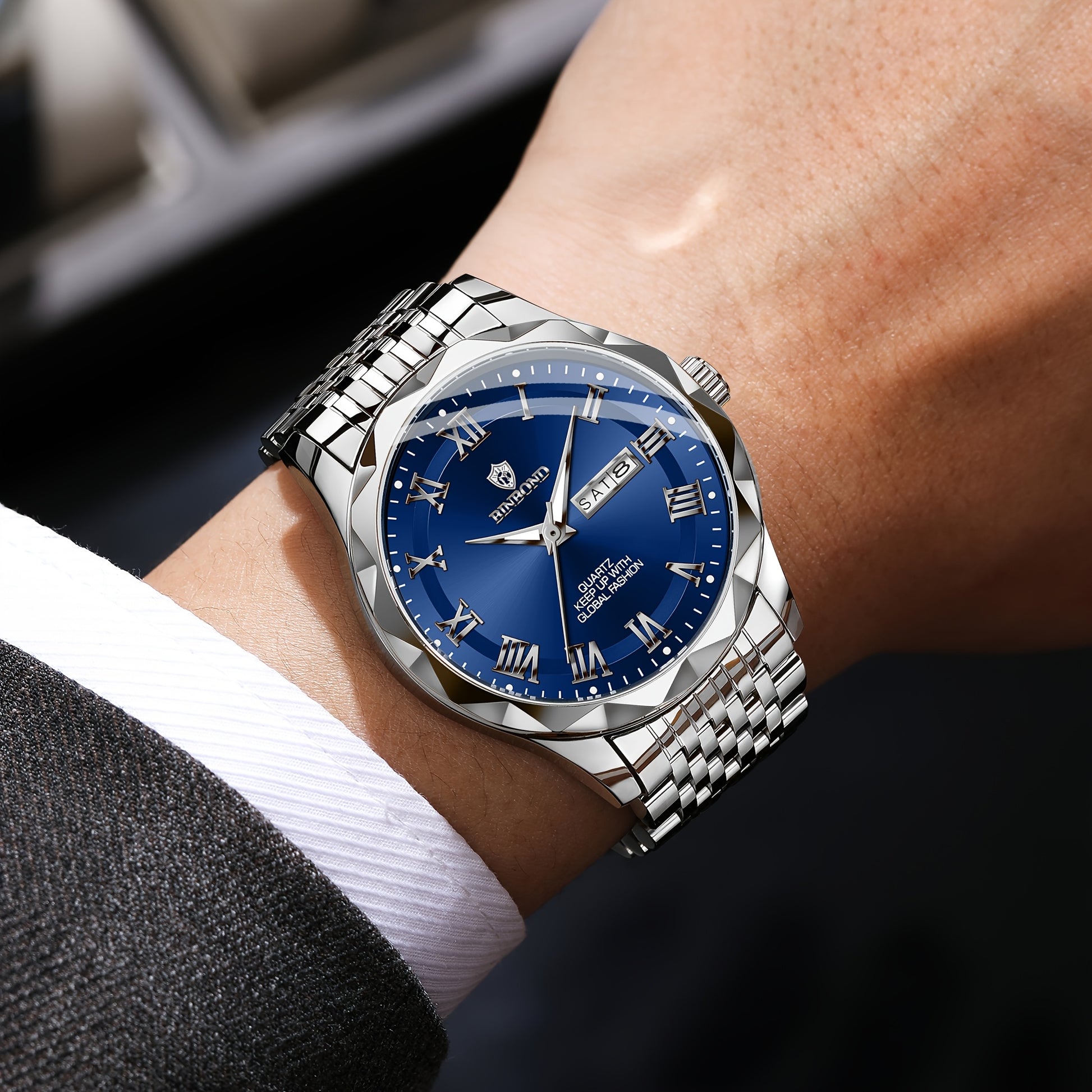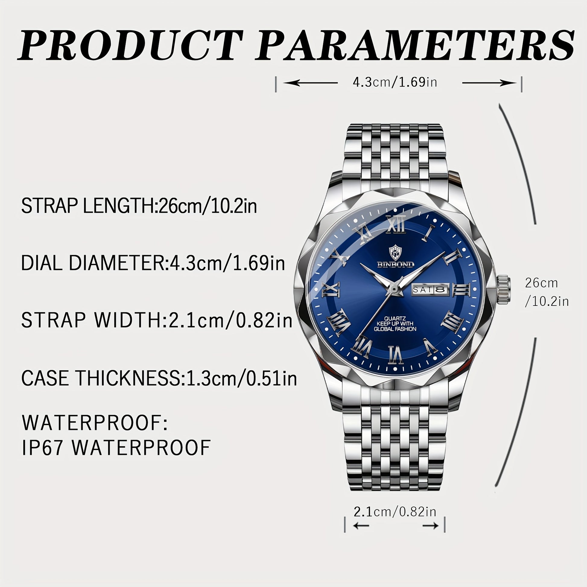 BINBOND Men'S Quartz Watch - Waterproof, Stainless Steel, Luxury Business Style with Stopwatch & Date Display, Blue & Silvery Dial, Electronic Movement, IP67 Rating, Elegant Male Wristwatch for Professional or Casual Wea