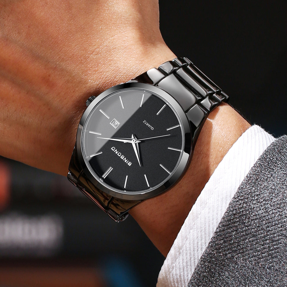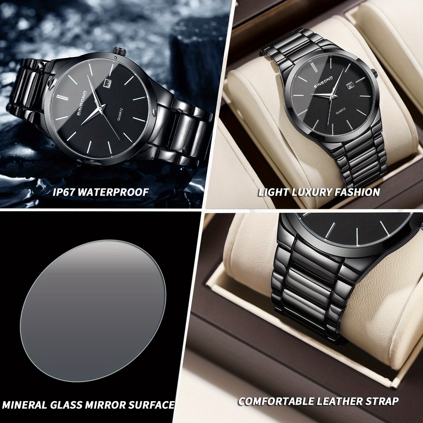 BINBOND Men'S Waterproof Quartz Watch - Casual Business Style, Luminous, Date Display, Stainless Steel Band, Round Alloy Case, Battery-Powered with Electronic Movement, Ideal for Daily Wear, Business Accessory|Minimalist Watc