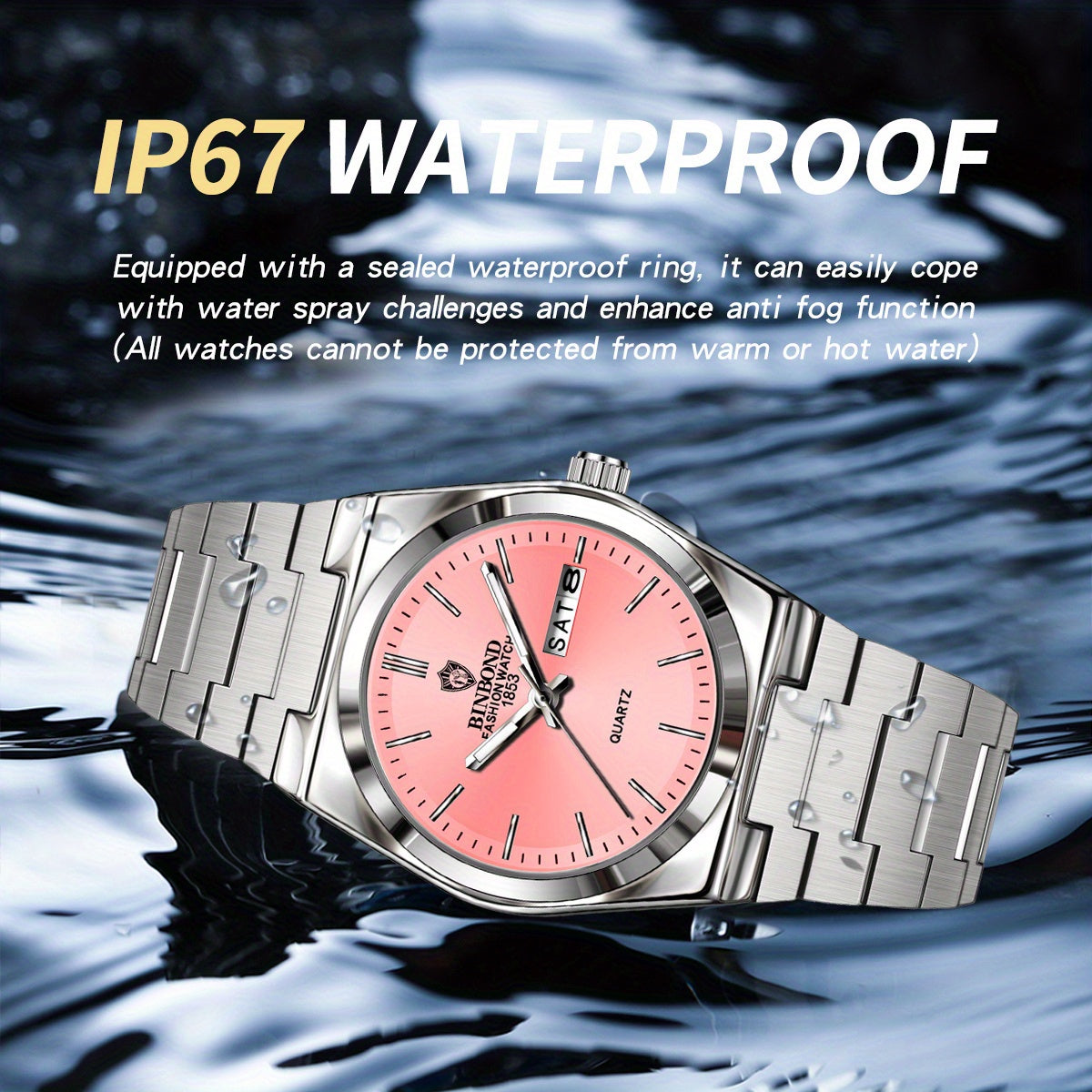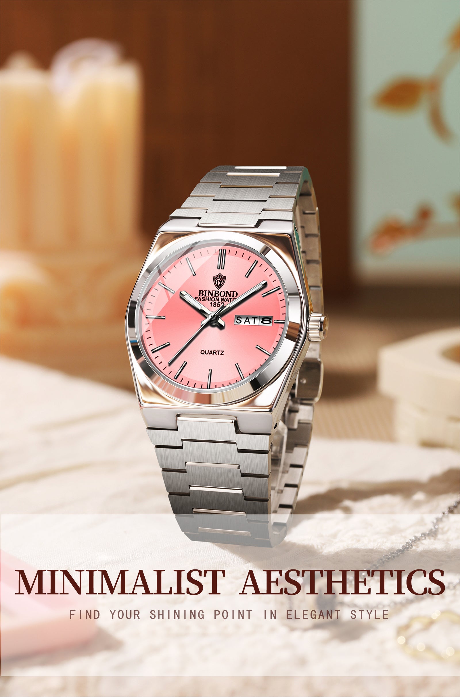 BINBOND կանացի նորաձև ժամացույց, կրկնակի օրացույց, քվարցե մեխանիզմ, չժանգոտվող պողպատե ժապավեն, կլոր պատյան, իդեալական է ամենօրյա կրելու և նվերների համար, ոճային աքսեսուար | մինիմալիստական դիզայն | դիմացկուն ժամացույց