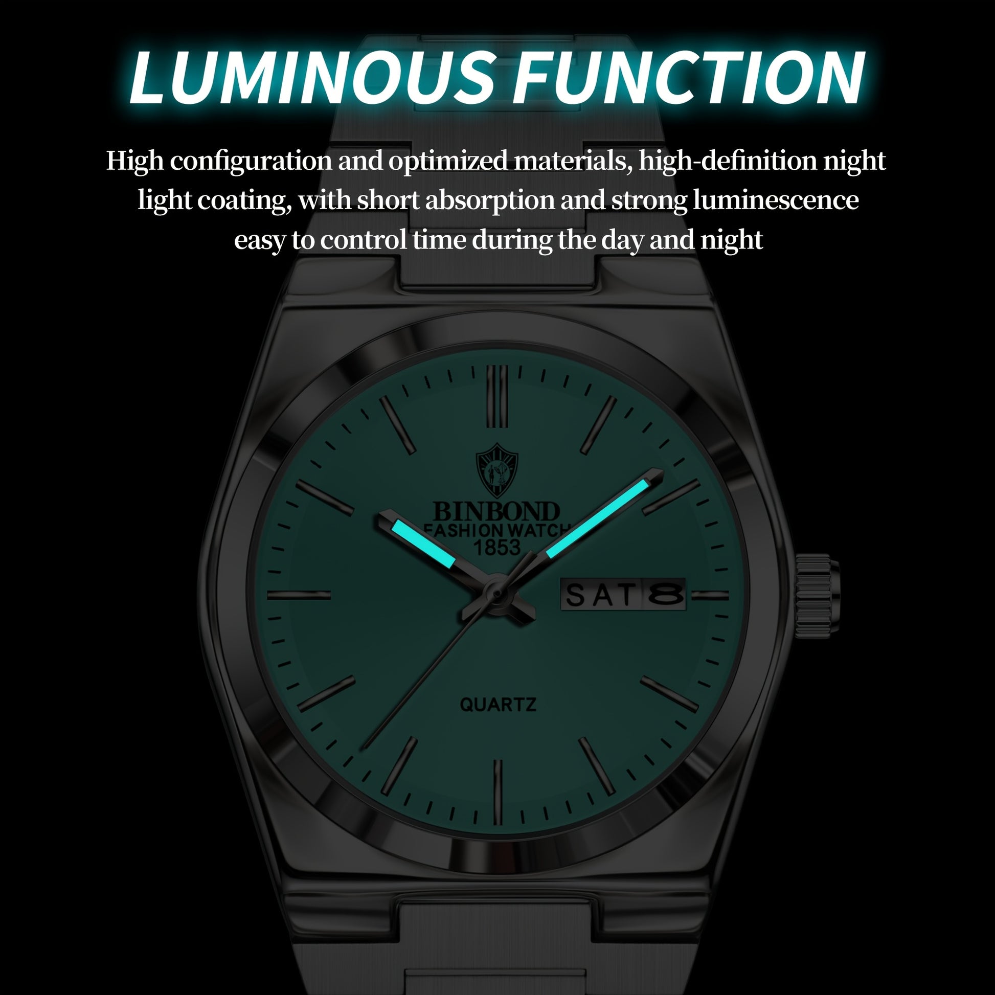 BINBOND Women'S Quartz Watch - Elegant Business & Leisure Timepiece, Stainless Steel Band, Round Zinc Alloy Case, IP67 Rating, Stopwatch Feature, Electronic Drive, Pointer Display, Durable Design for Weeks & Days, Business Ti