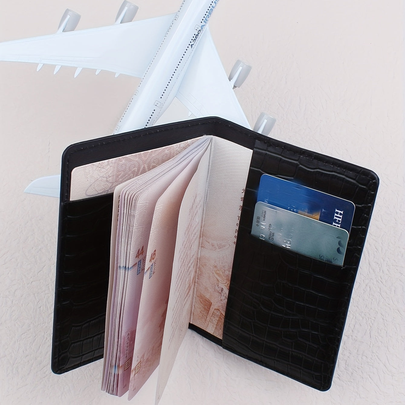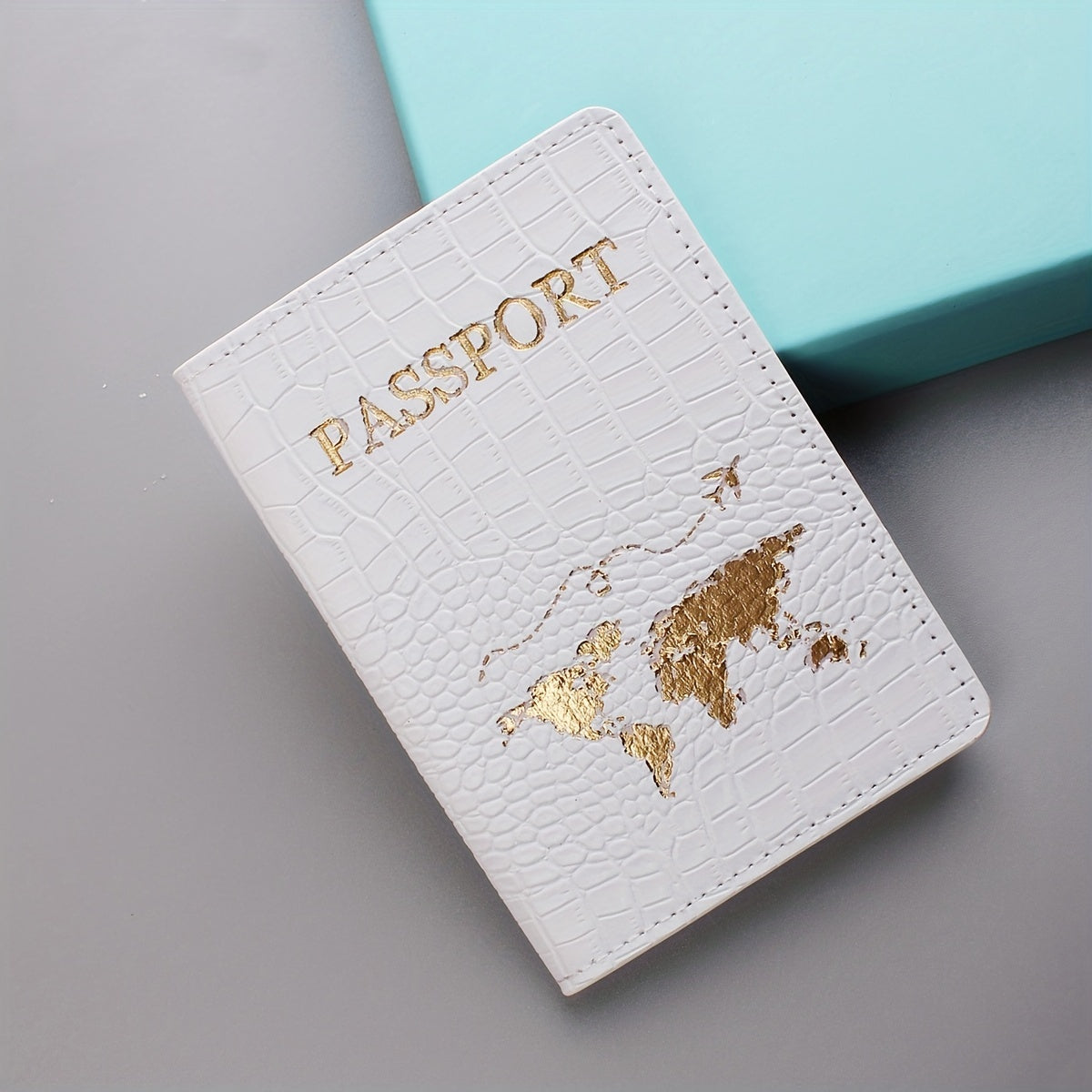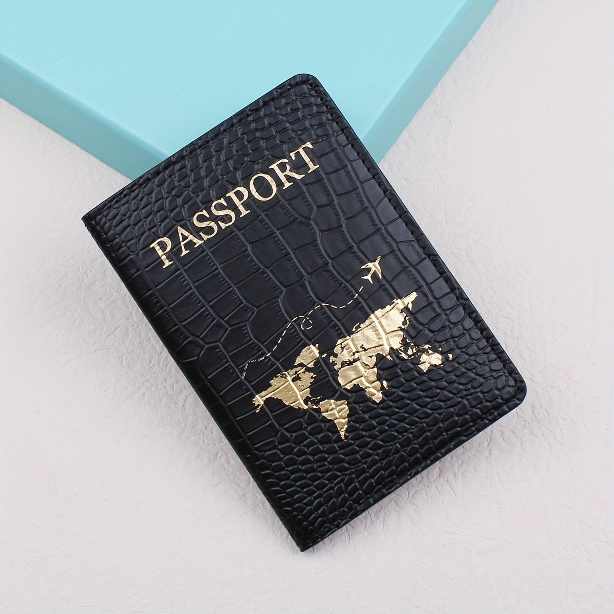 Սև կոկորդիլոսով դաջված ճամփորդական անձնագրի կրիչ՝ ոսկե տառերով և աշխարհի քարտեզի ձևավորումով – Թեթև, բիծակայուն, հակագողության սինթետիկ կաշվից փաստաթղթերի կազմակերպիչ արձակուրդի համար