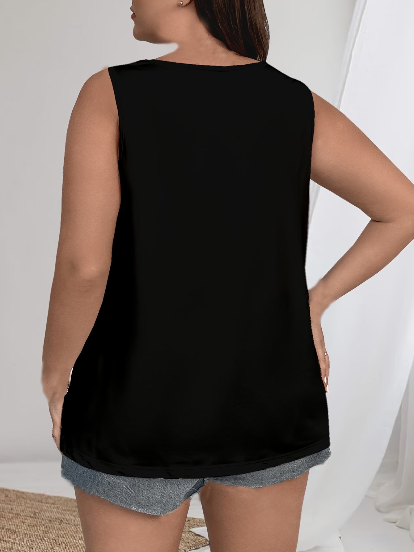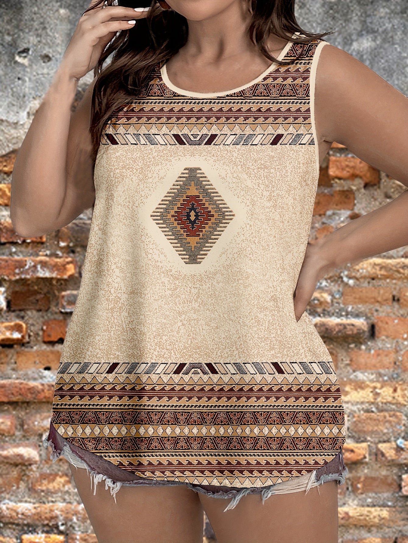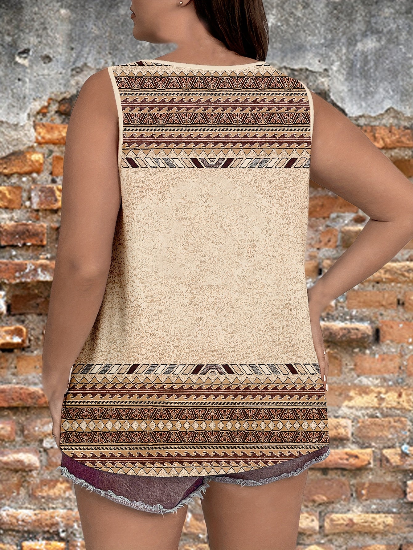 Բոհեմյան տպագրված տանկի վերնաշապիկ կանանց համար, պլյուս չափի սև անթև շապիկ, սովորական պարանոցի տրիկոտաժե ժիլետ՝ թեթև ձգվող գործվածքով, պոլիեսթեր 95% էլաստան 5%, երկրաչափական նախշ, գարուն/ամառ նորաձևություն