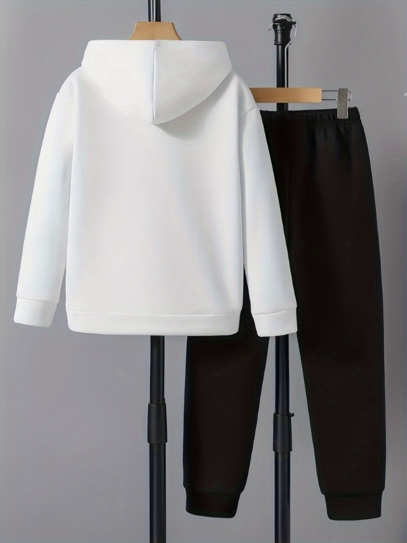 Boys' 2pcs Hoodie and Sweatpants Set with EMPORIO Print, Polyester Material, Comfortable Fit for Autumn/Winter Wear, Perfect for Daily Use and Outdoor Activities | Back-to-School Gift | Ideal for Home Sports | Essential for R