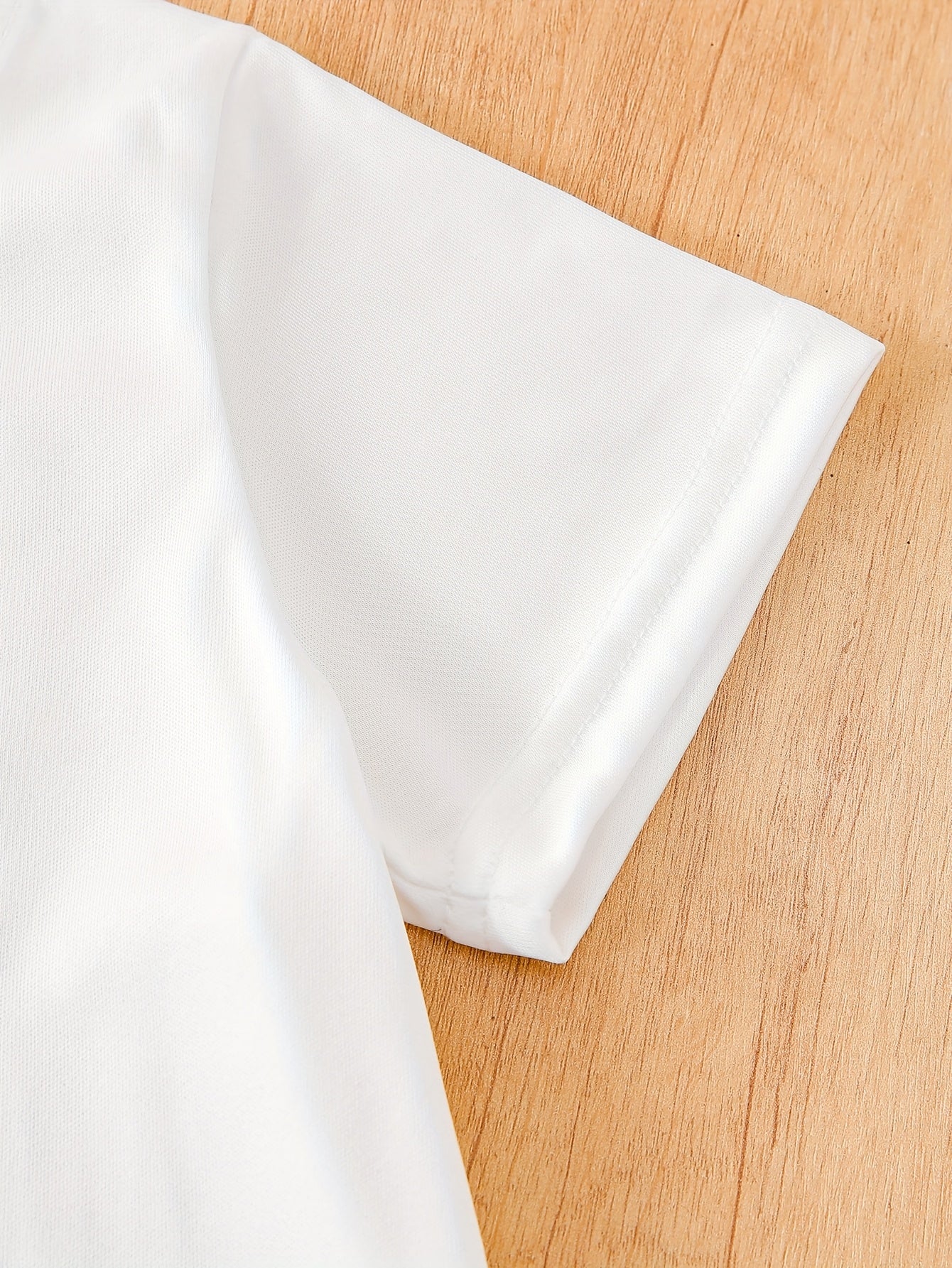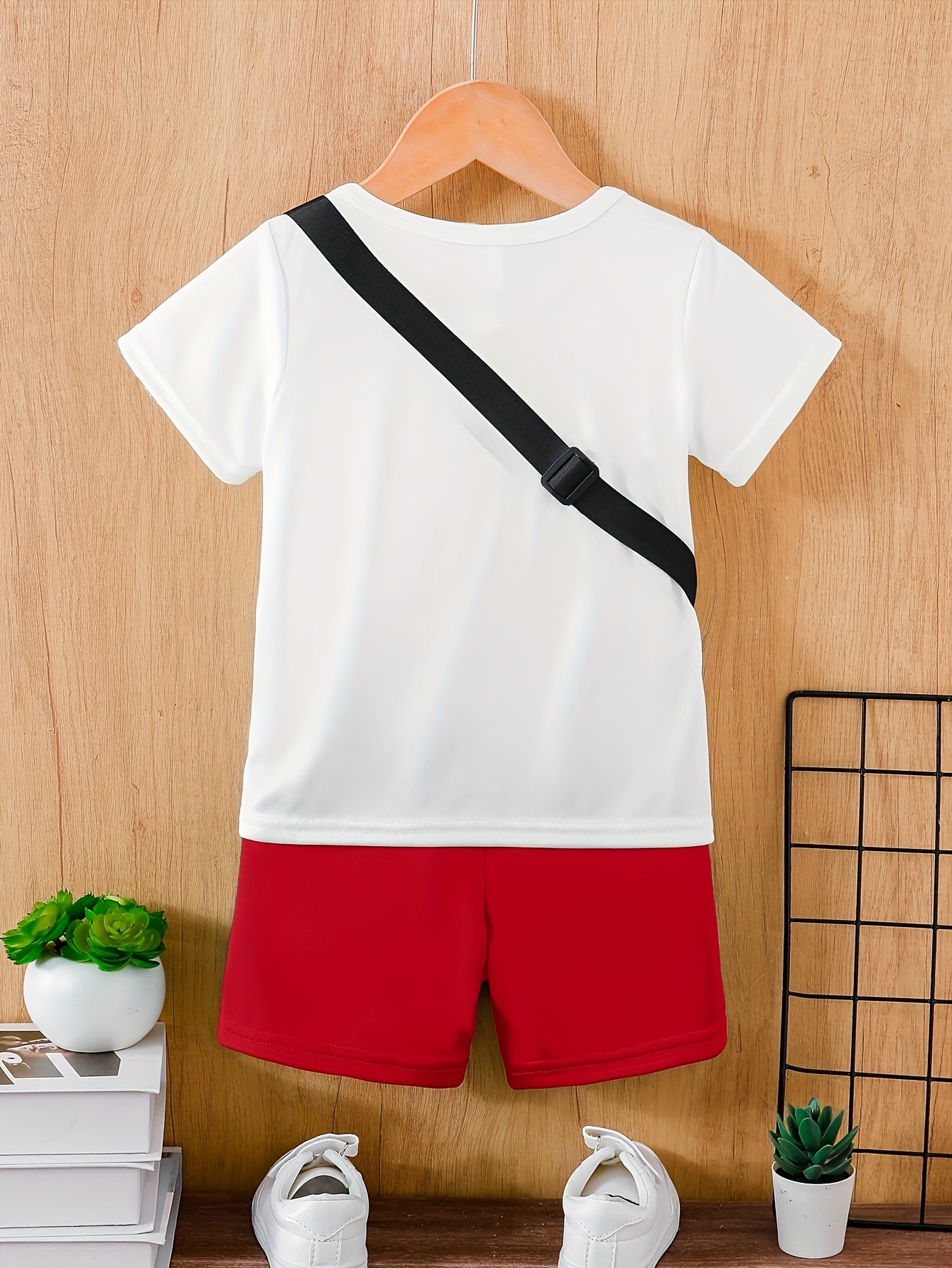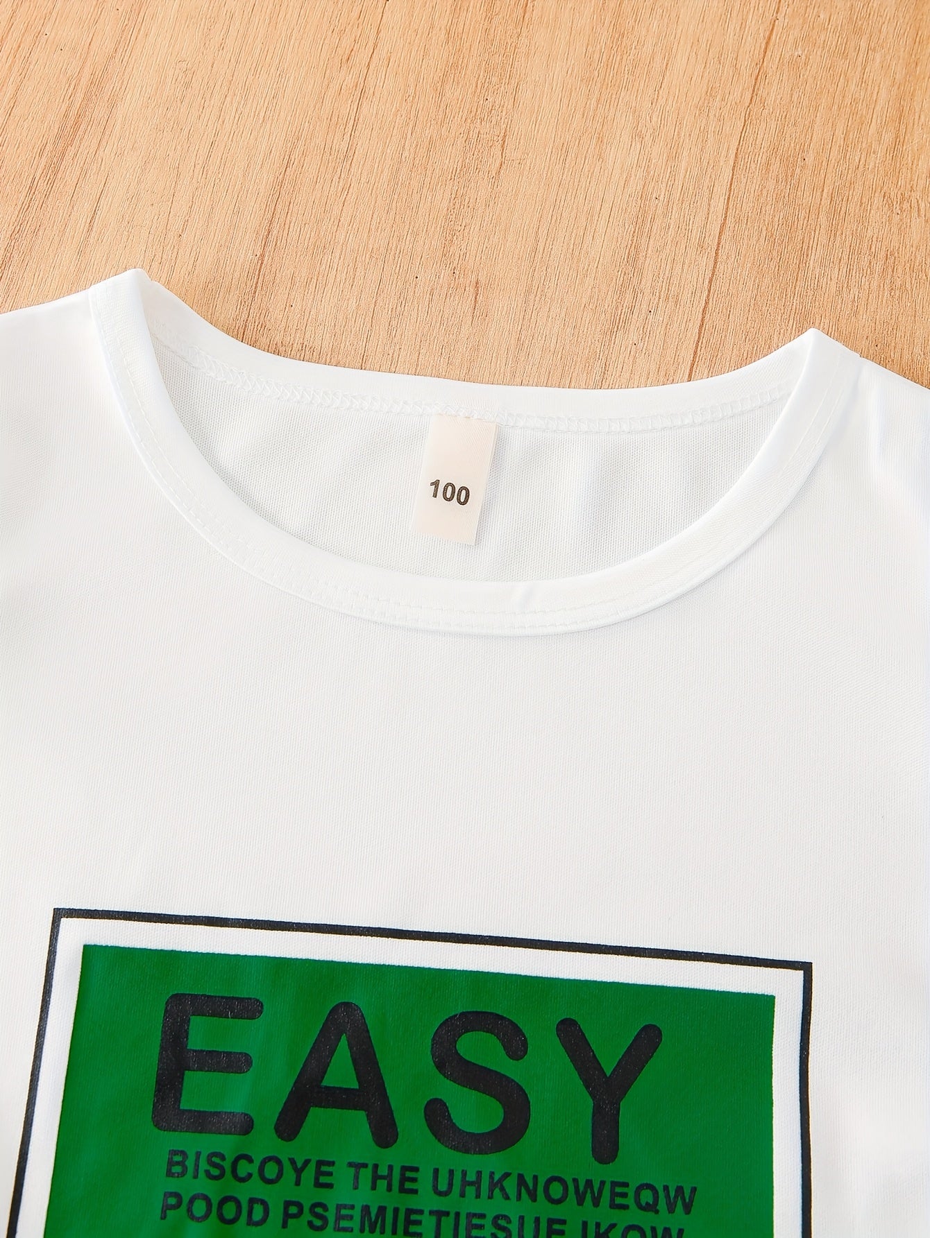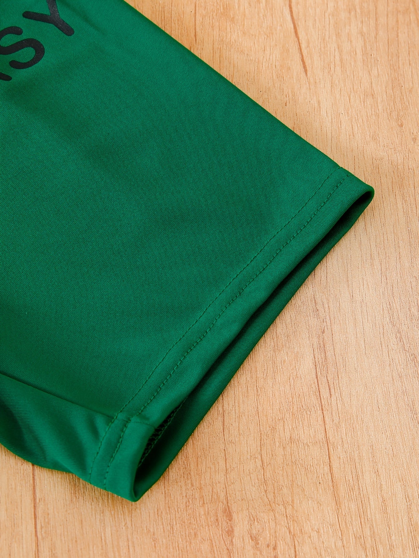 Տղաների համար նախատեսված 3 հատանոց սպիտակ, կլոր վզնոցով մարզաշապիկ EASY գրությամբ, կանաչ, առաձգական գոտկատեղով շորտերով և կանաչ, խաչաձև պայուսակով, առօրյա, հարմարավետ, բացօթյա հագուստի համար, նվերի գաղափար, իդեալական է բացօթյա օգտագործման համար։