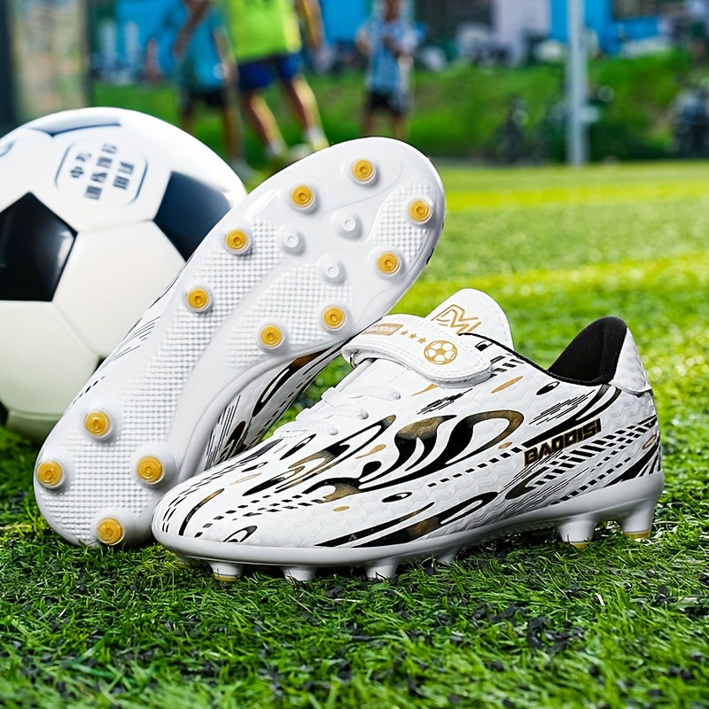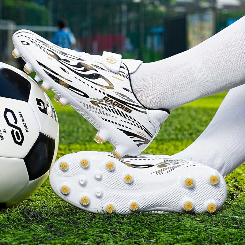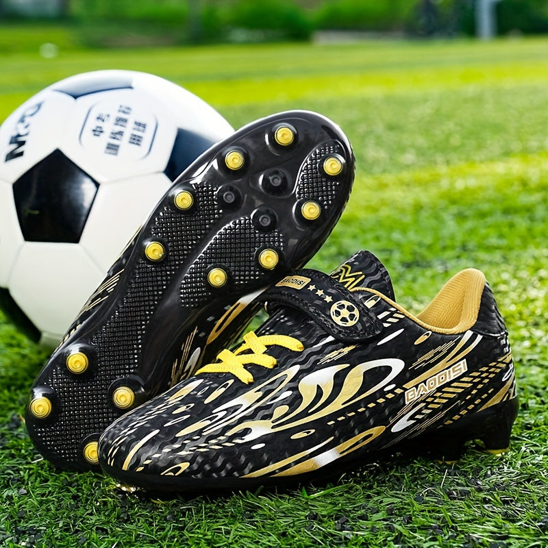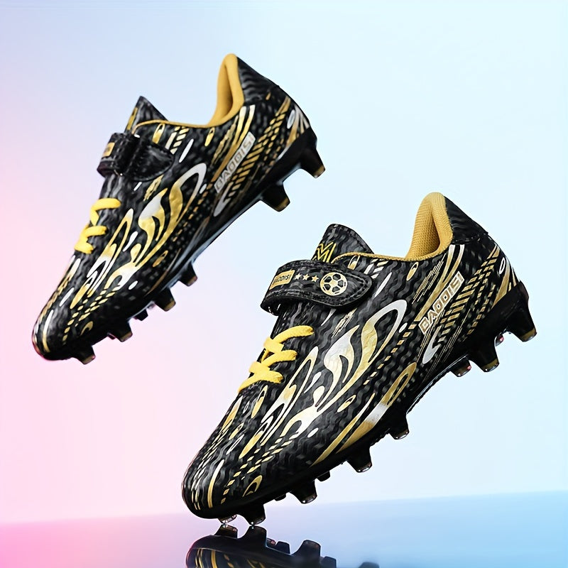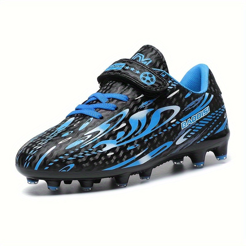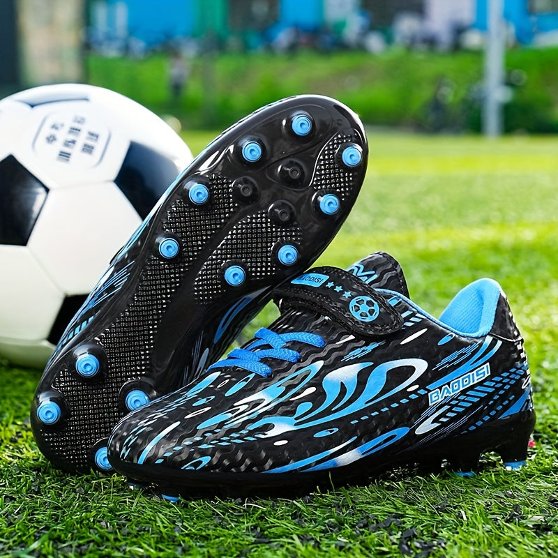Տղաների և աղջիկների սև և կապույտ ֆուտբոլային կոշիկներ «BAGGIES» լոգոտիպով - թեթև, շնչող, կլոր քթով, հեշտ փակվող, ռետինե հիմքով բացօթյա ֆուտբոլի համար, ֆուտբոլային կոշիկներ | Նորաձև ֆուտբոլային կոշիկներ | Հեշտ փակվող