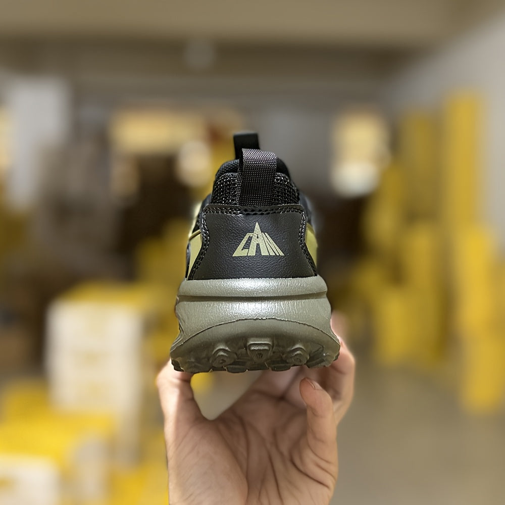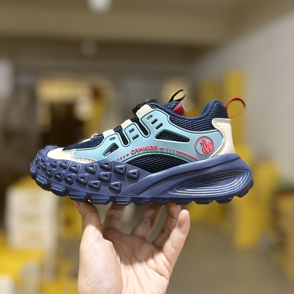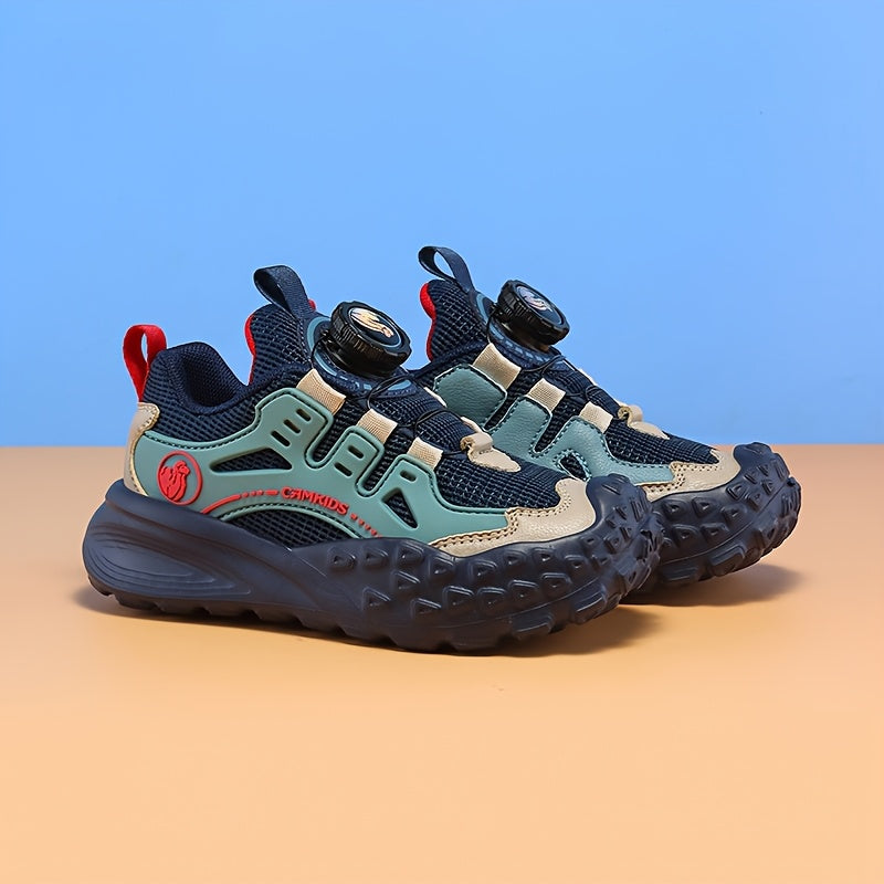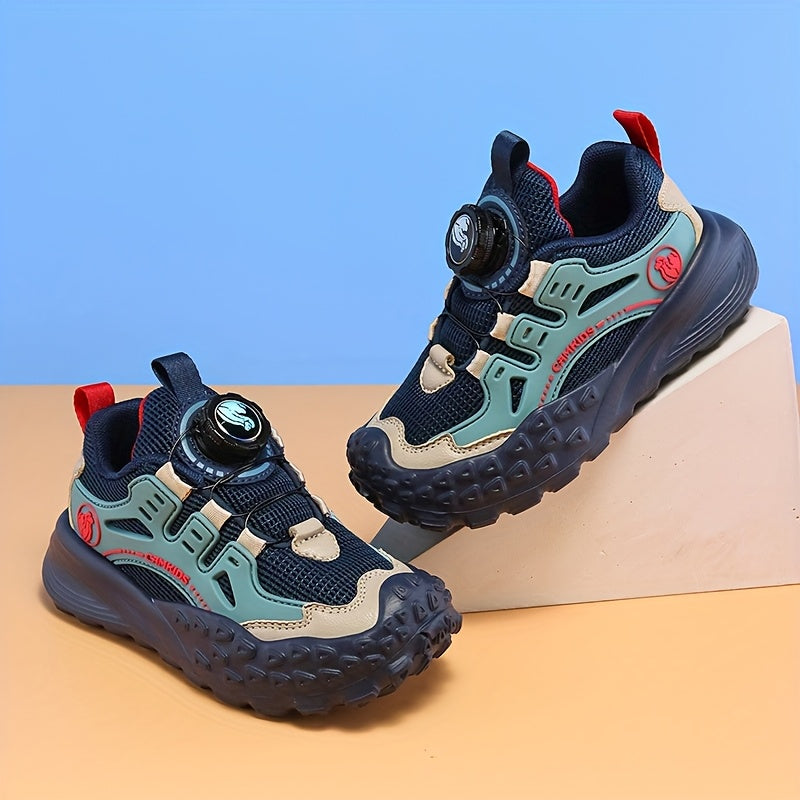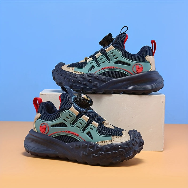 Տղաների շնչող ցանցե սպորտային կոշիկներ՝ պտտվող կոճակով փակմամբ - թեթև EVA ներբան, դիմացկուն PU և գործվածքային վերին մաս, բոլոր եղանակների համար նախատեսված արշավային կոշիկներ (սև/կանաչ/կարմիր երանգներով):