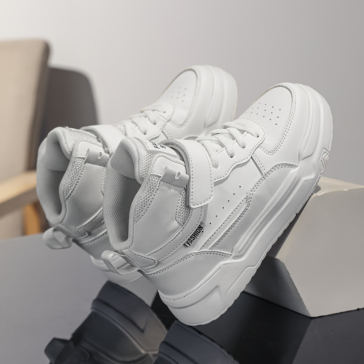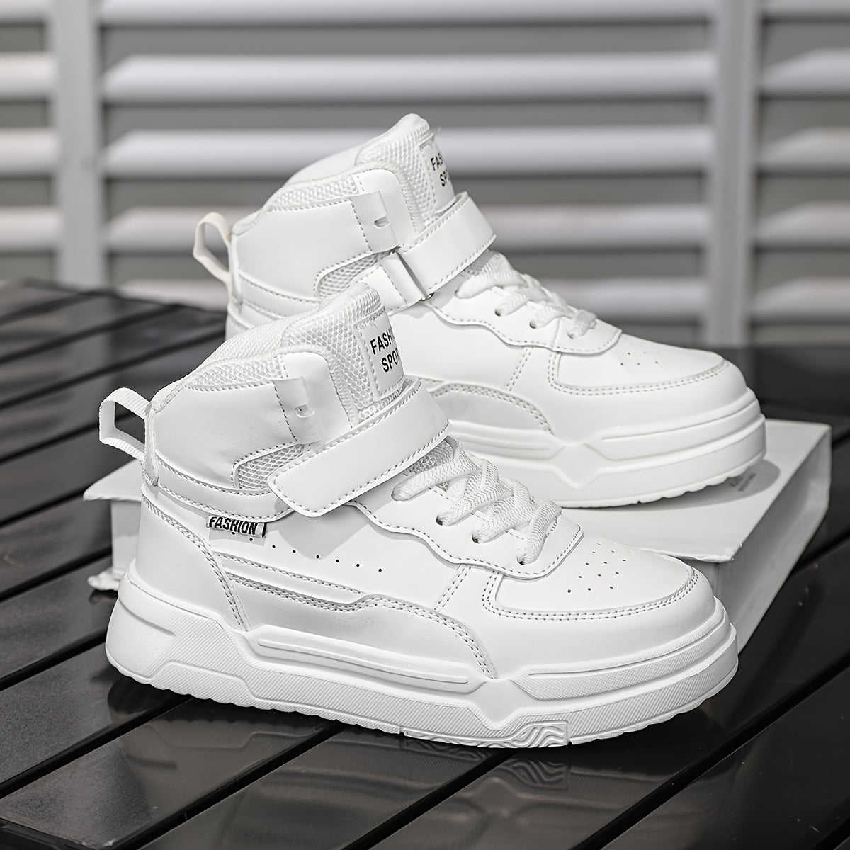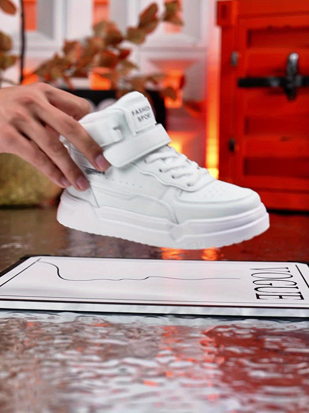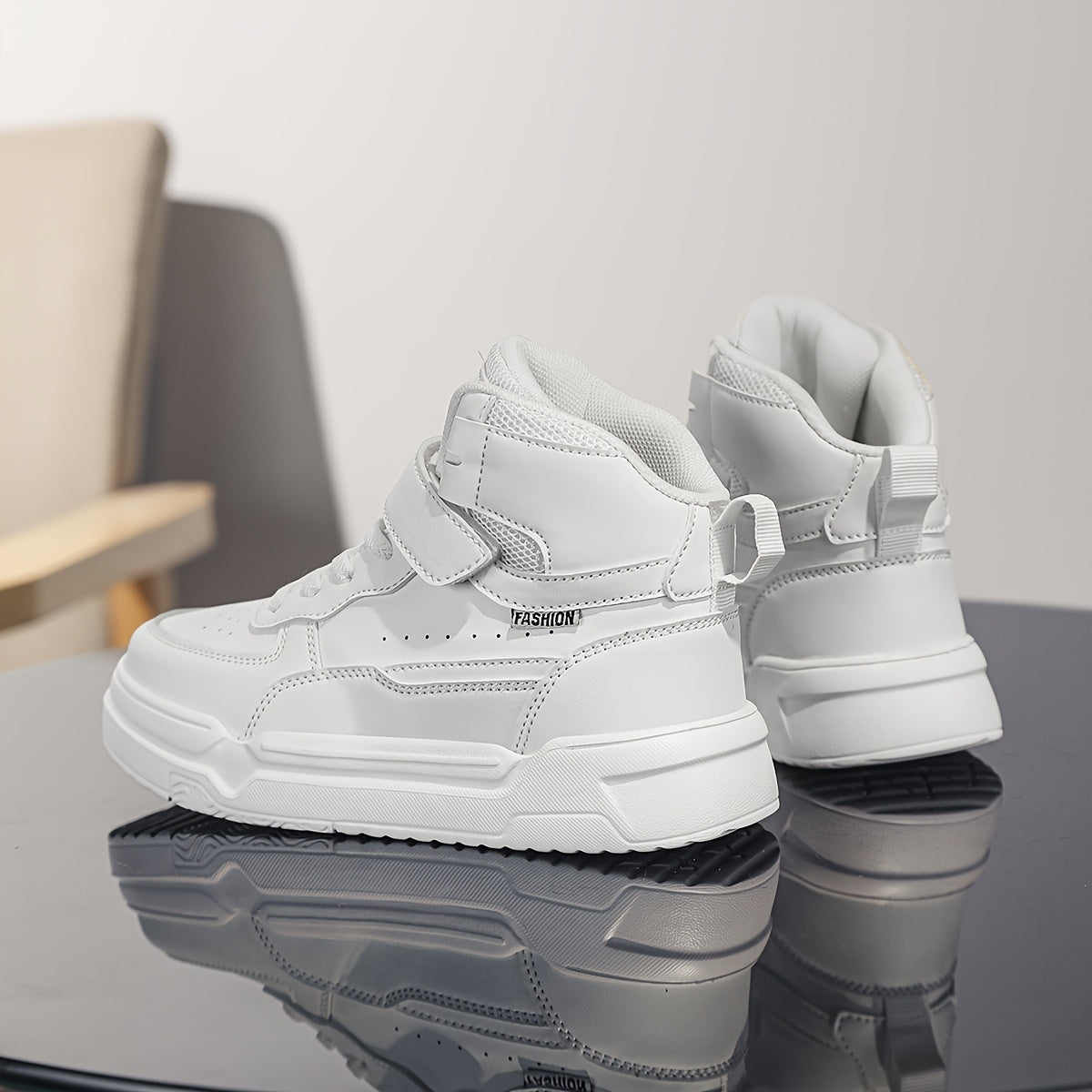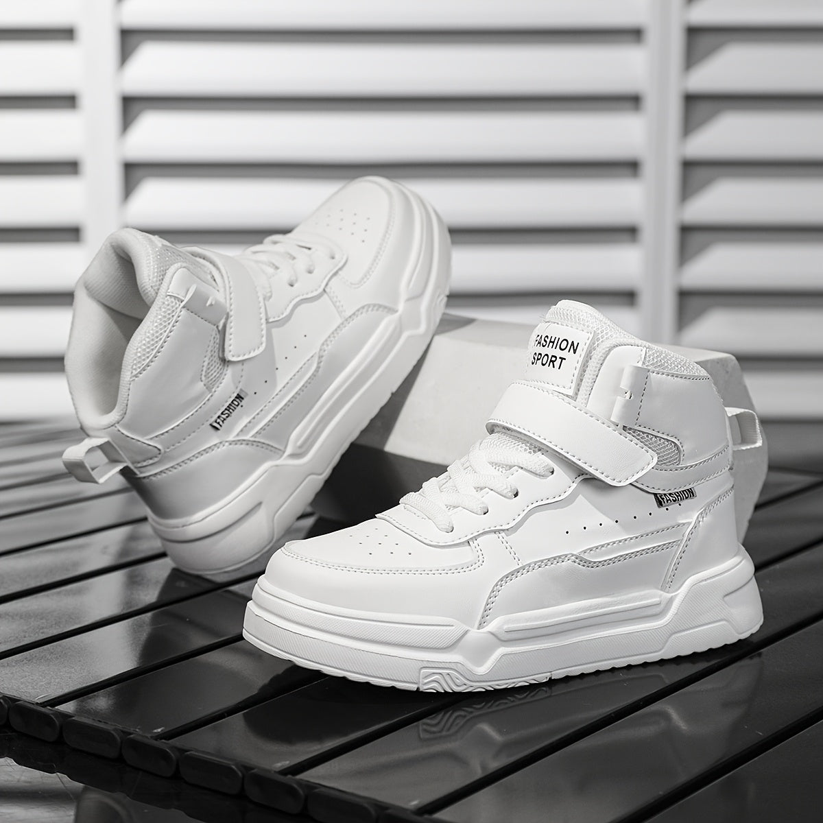 Տղաների և աղջիկների միջին բարձրության սպորտային կոշիկներ՝ փակվող ամրակով - թեթև PU և EVA ներբանով, բոլոր եղանակներին հարմարավետ՝ դպրոցի, խաղի և առօրյա հագուստի համար - սպիտակ