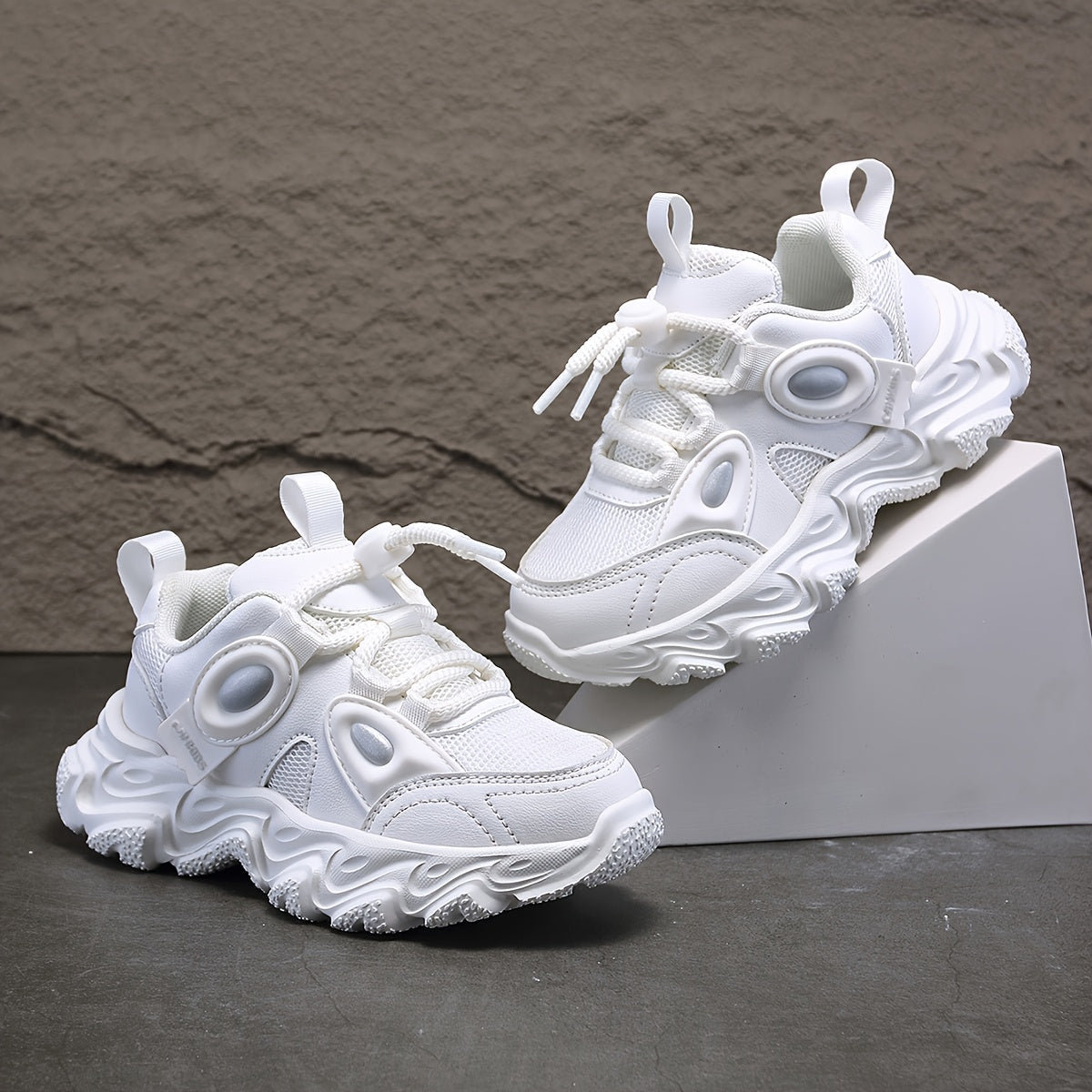 Տղաների ռետրո ցածրակրունկ սպորտային կոշիկներ՝ շնչող գործվածքից և սինթետիկ վերնամասով, փափուկ EVA ներբան՝ բոլոր եղանակներին հարմարավետության համար, թեթև, առօրյա կոշիկներ վազքի, լեռնագնացության և ամենօրյա կրելու համար (սպիտակ)