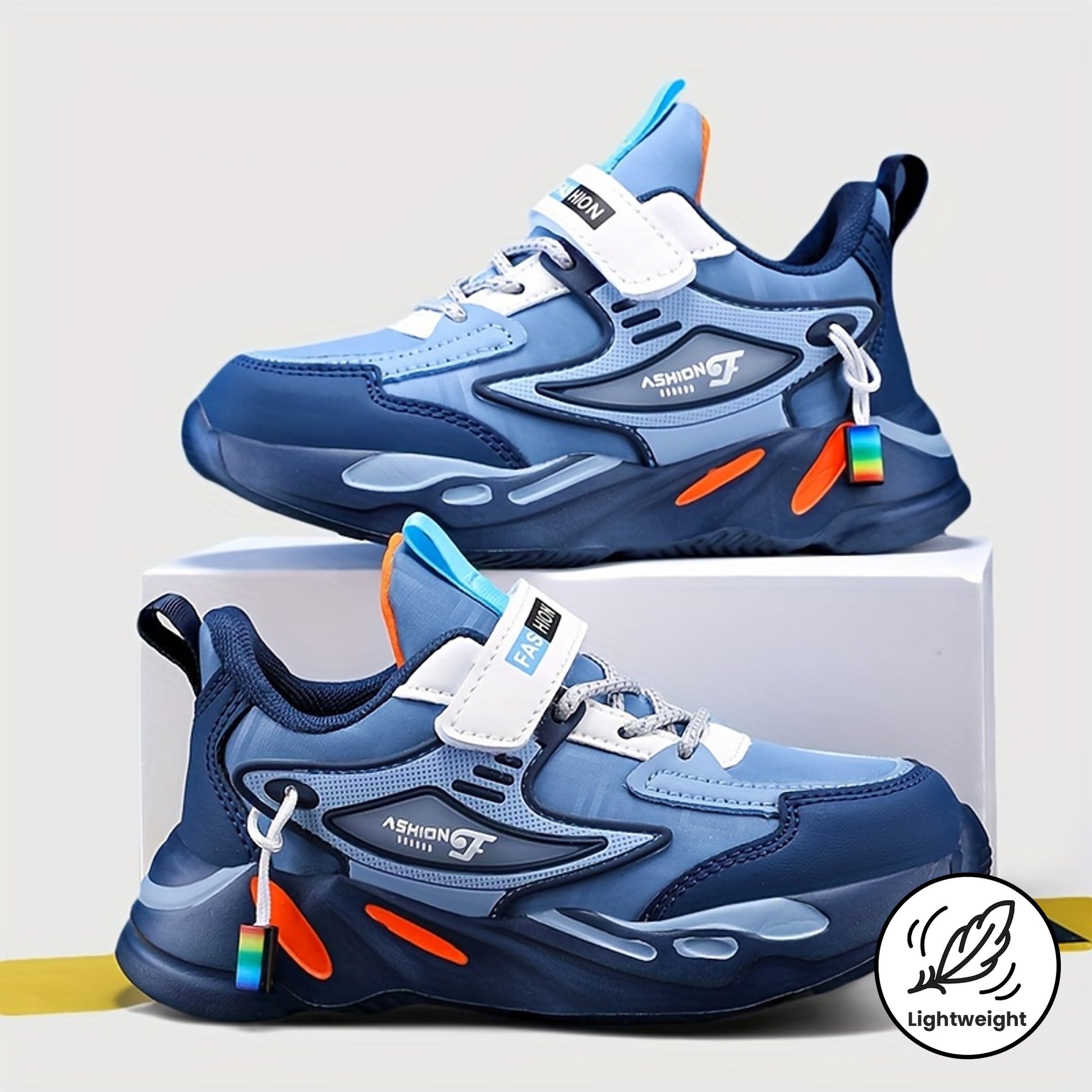 Տղաների սպորտային, առօրյա վազքի կոշիկներ, միկրոֆիբրային սինթետիկ կաշվից կեռիկով և օղակով ամրակ, կլոր քթով թեթև, կիսահաղորդչային մարզակոշիկներ, գործվածքային ներբան, EVA ներբան, գծավոր նորաձև սպորտային կոշիկներ բոլոր եղանակների համար
