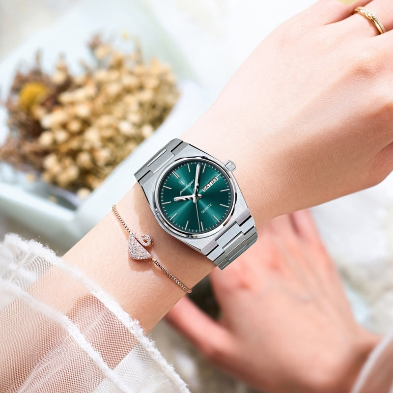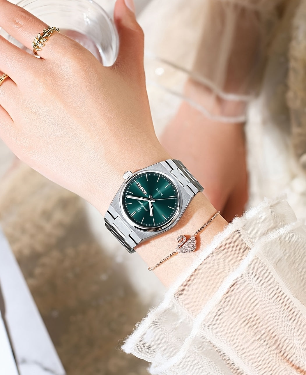 Բրենդային շքեղ կանացի գործարար ժամացույց, նորաձև կրկնակի օրացույցով քվարցային ժամացույց, կանացի նվեր տոնական նվեր