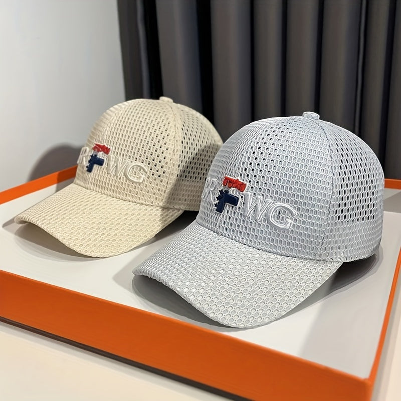 Շնչող ցանցե բեյսբոլի գլխարկ՝ ունիսեքս ասեղնագործված տառերով, առօրյա ոճի պոլիեսթերային գլխարկ, թեթև, միագույն, կարգավորվող արևապաշտպան գլխարկ՝ բացօթյա օգտագործման համար