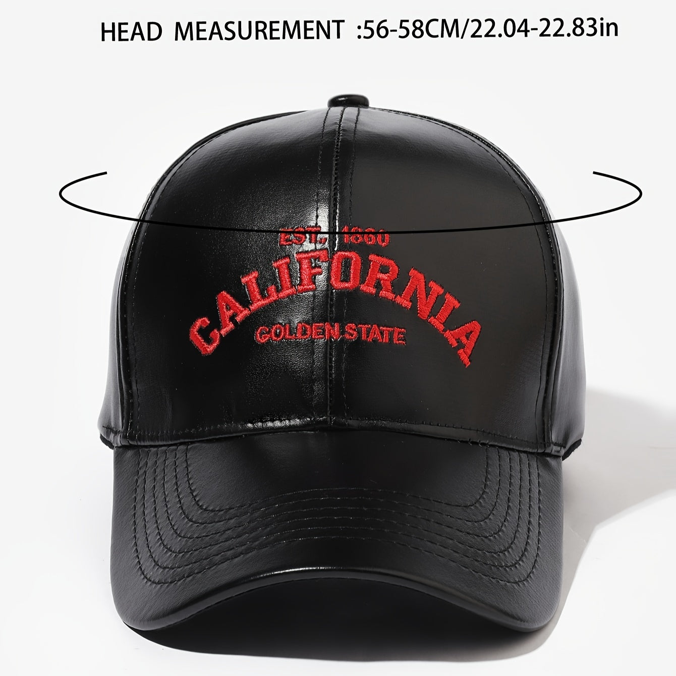 Կալիֆոռնիայի Գոլդեն Սթեյթ քաղաքի PU կաշվե բեյսբոլի գլխարկ - ունիսեքս, կարգավորվող, կոճակներով փակվող, արևապաշտպան, տոնական թեմատիկայով, ձեռագործ՝ ասեղնագործությամբ և հյուսված նախշերով