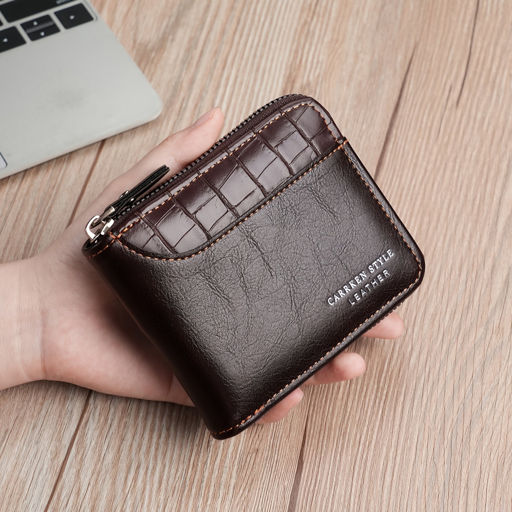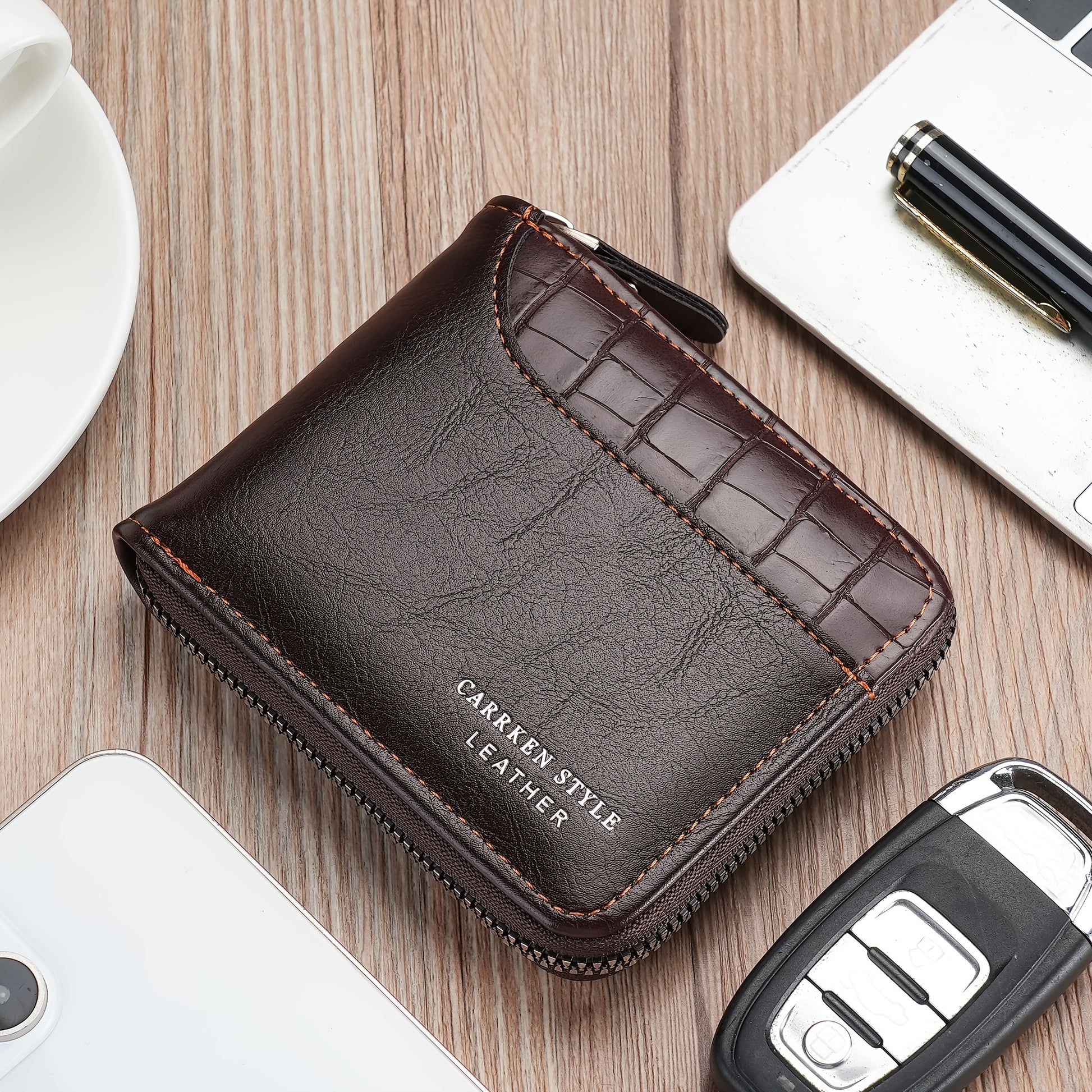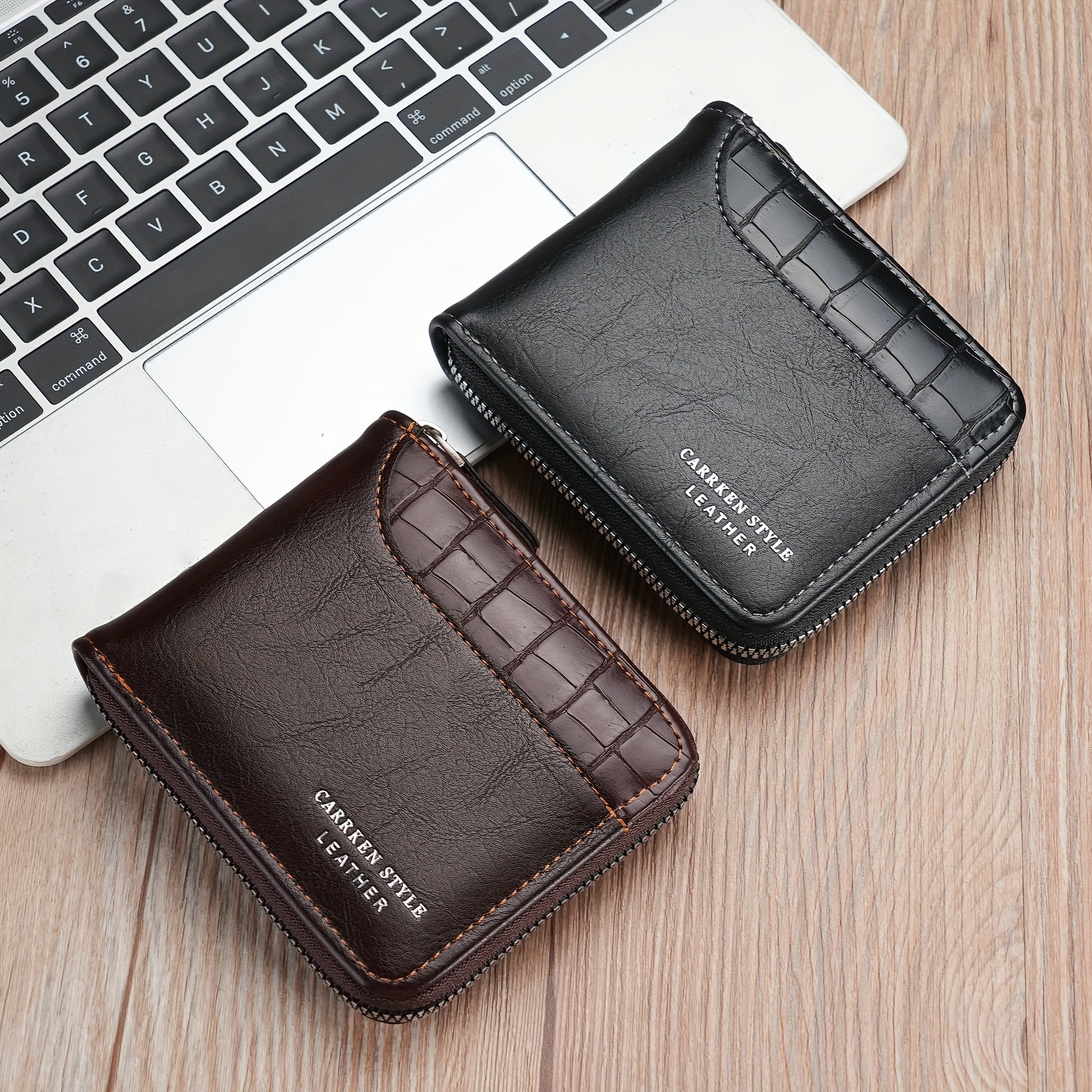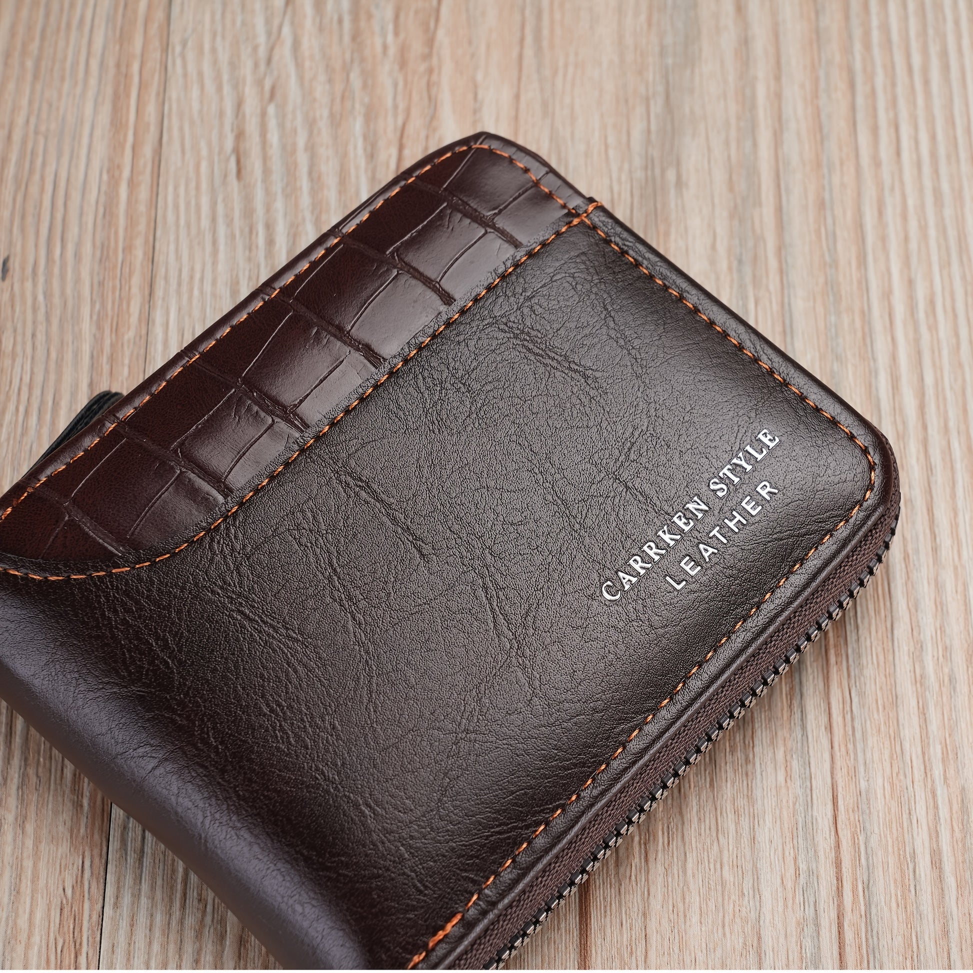 CarrKen տղամարդկանց նորաձև դրամապանակ. Բազմաֆունկցիոնալ մեծ տարողությամբ քարտի պահարան կոկորդիլոսի նախշով, կայծակաճարմանդով փակվող և կարի դետալներով շագանակագույն և սև գույներով, գեղեցիկ դրամապանակ