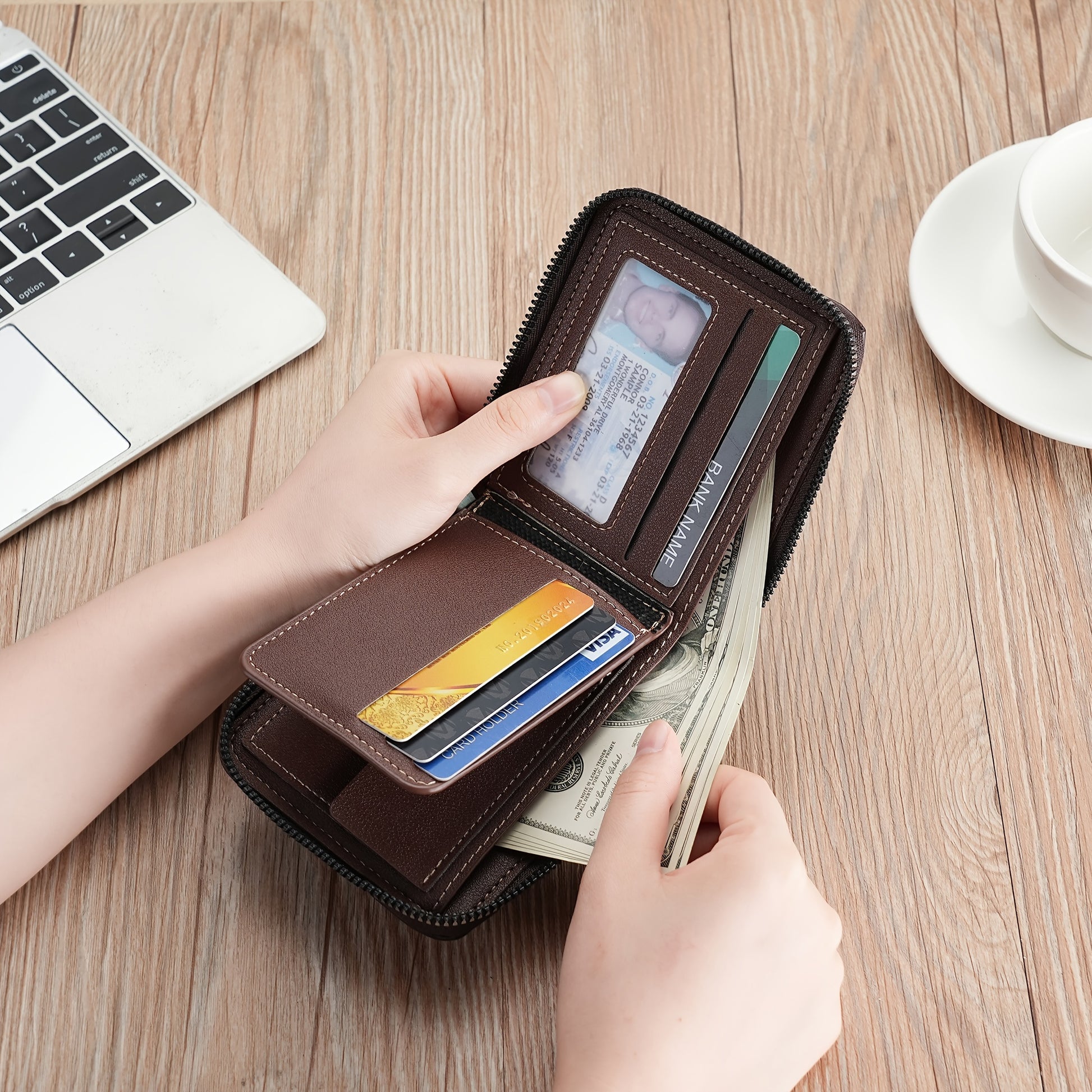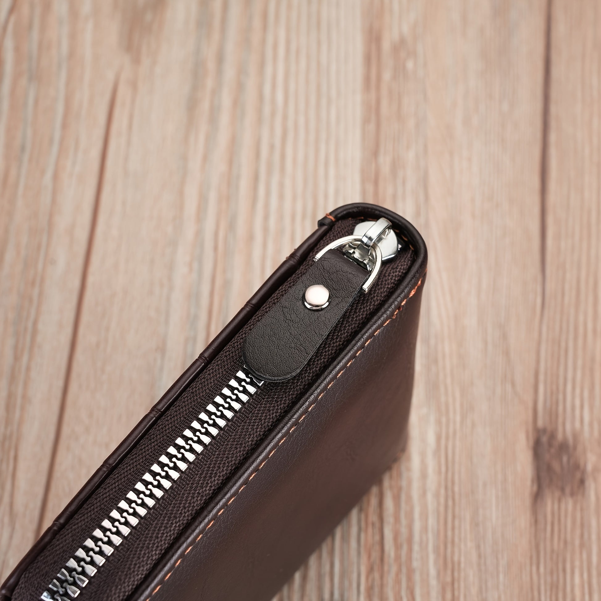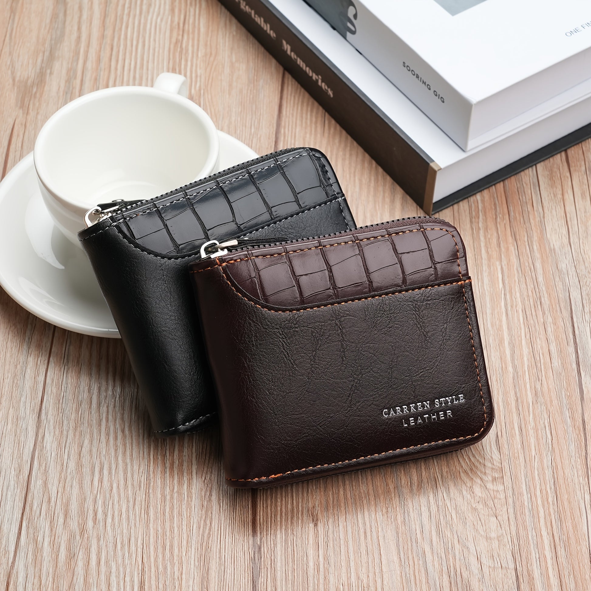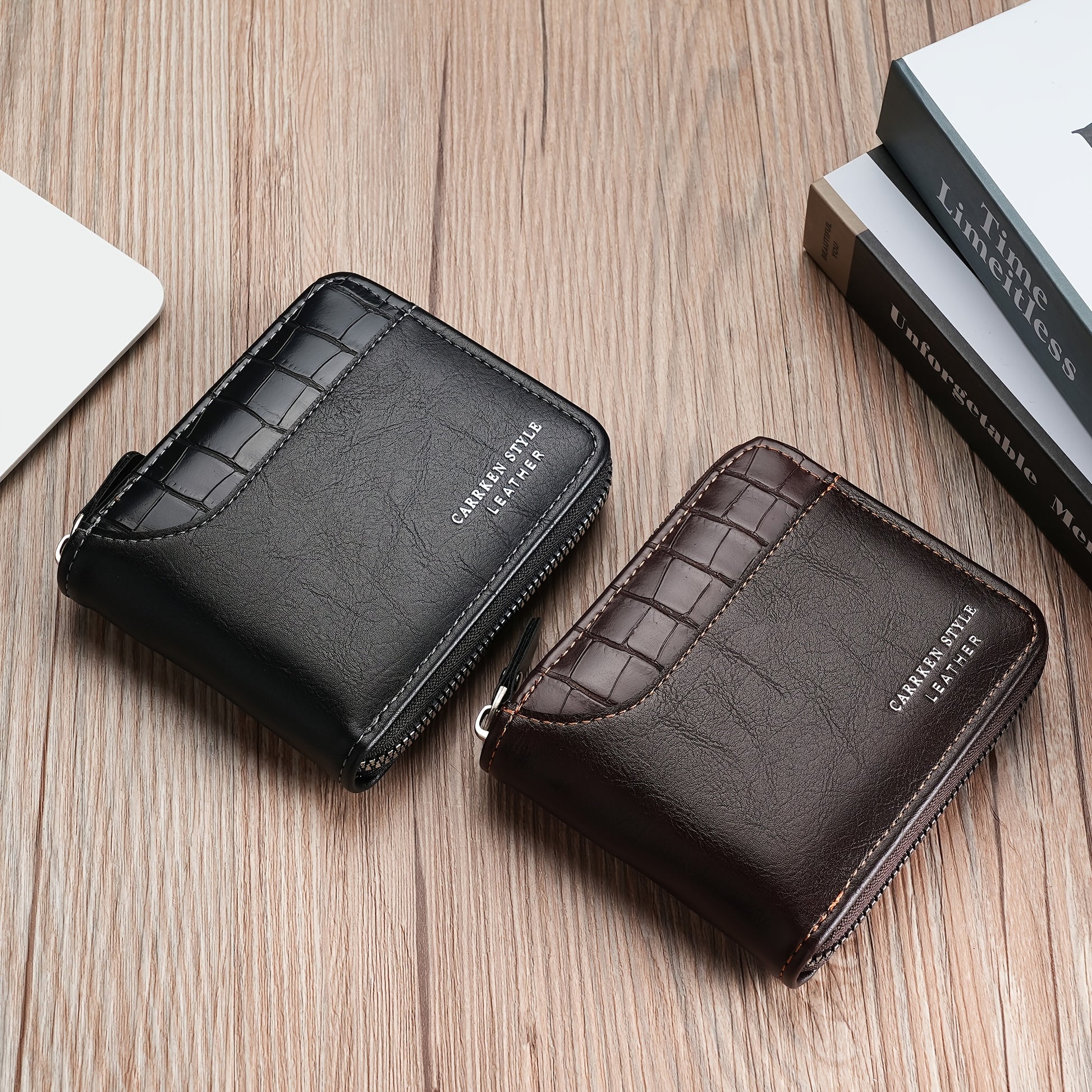 CarrKen տղամարդկանց նորաձև դրամապանակ. Բազմաֆունկցիոնալ մեծ տարողությամբ քարտի պահարան կոկորդիլոսի նախշով, կայծակաճարմանդով փակվող և կարի դետալներով շագանակագույն և սև գույներով, գեղեցիկ դրամապանակ