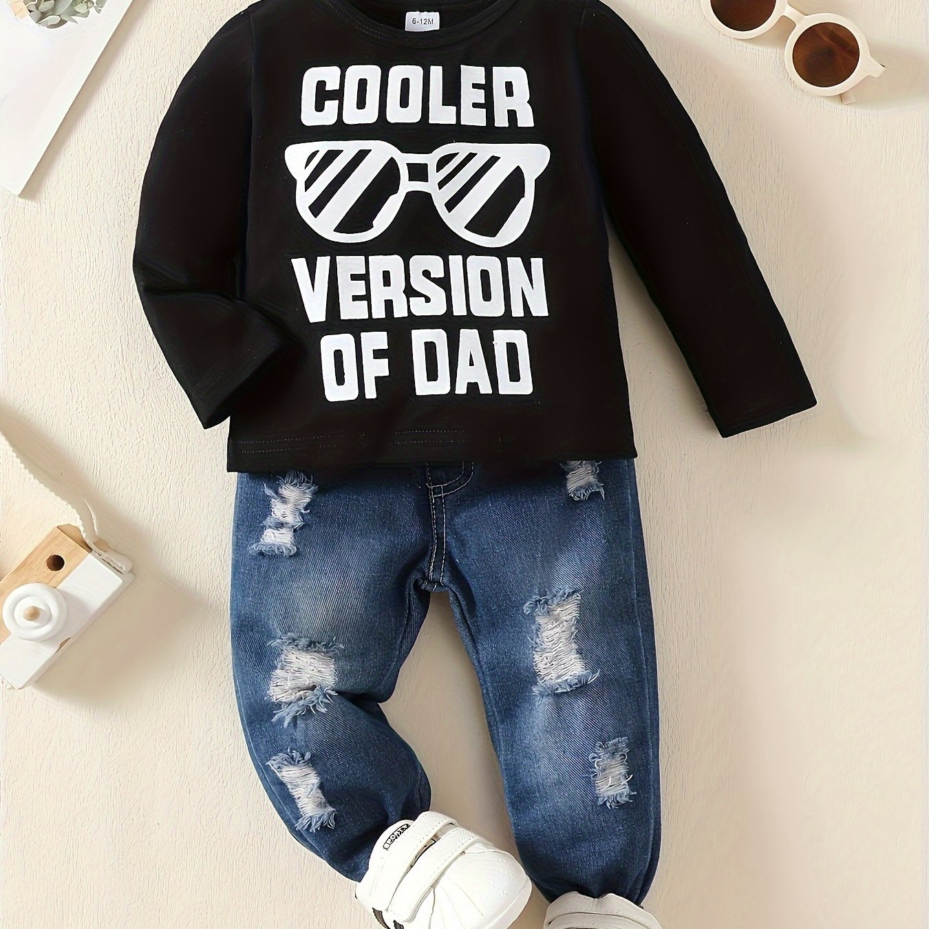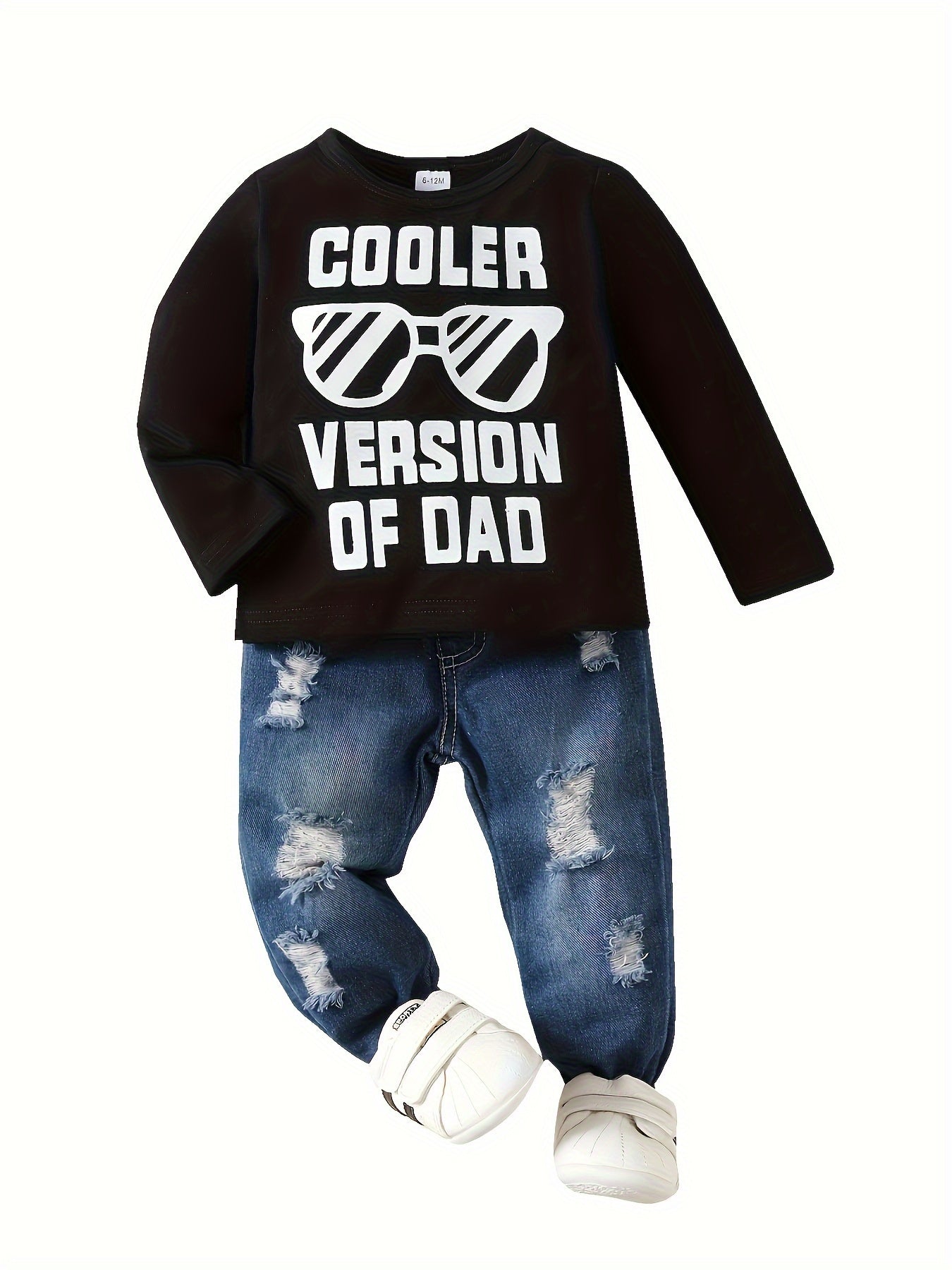 Պատահական բամբակյա խառնուրդ այբուբեն տպագրության երկարաթև վերնաշապիկով ջինսե տաբատի հավաքածու գարնանային/աշունի համար.