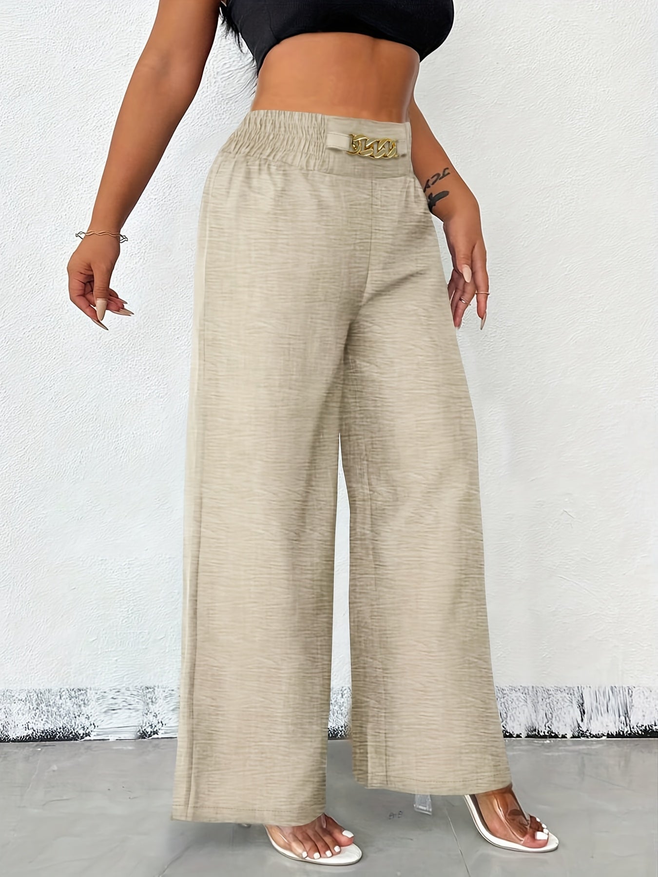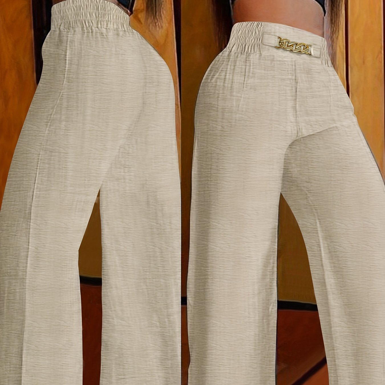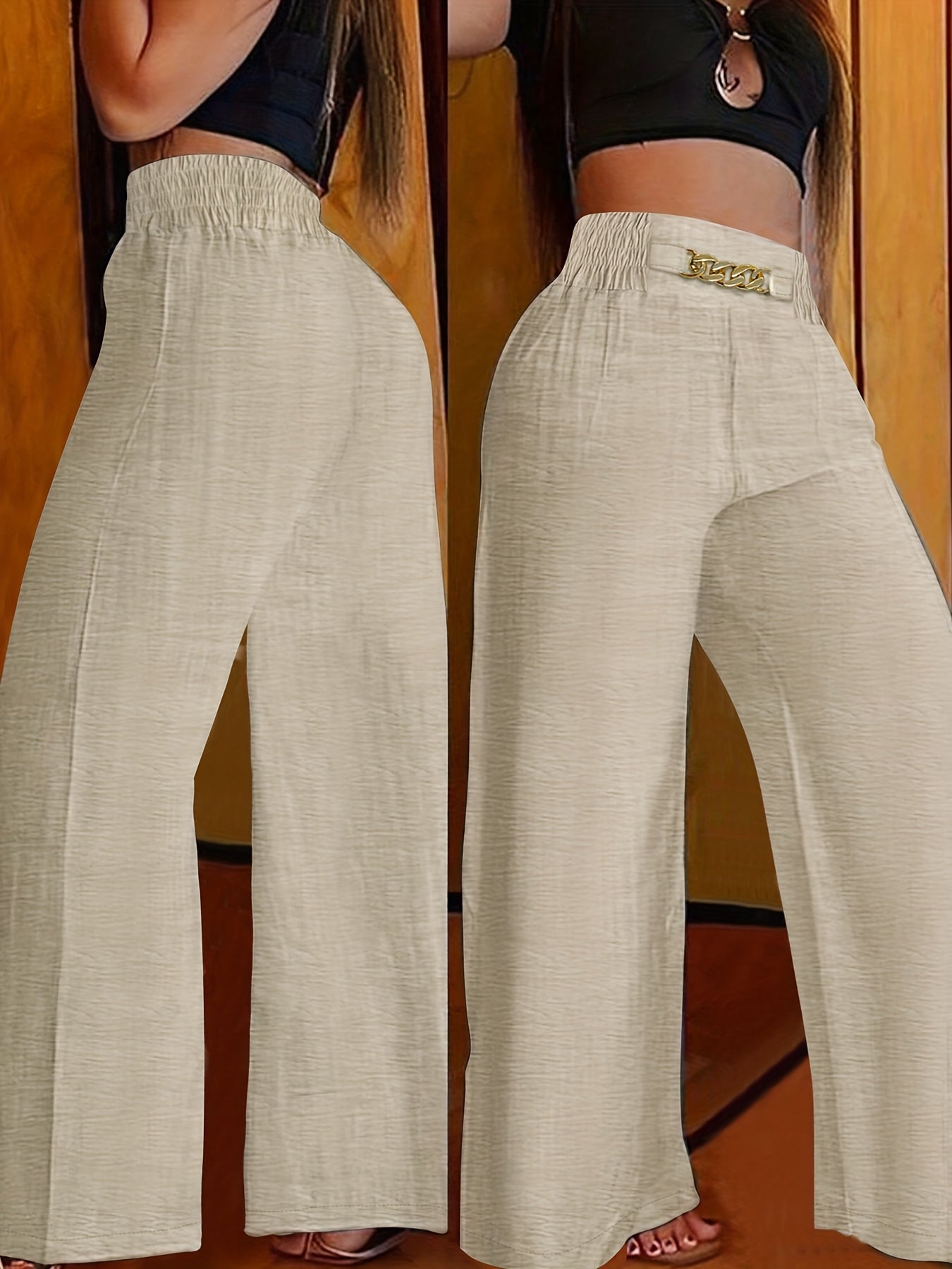 Առօրյա լայն պոլիեսթեր տաբատ, միաձույլ գույնի, ազատ պիտանի, նիհարեցնող, մեծահասակների համար, բոլոր սեզոններին