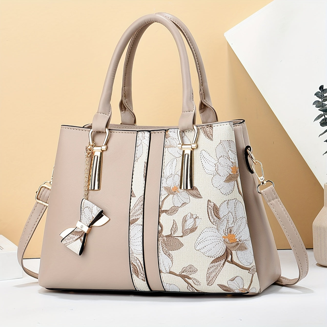 Շիկ ծաղկային նախշերով ձեռքի պայուսակ կանանց համար - ընդարձակ, եռաշերտ դիզայն՝ գրպաններով, կայծակաճարմանդով, դիմացկուն պոլիուրեթանային նյութից - հասանելի է խակի, կրեմագույն, կանաչ, կապույտ, սև գույներով