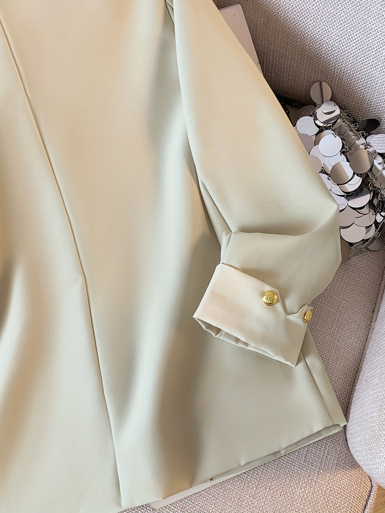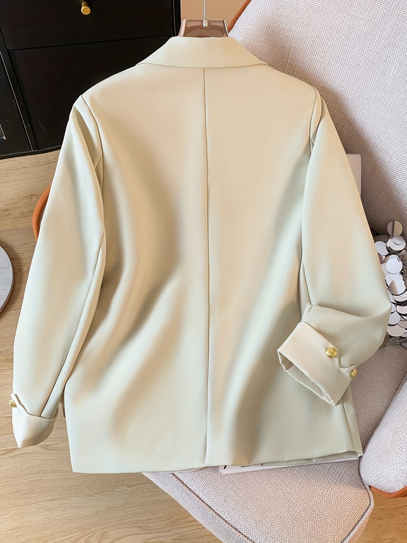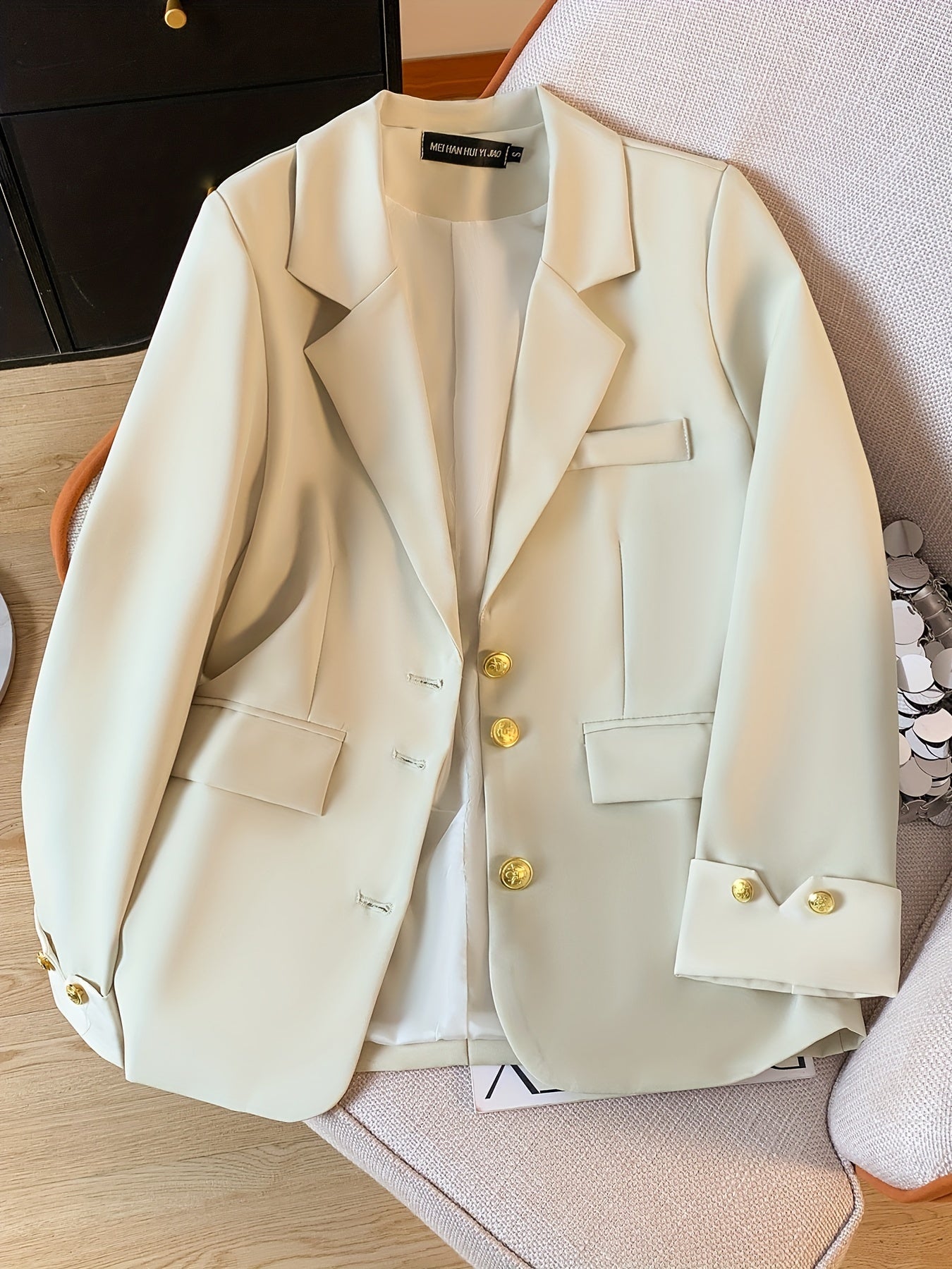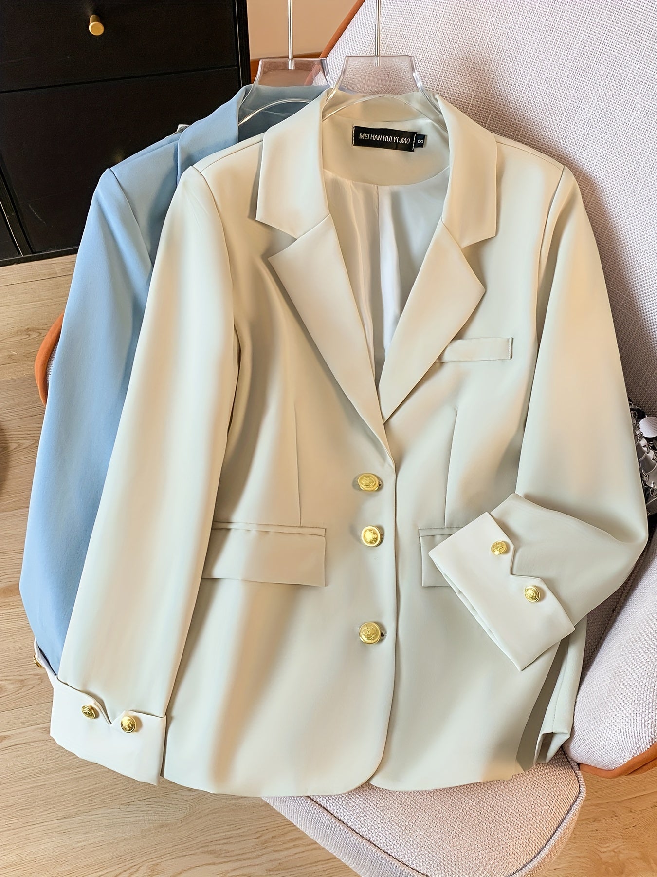 Chic Light Blue Slim-Fit Blazer կանանց համար. Նորաձև երկարաթև աշխատանքային գրասենյակային վերնազգեստ ոսկե կոճակով, էլեգանտ պոլիեսթեր գործվածք, կատարյալ գարնան և աշնան համար