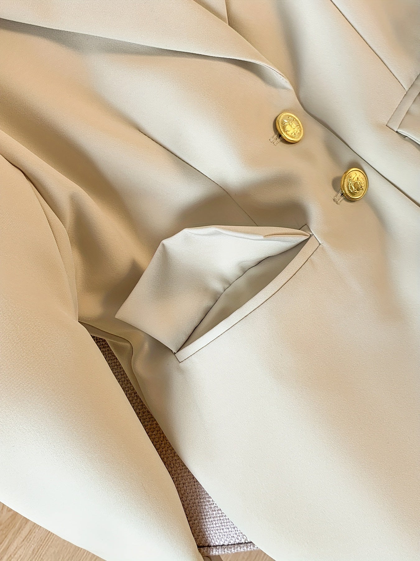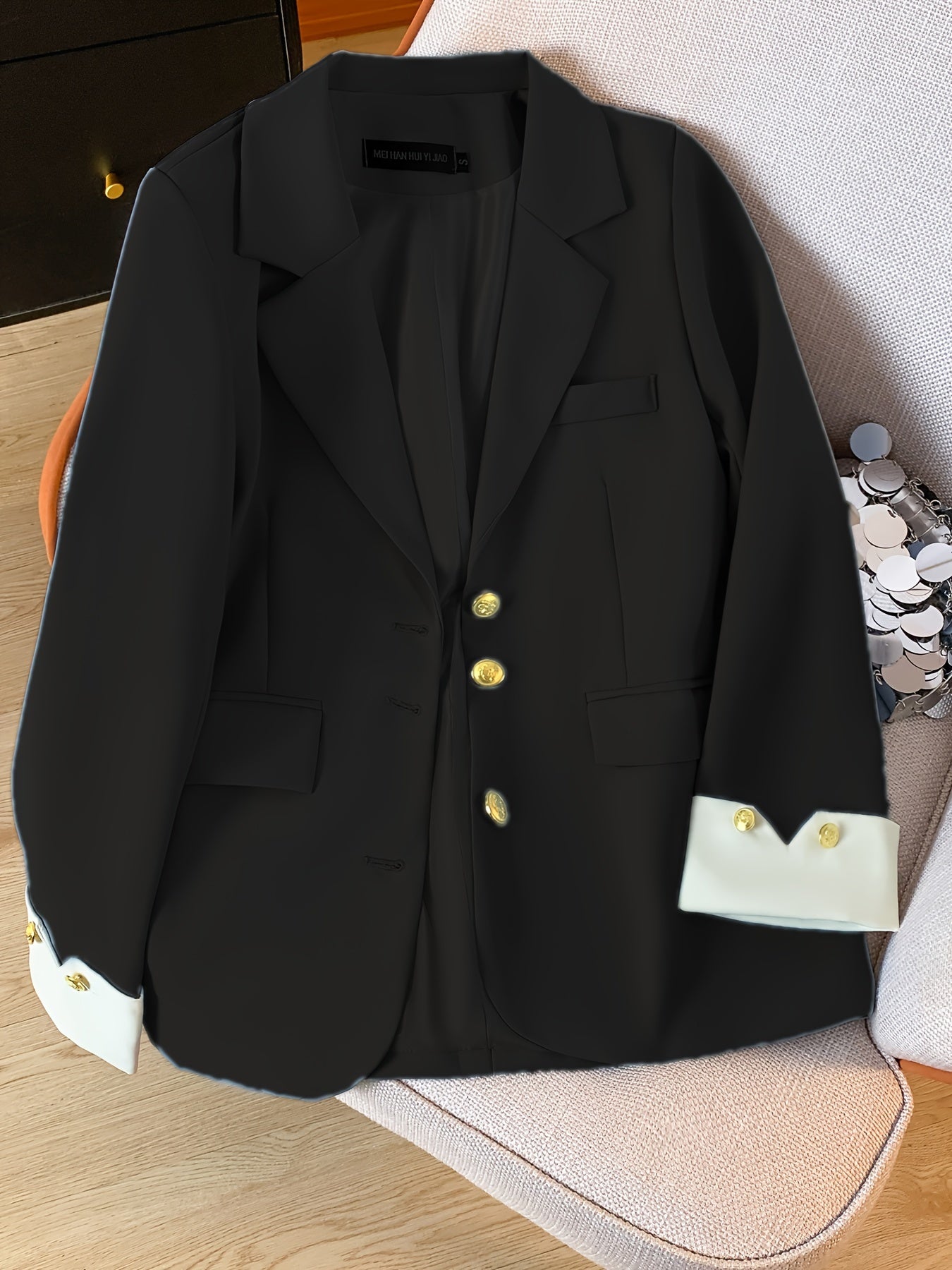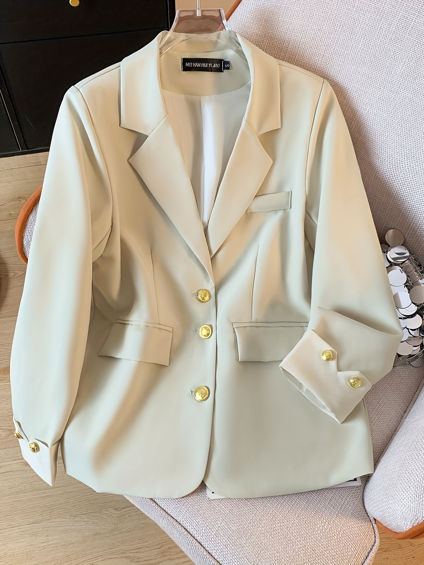 Chic Light Blue Slim-Fit Blazer կանանց համար. Նորաձև երկարաթև աշխատանքային գրասենյակային վերնազգեստ ոսկե կոճակով, էլեգանտ պոլիեսթեր գործվածք, կատարյալ գարնան և աշնան համար