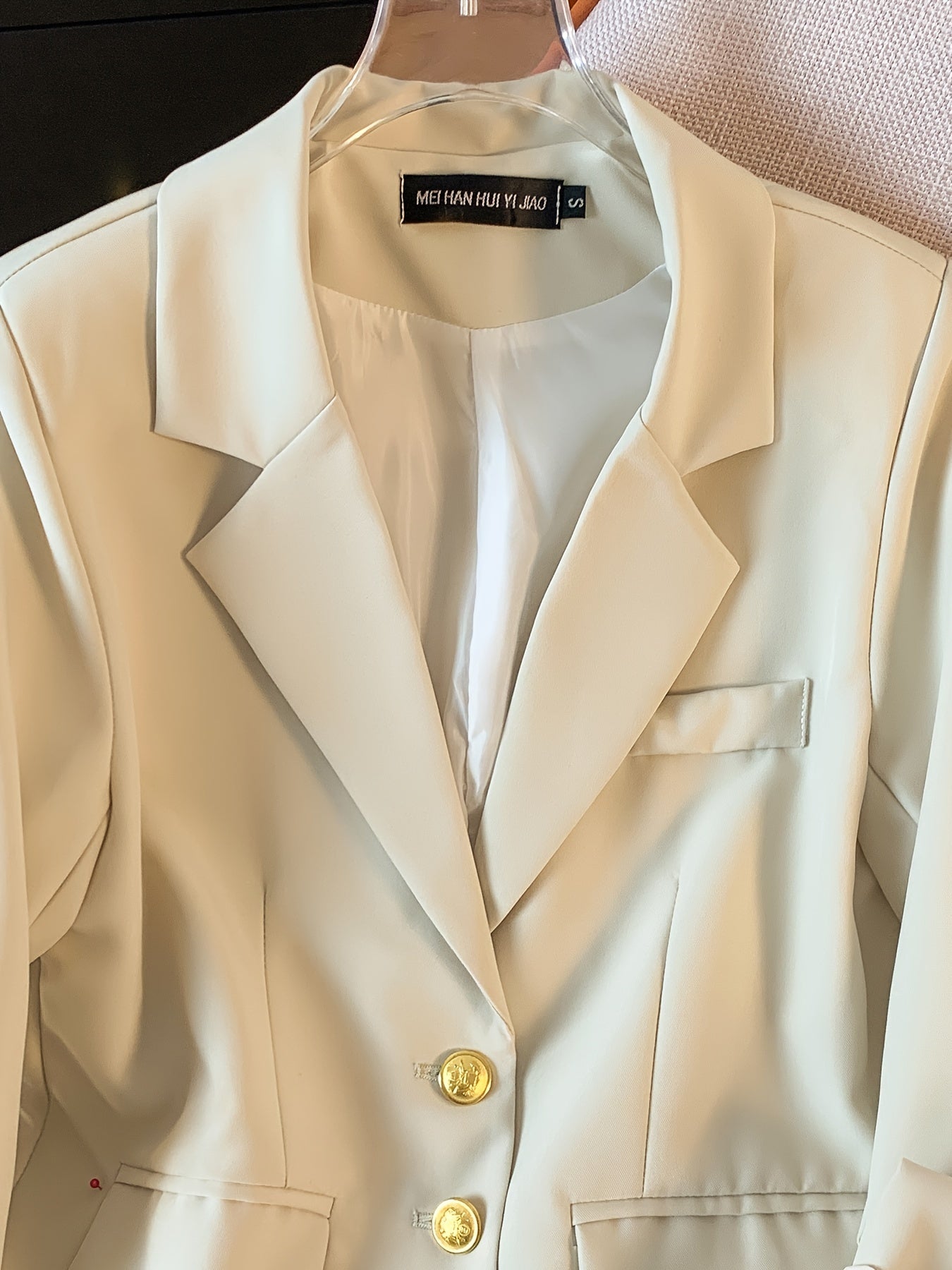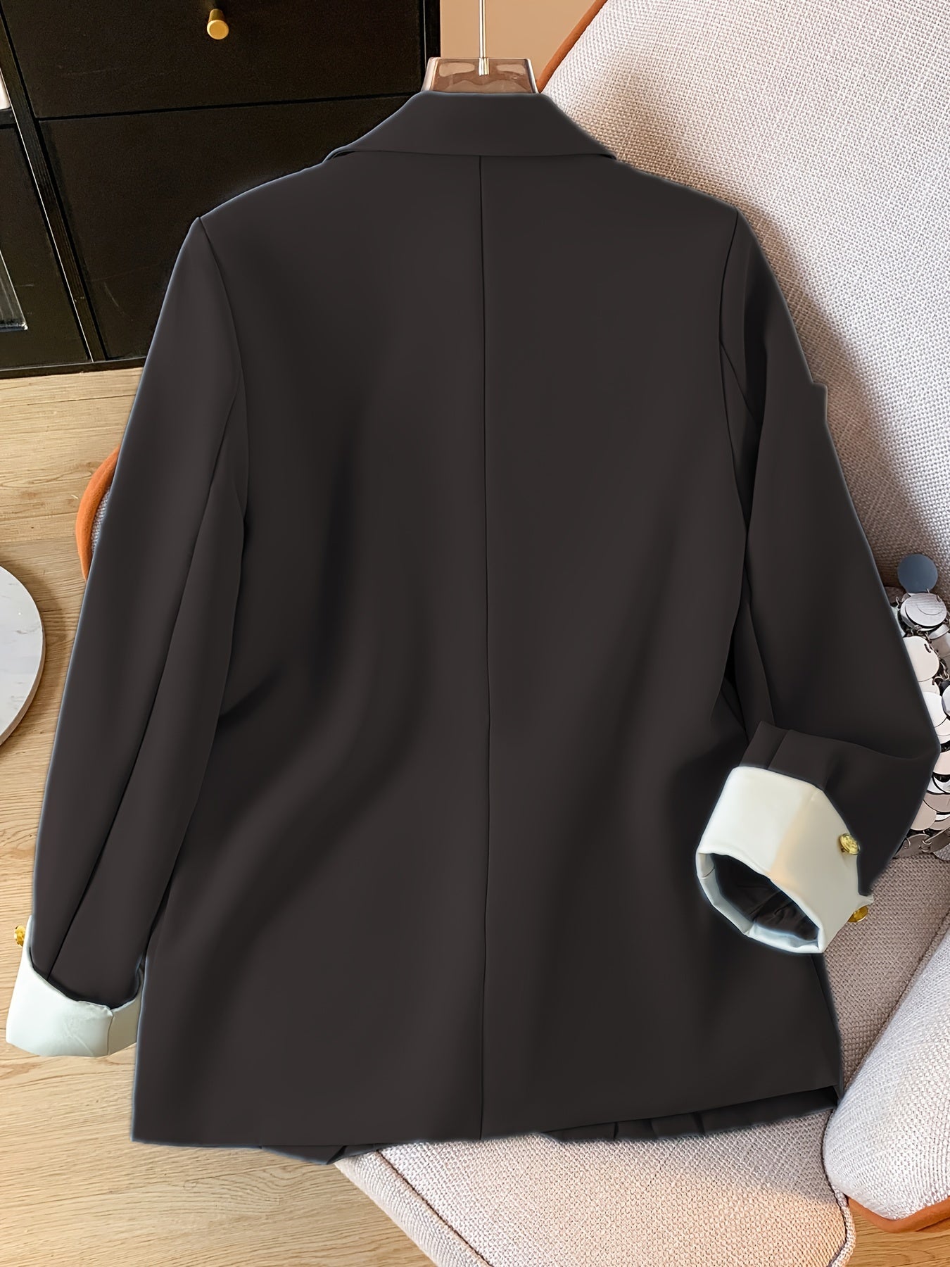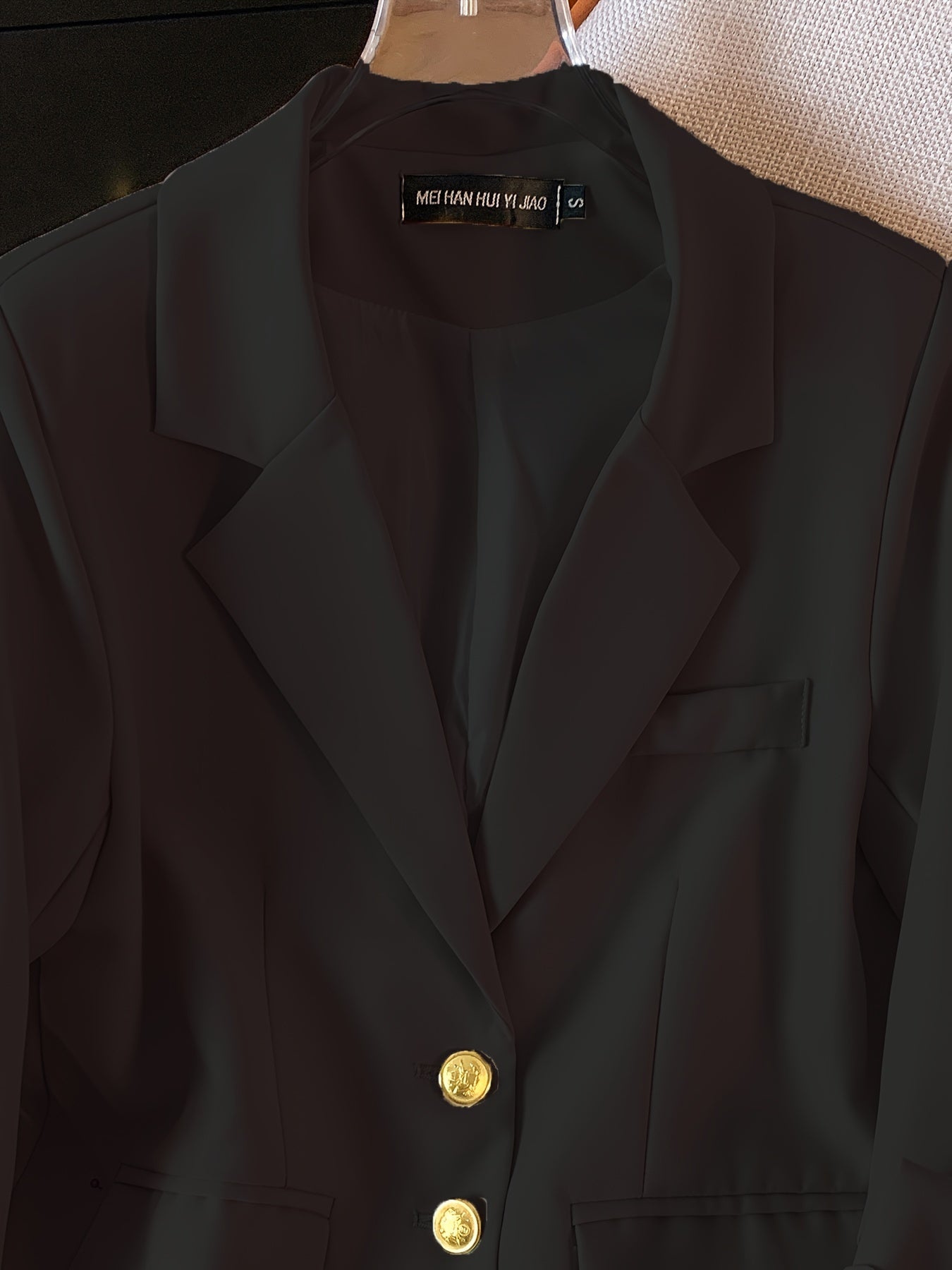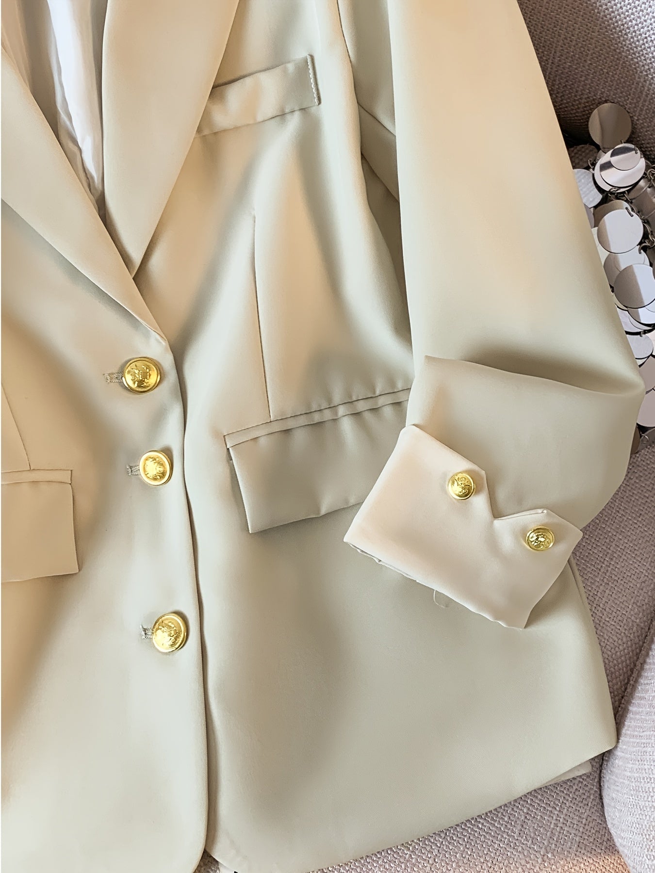 Chic Light Blue Slim-Fit Blazer կանանց համար. Նորաձև երկարաթև աշխատանքային գրասենյակային վերնազգեստ ոսկե կոճակով, էլեգանտ պոլիեսթեր գործվածք, կատարյալ գարնան և աշնան համար