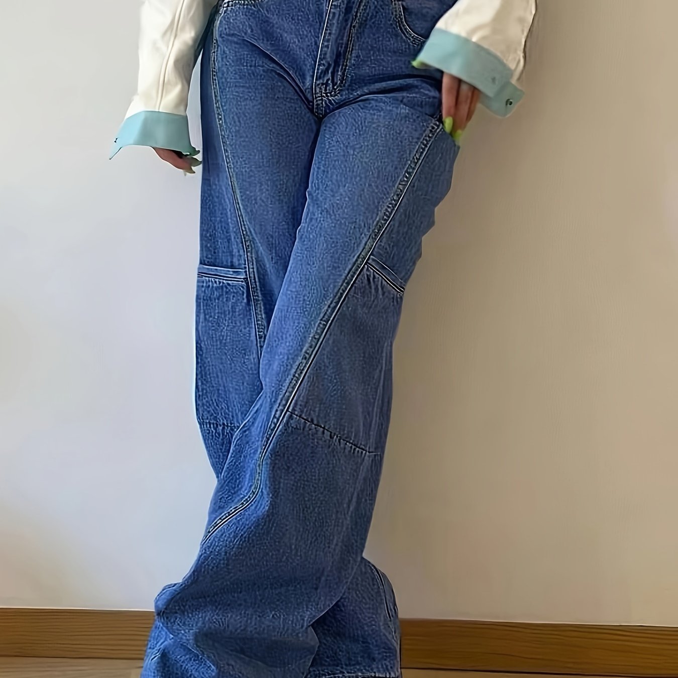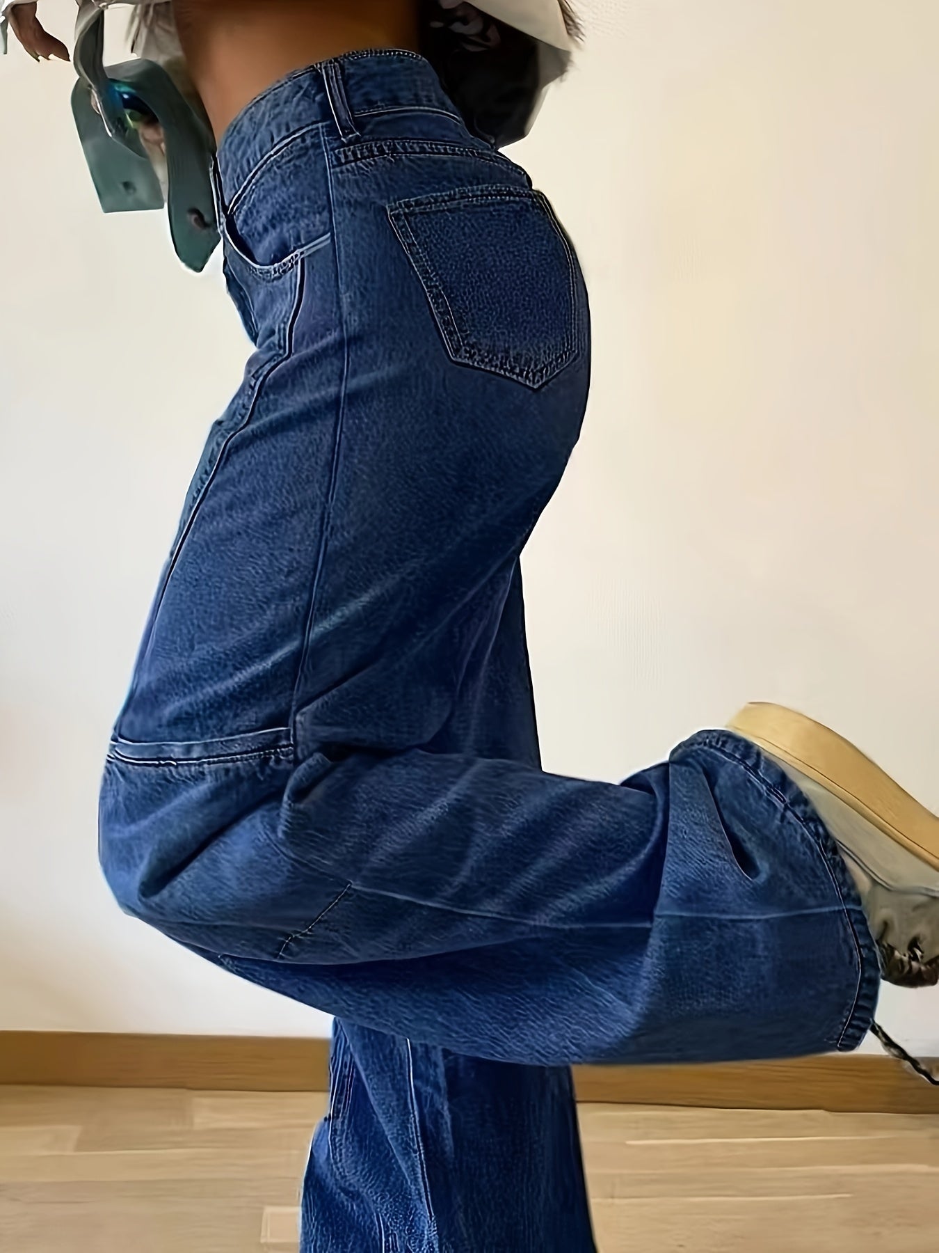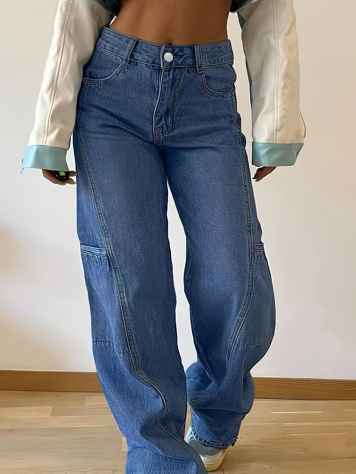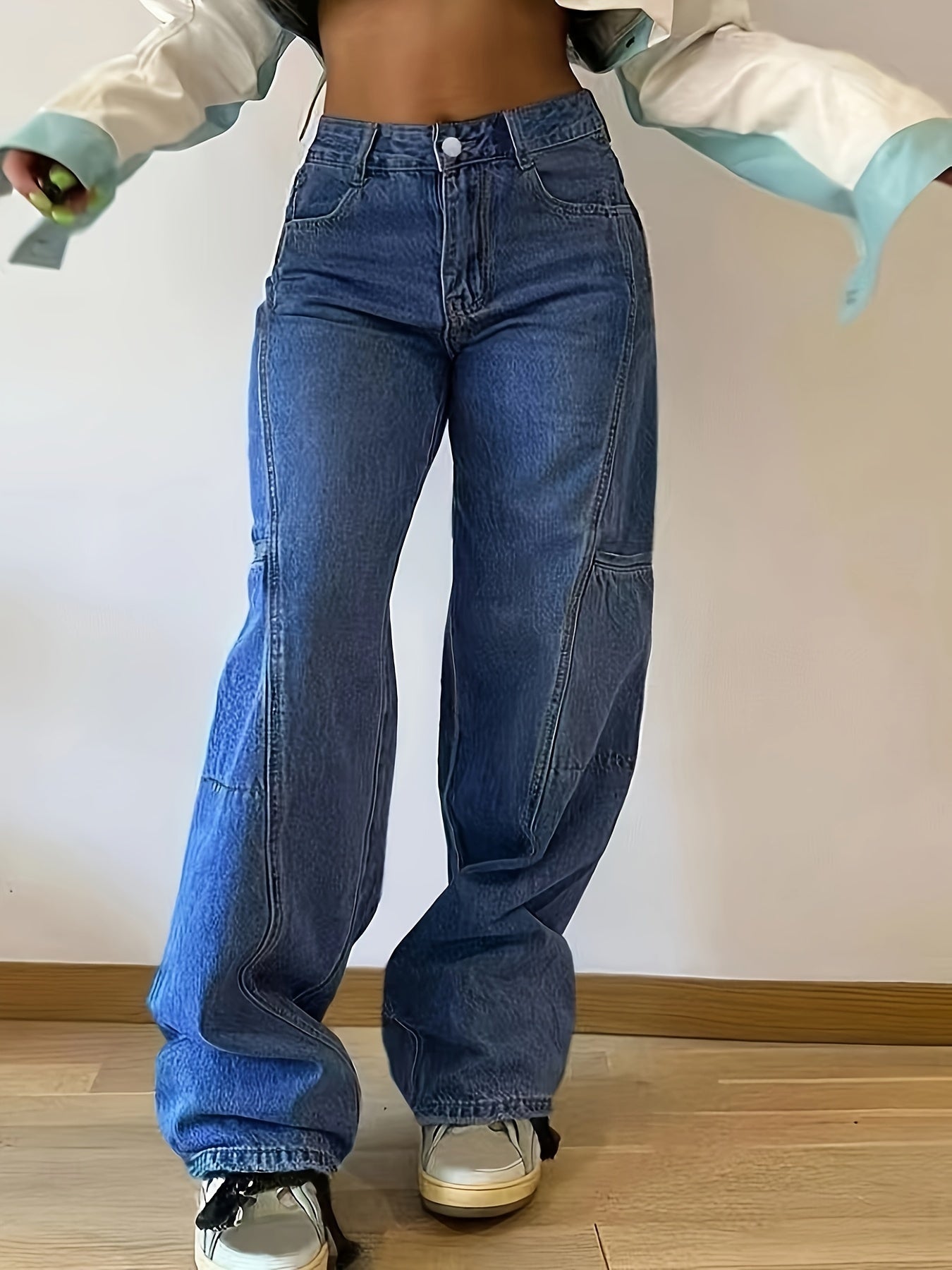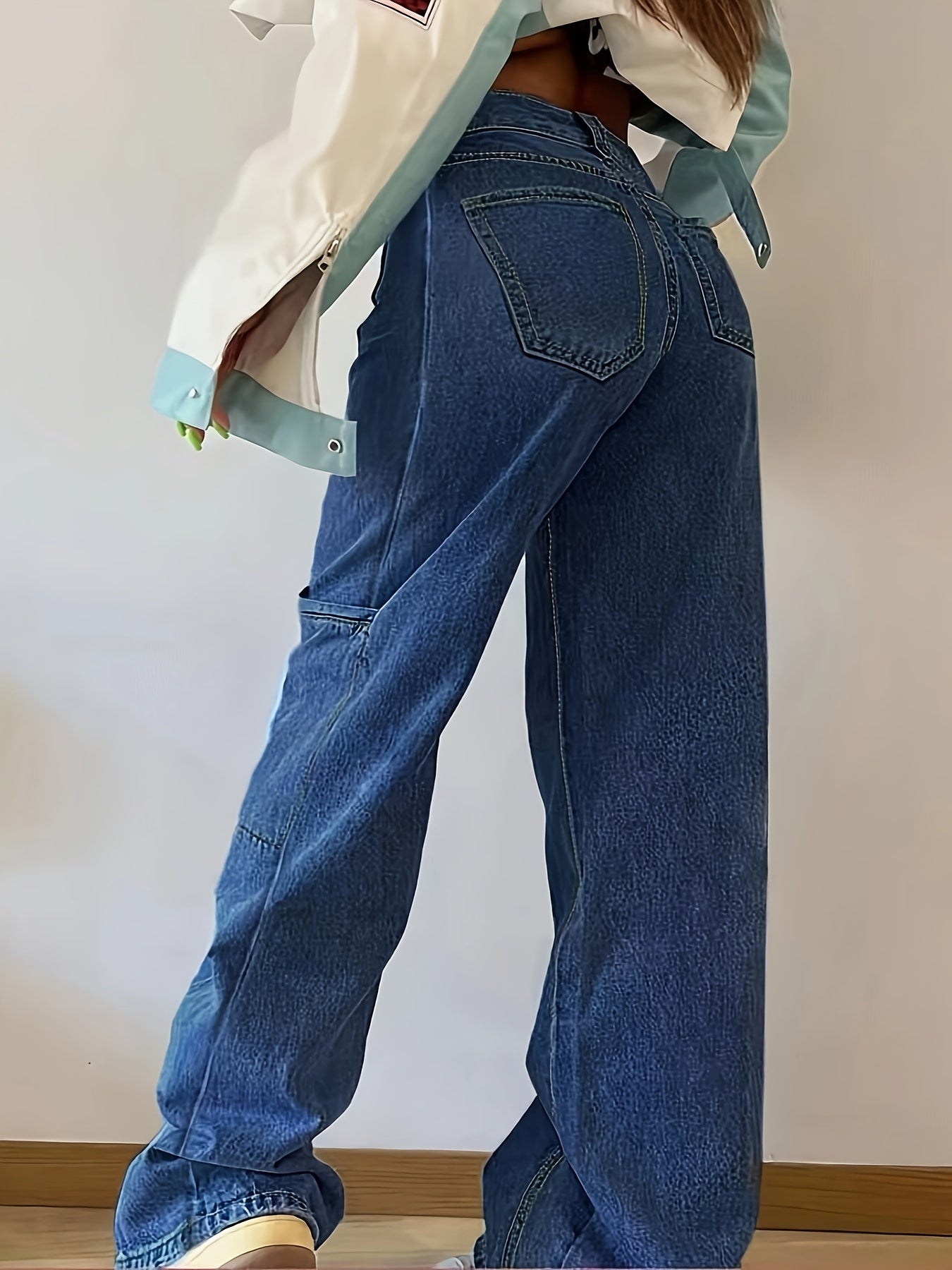 Chic Plus Size կանացի ուղիղ ջինսեր կողային գրպաններով - Comfort Fit ջինս միաձույլ գույնով, լվացվող մեքենայում