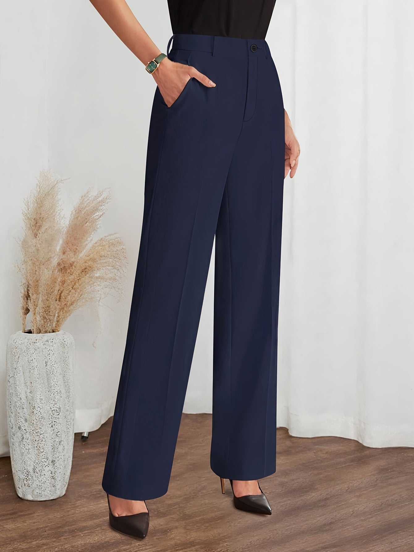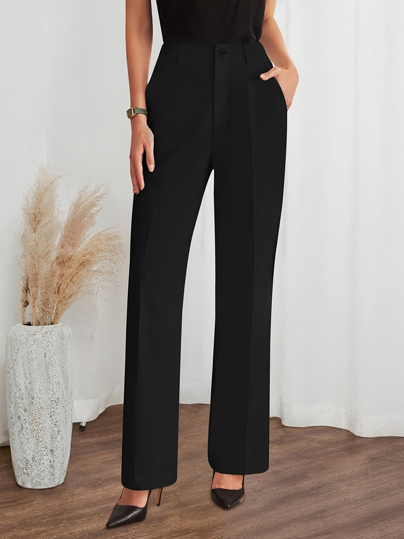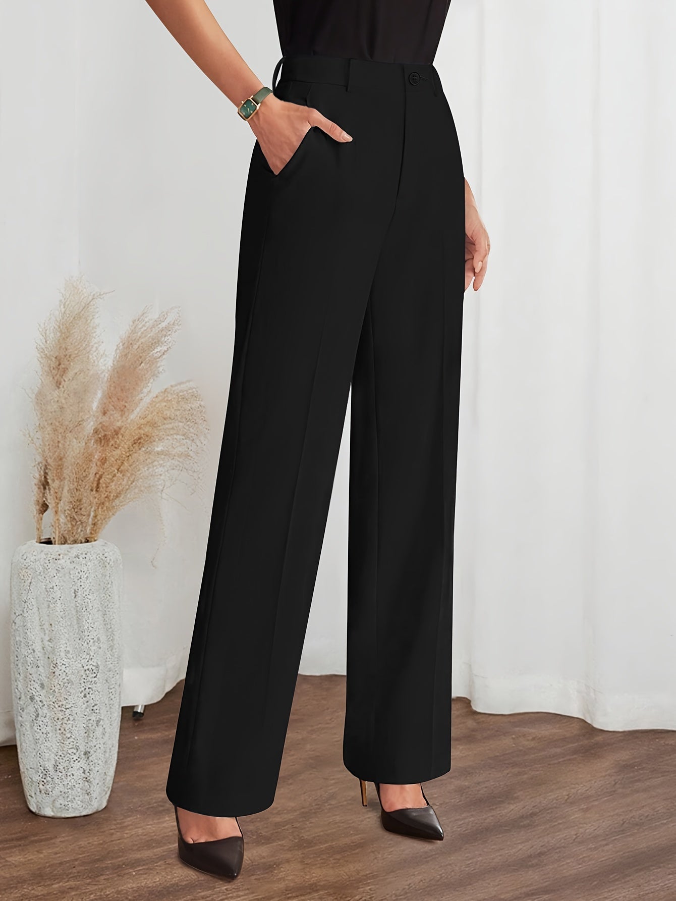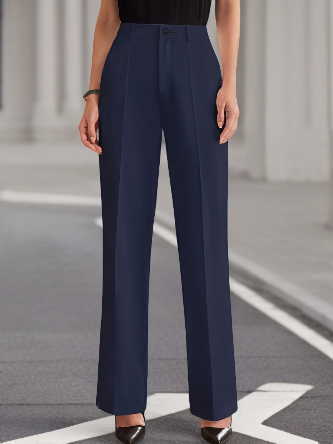 Շքեղ լայն ոտքերով, միագույն ուղիղ շալվար, էլեգանտ բարձր գոտկատեղով կոճակով առջևի տաբատ՝ աշխատանքի և գրասենյակի համար, կանացի հագուստ