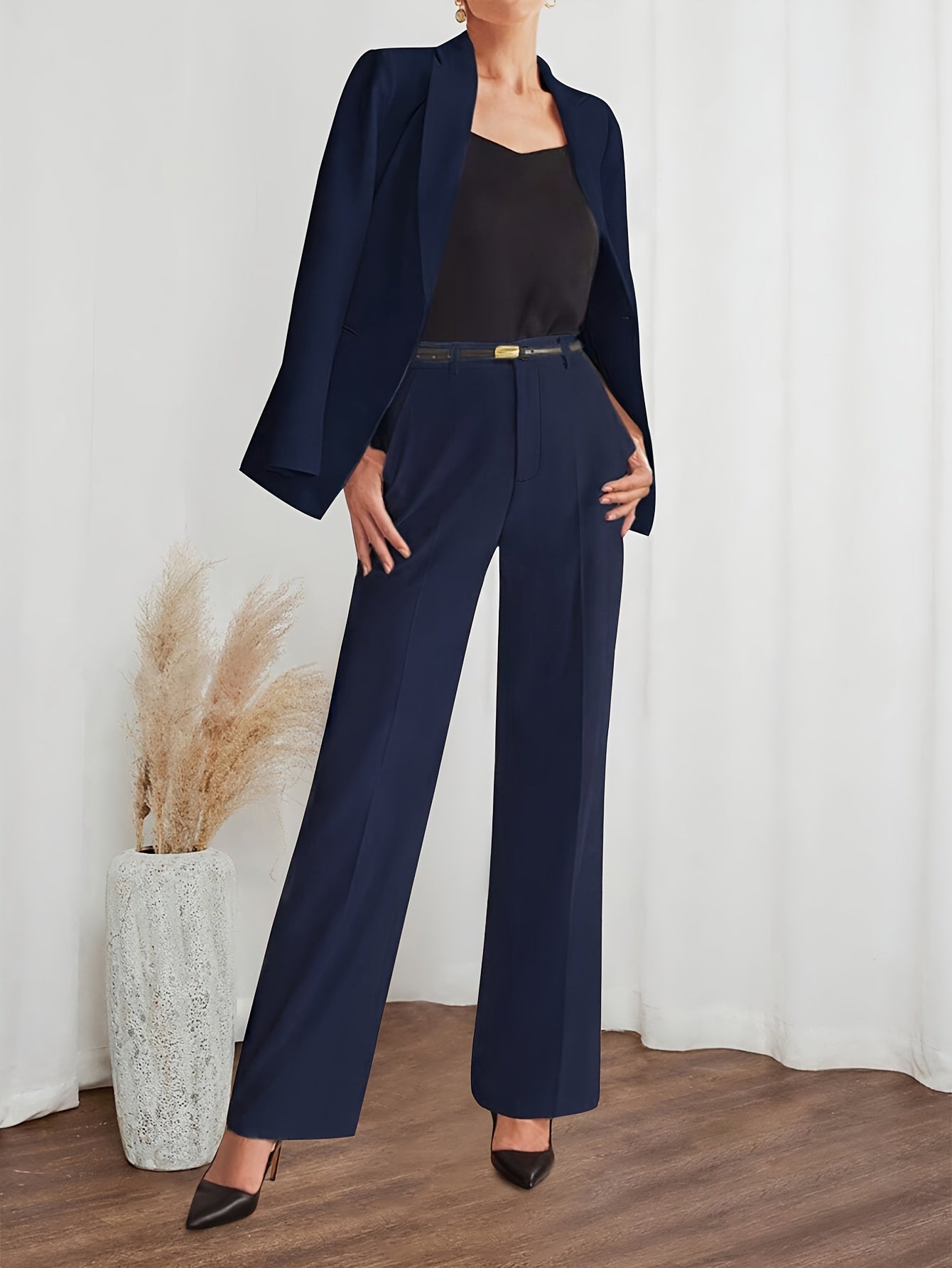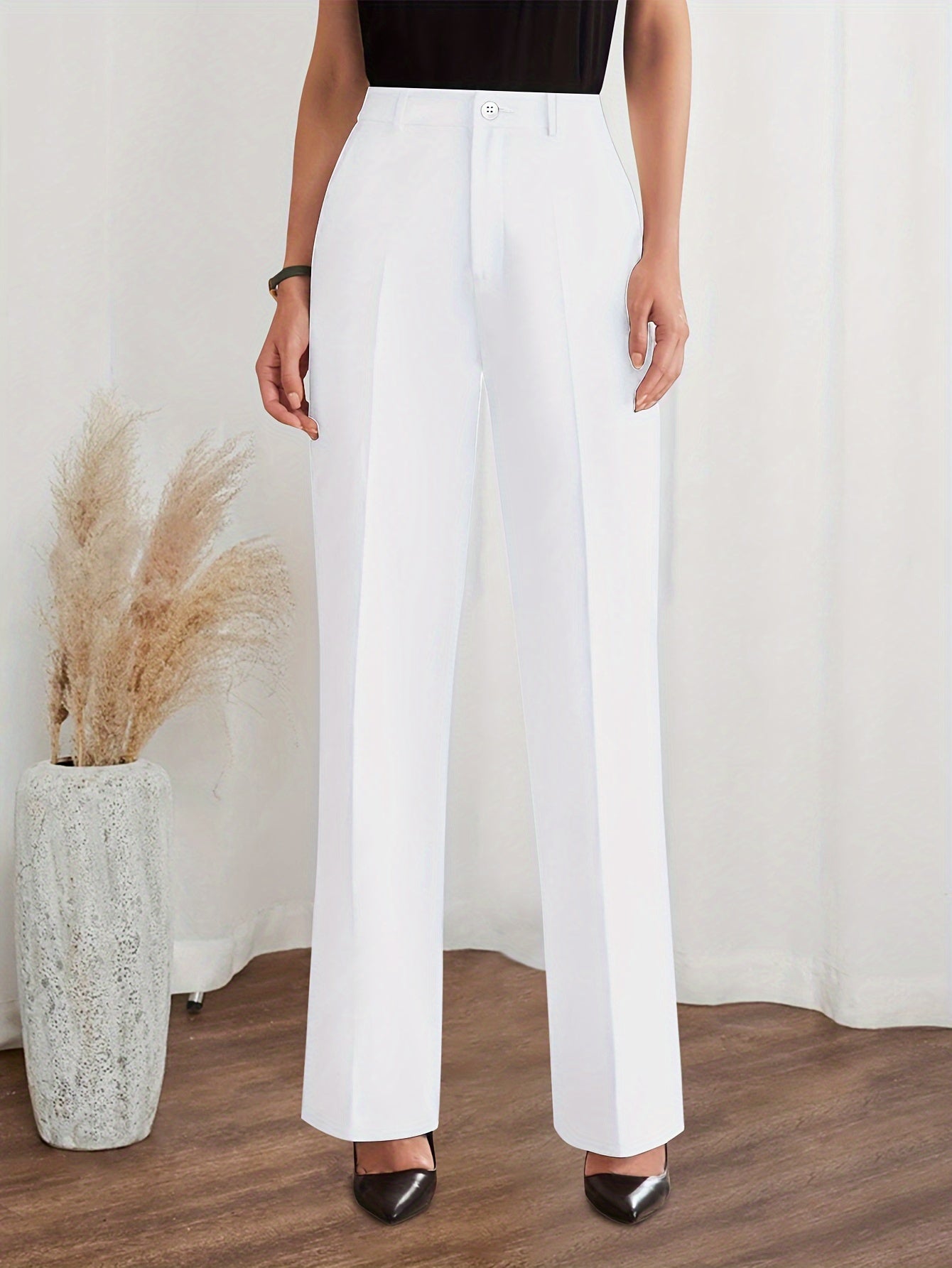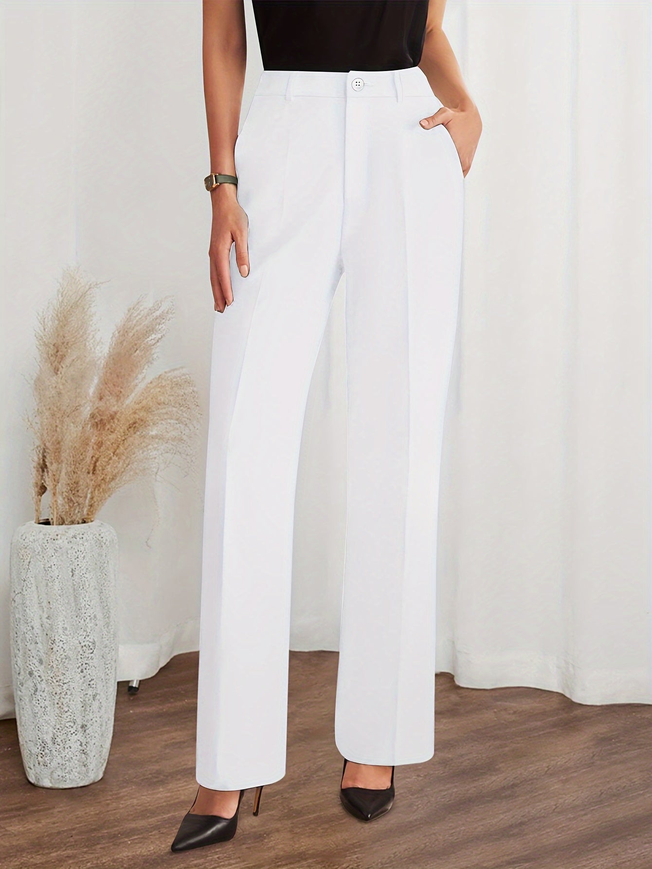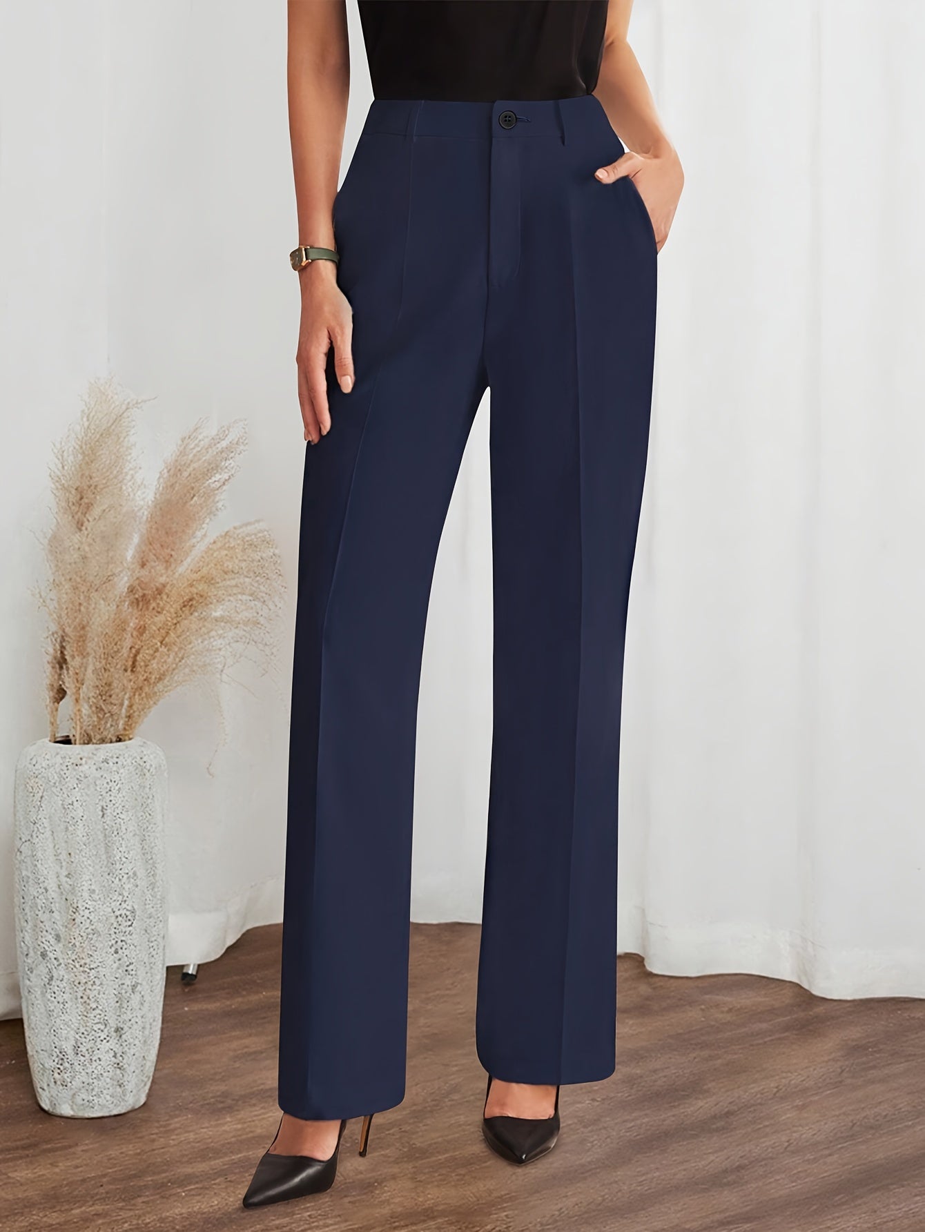 Շքեղ լայն ոտքերով, միագույն ուղիղ շալվար, էլեգանտ բարձր գոտկատեղով կոճակով առջևի տաբատ՝ աշխատանքի և գրասենյակի համար, կանացի հագուստ
