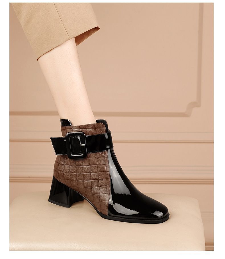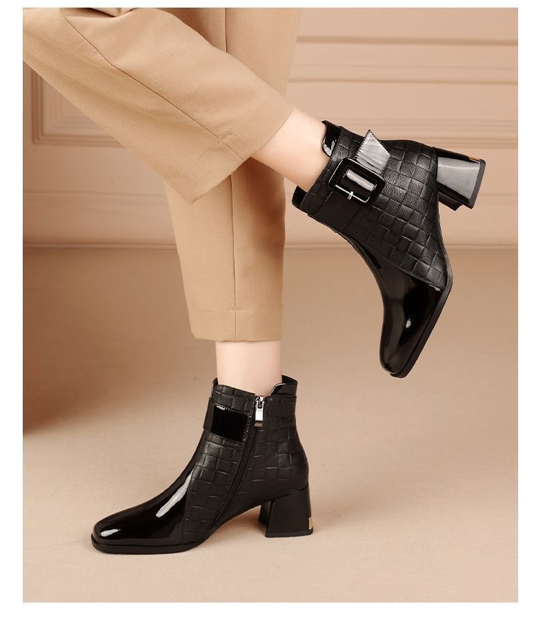 Շքեղ կանացի կոճ երկարաճիտ կոշիկներ՝ կոճ կրունկով - նորաձև ռետրո գոտիով ամրացված ձևավորում, կողային կայծակաճարմանդ, հարմարավետ PU ծածկոց