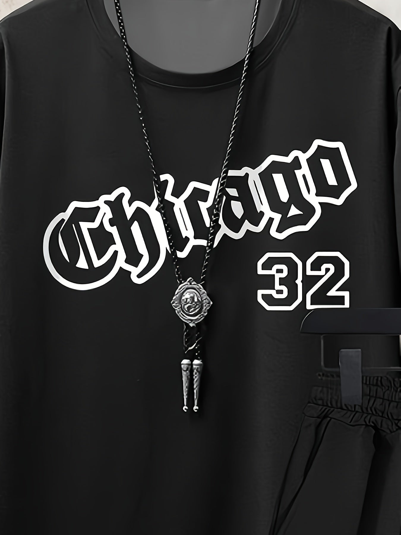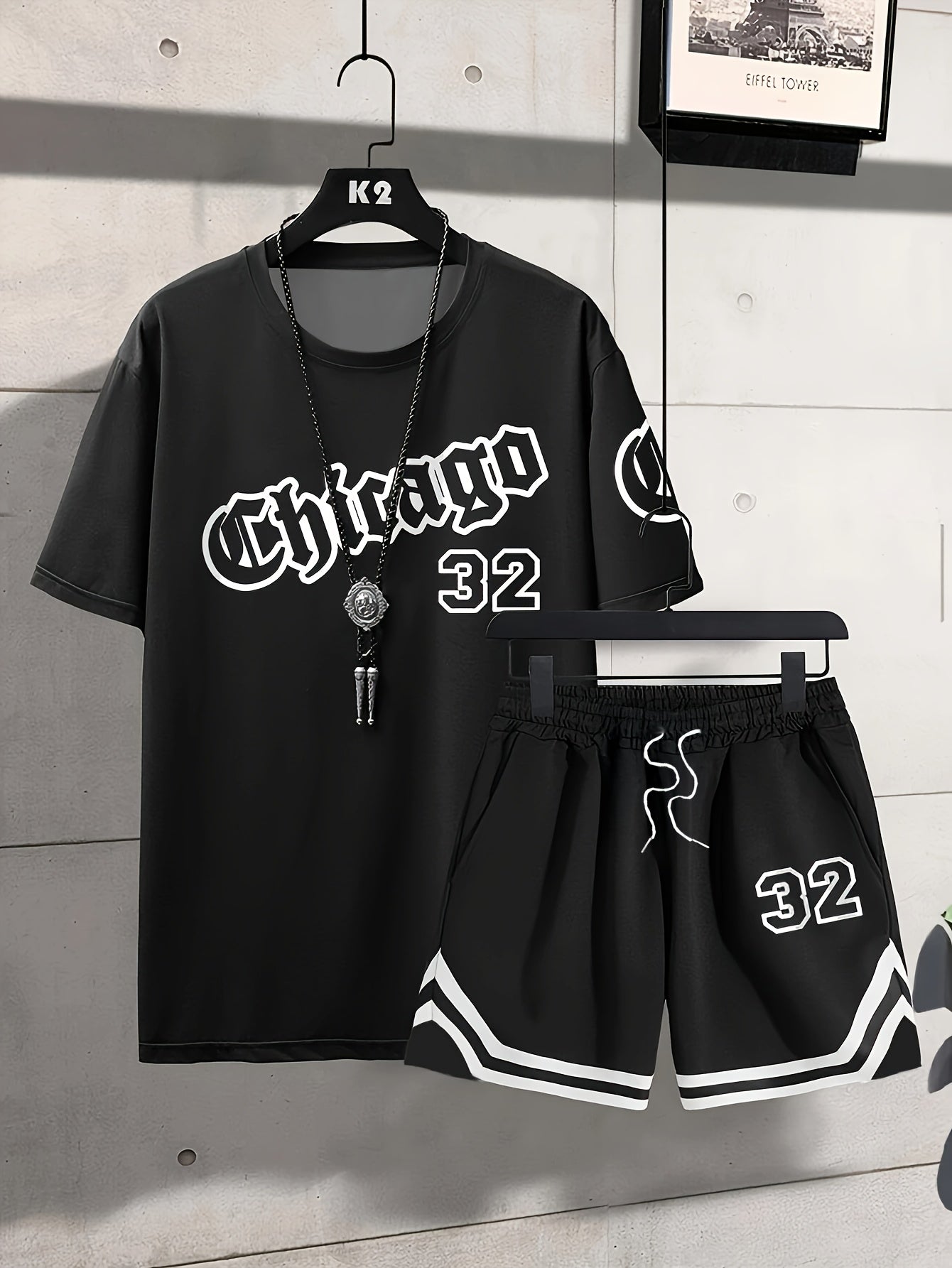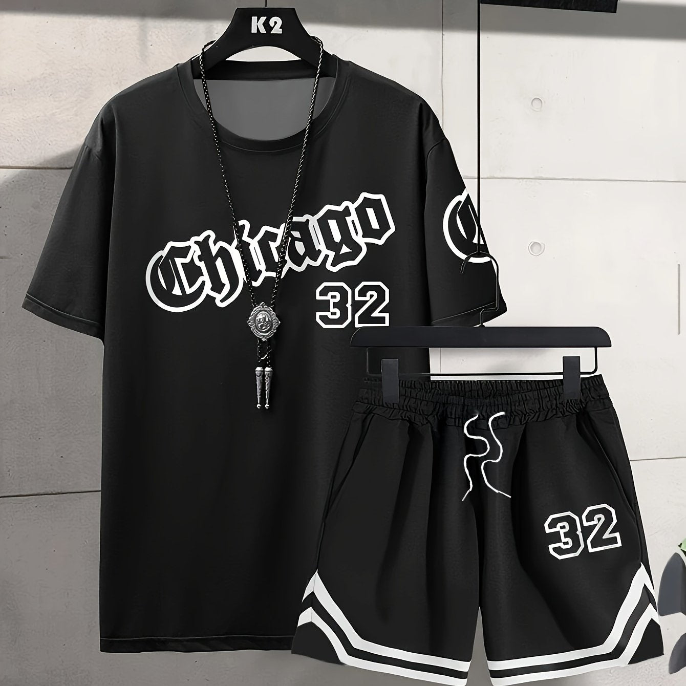 Չիկագոյի մոնոգրամով տպագիր տղամարդու կարճ թևքերով և շորտերի հավաքածու՝ ամենօրյա, առօրյա, տղամարդու մարզաշապիկ, փողոցային նորաձևության սպորտային շորտեր՝ երկու կտորից