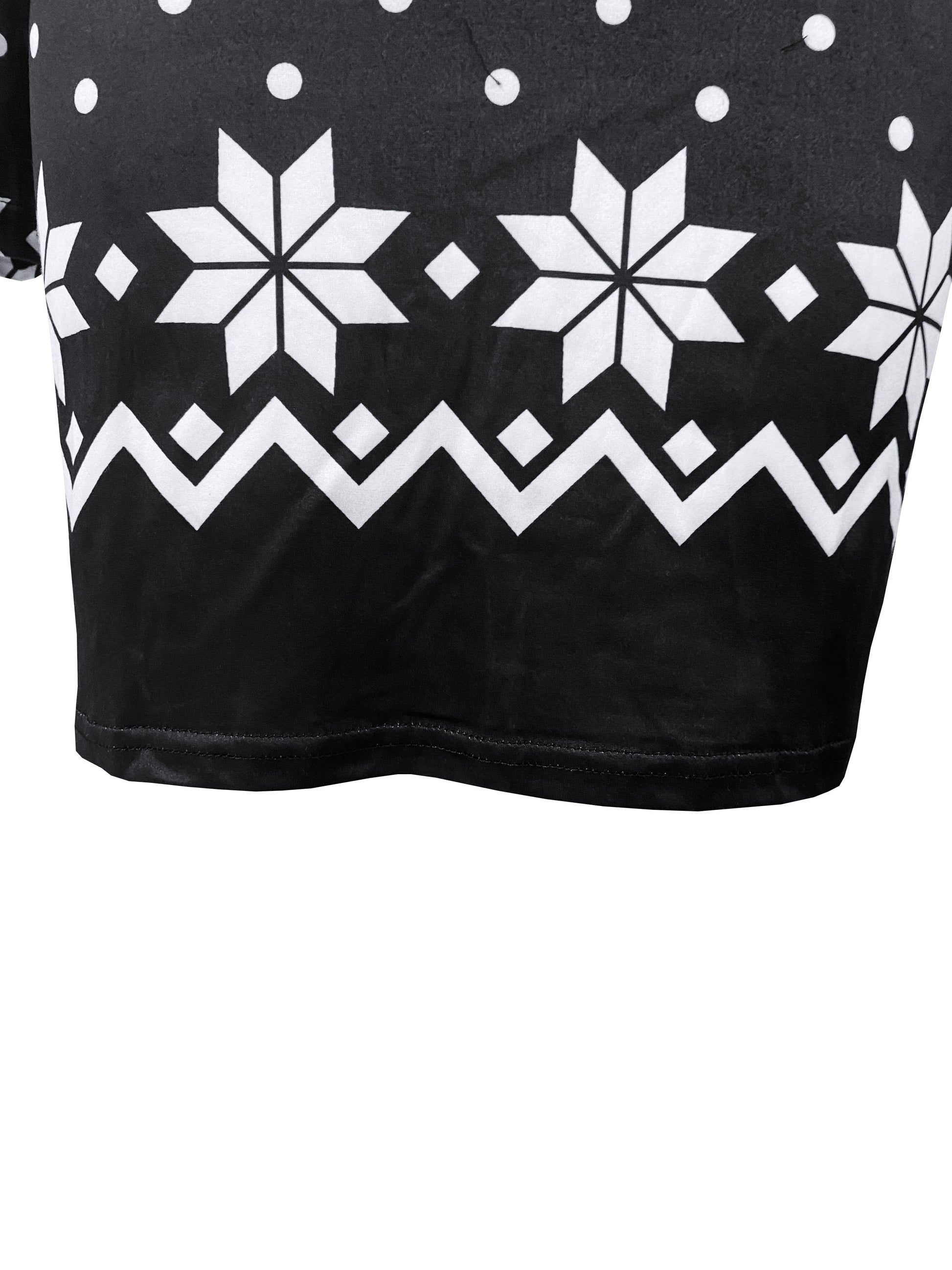 Christmas Deer Print Bodycon Dress, Casual Crew Neck Long Sleeve Mini Dress, Women's Clothing