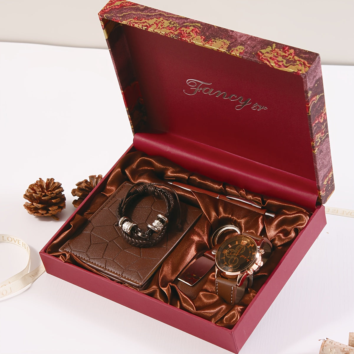 Սուրբ Ծննդյան նվերների տուփերի հավաքածու՝ վեց հատ, դրամապանակ + ժամացույց + ապարանջան + բանալիի շղթա + գրիչ + փայտե նվերների տուփ