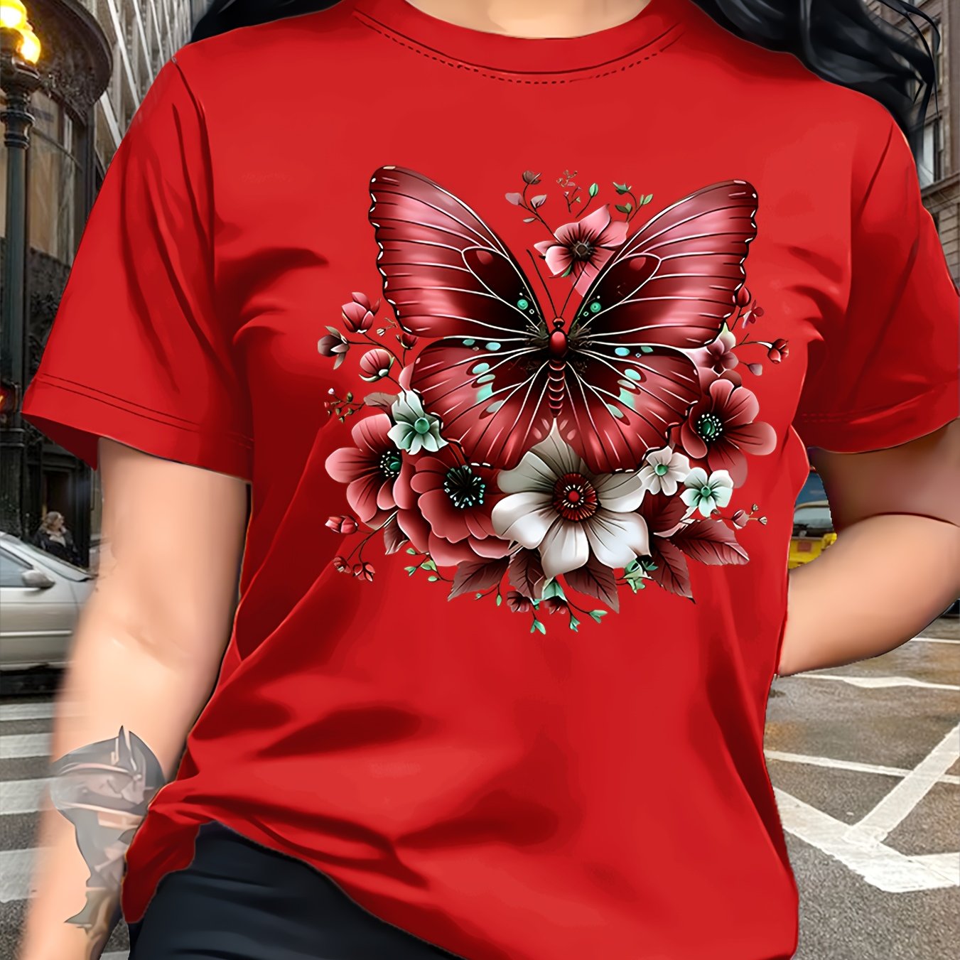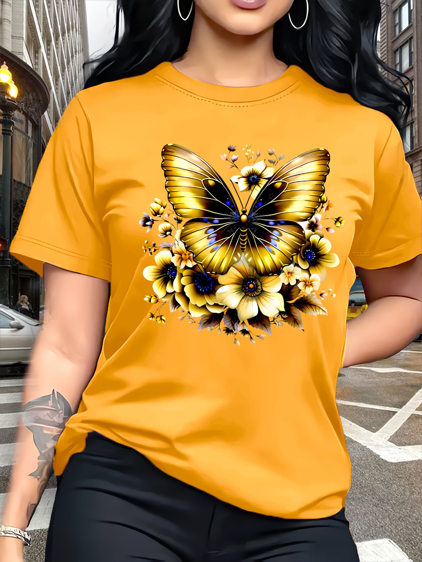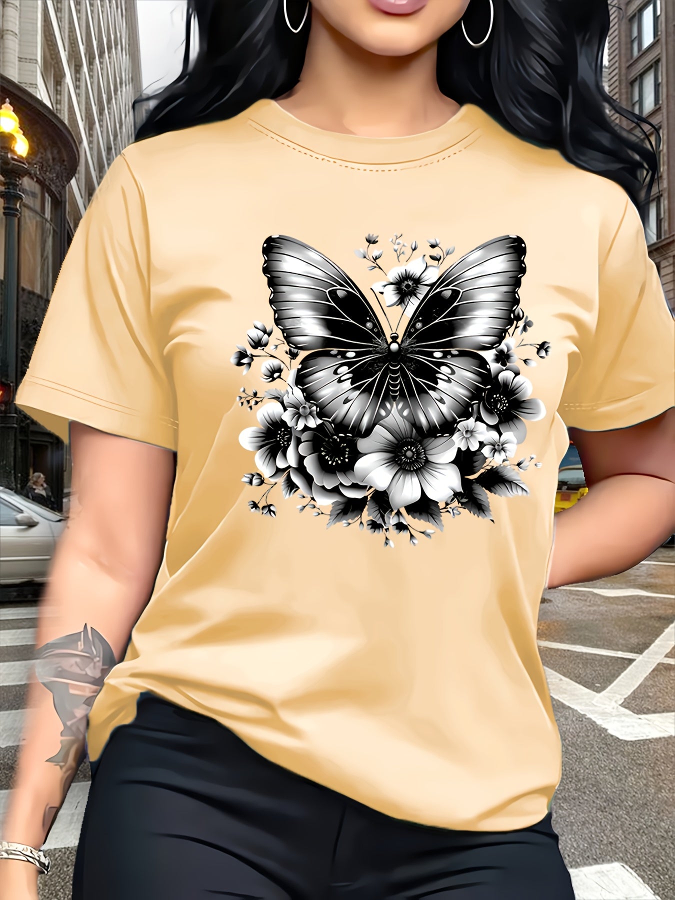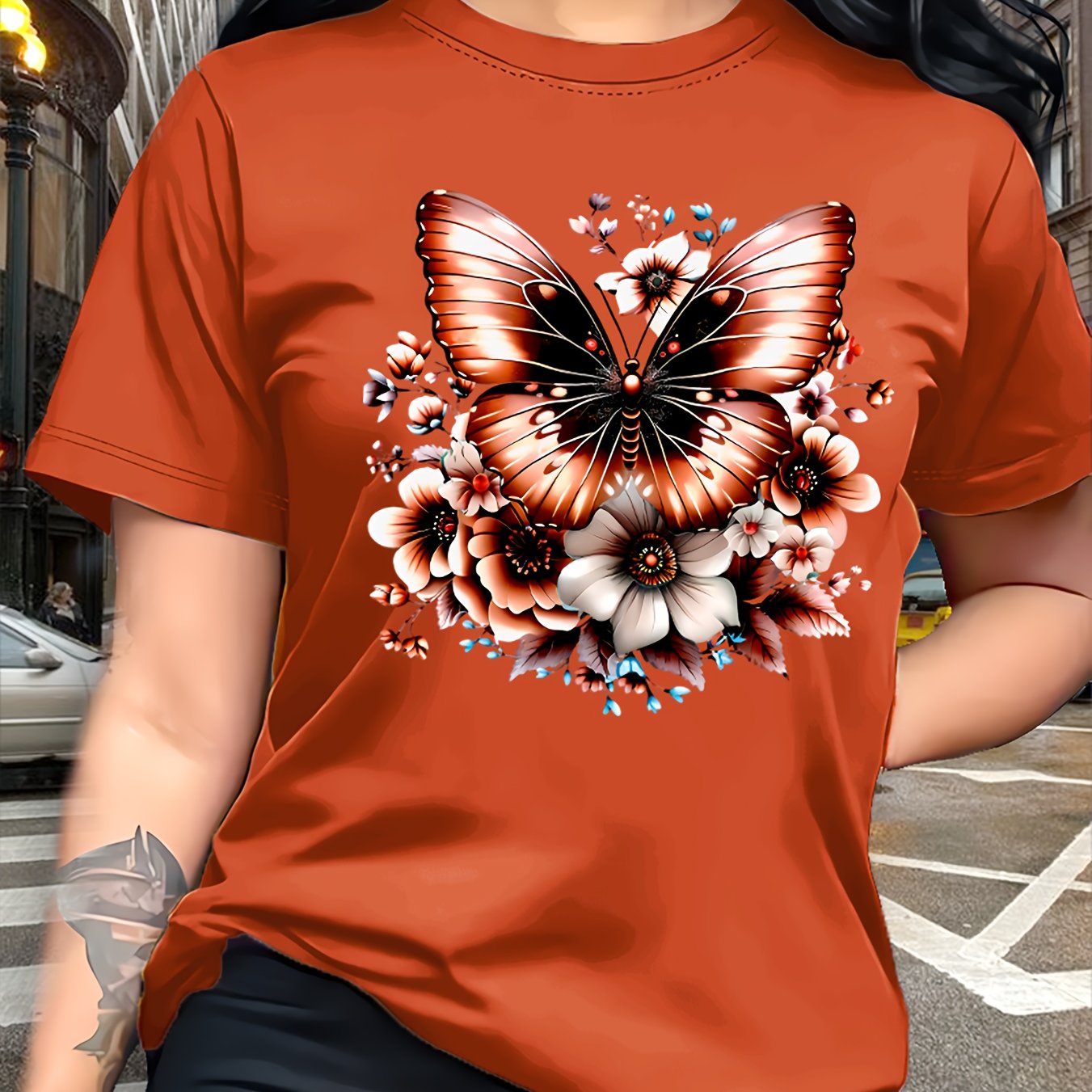 Circle Chic թիթեռի նախշերով շապիկ - նրբագեղ դիզայն, կլոր վզնոցով ամենօրյա վերնաշապիկ - շնչող և թեթև, իդեալական է գարուն/ամառ զգեստապահարանի համար