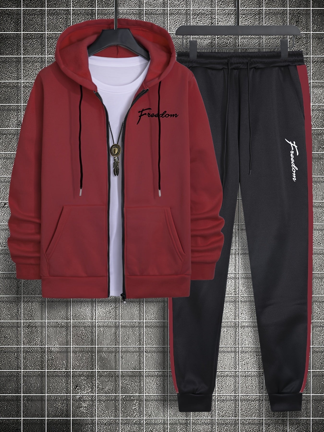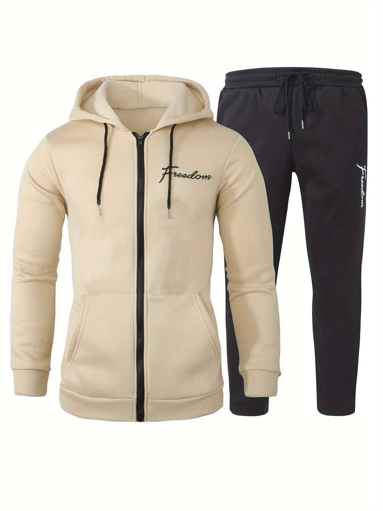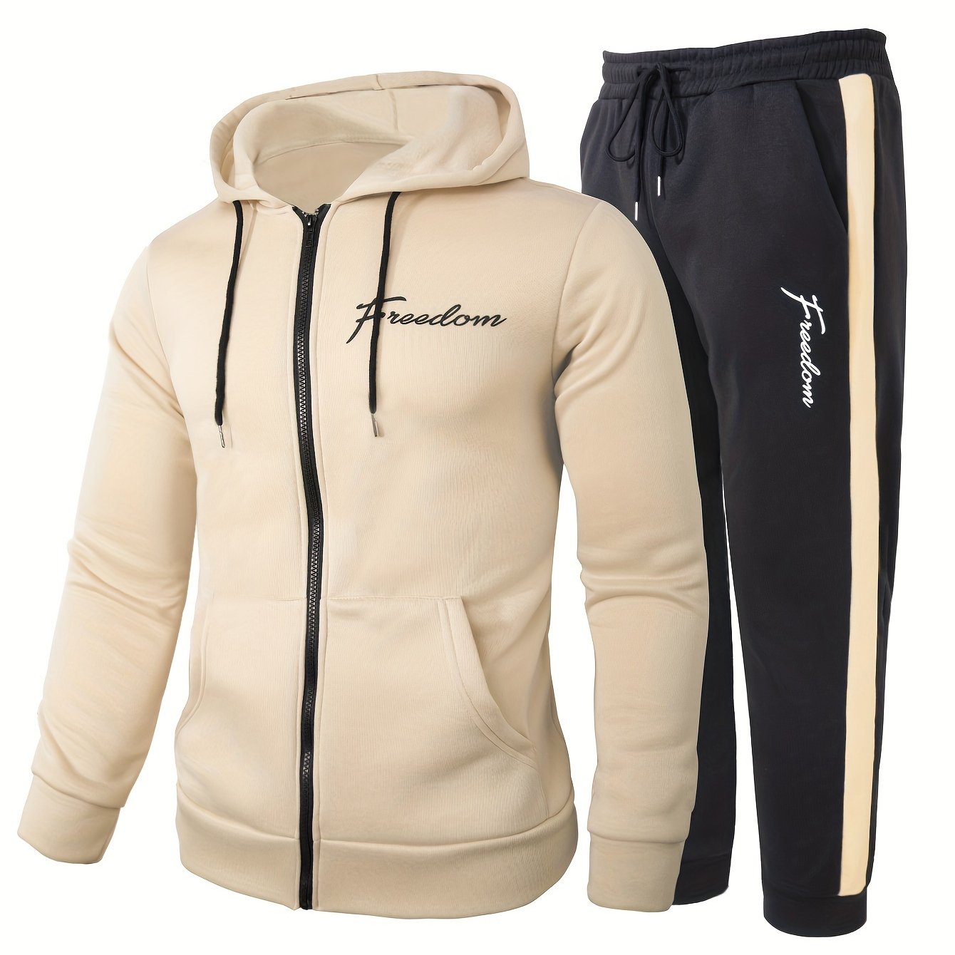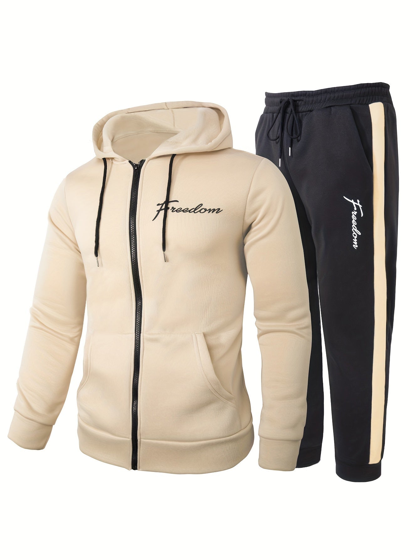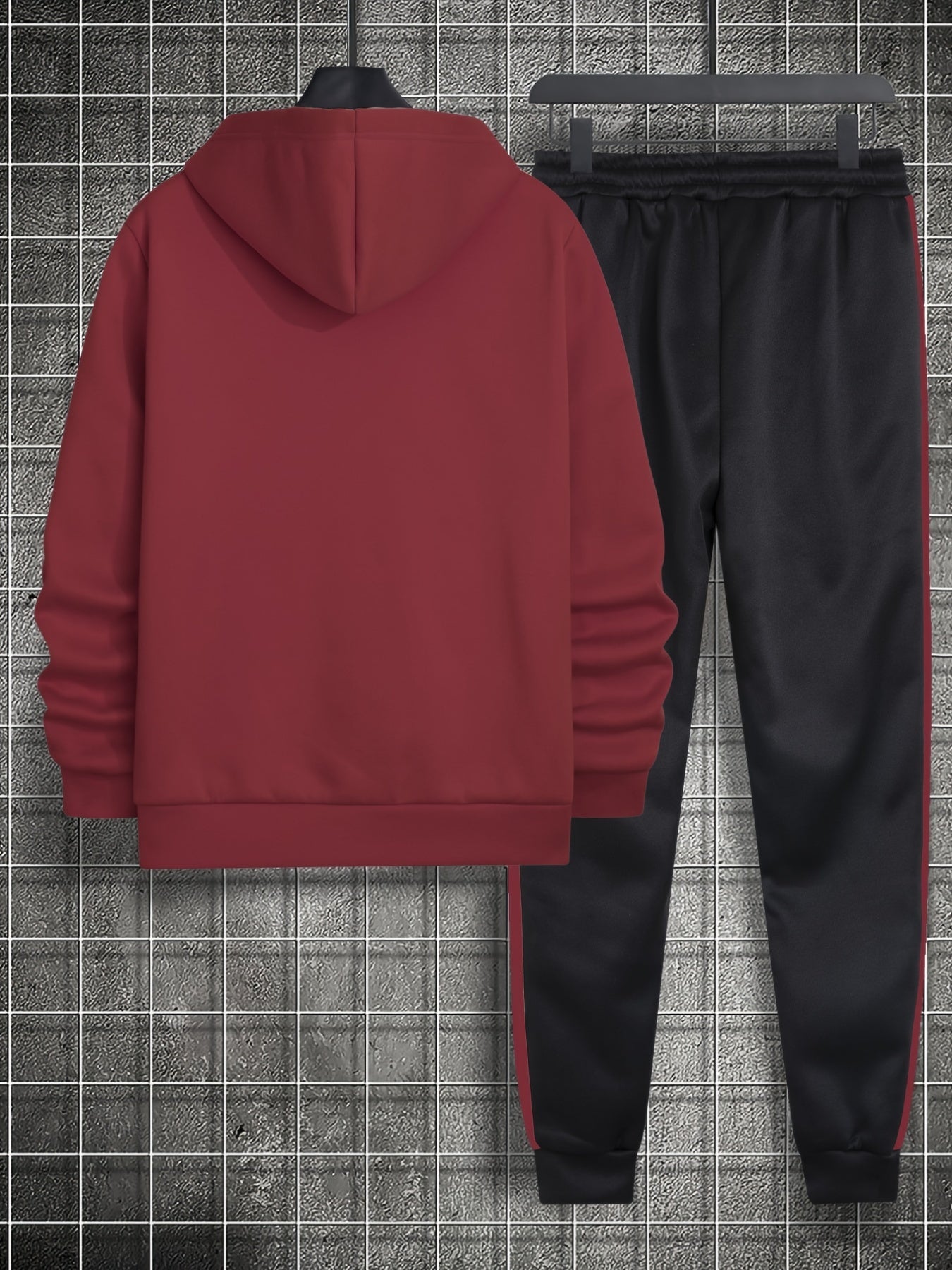 Classic Men's Athletic 2Pcs Tracksuit Set Casual Full-Zip Sweatsuits Long Sleeve Hoodie And Jogging Pants Set For Gym Workout Running
