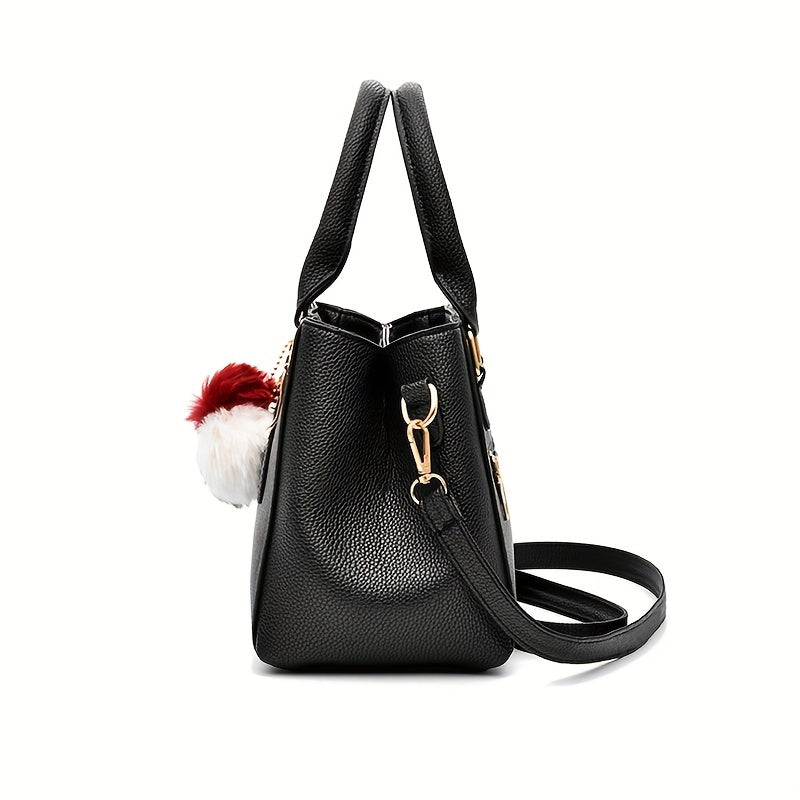 Դասական միագույն կրծկալով պայուսակ, նորաձև, էլեգանտ, համընկնող վերին բռնակով պայուսակ պոմպոնների դեկորով