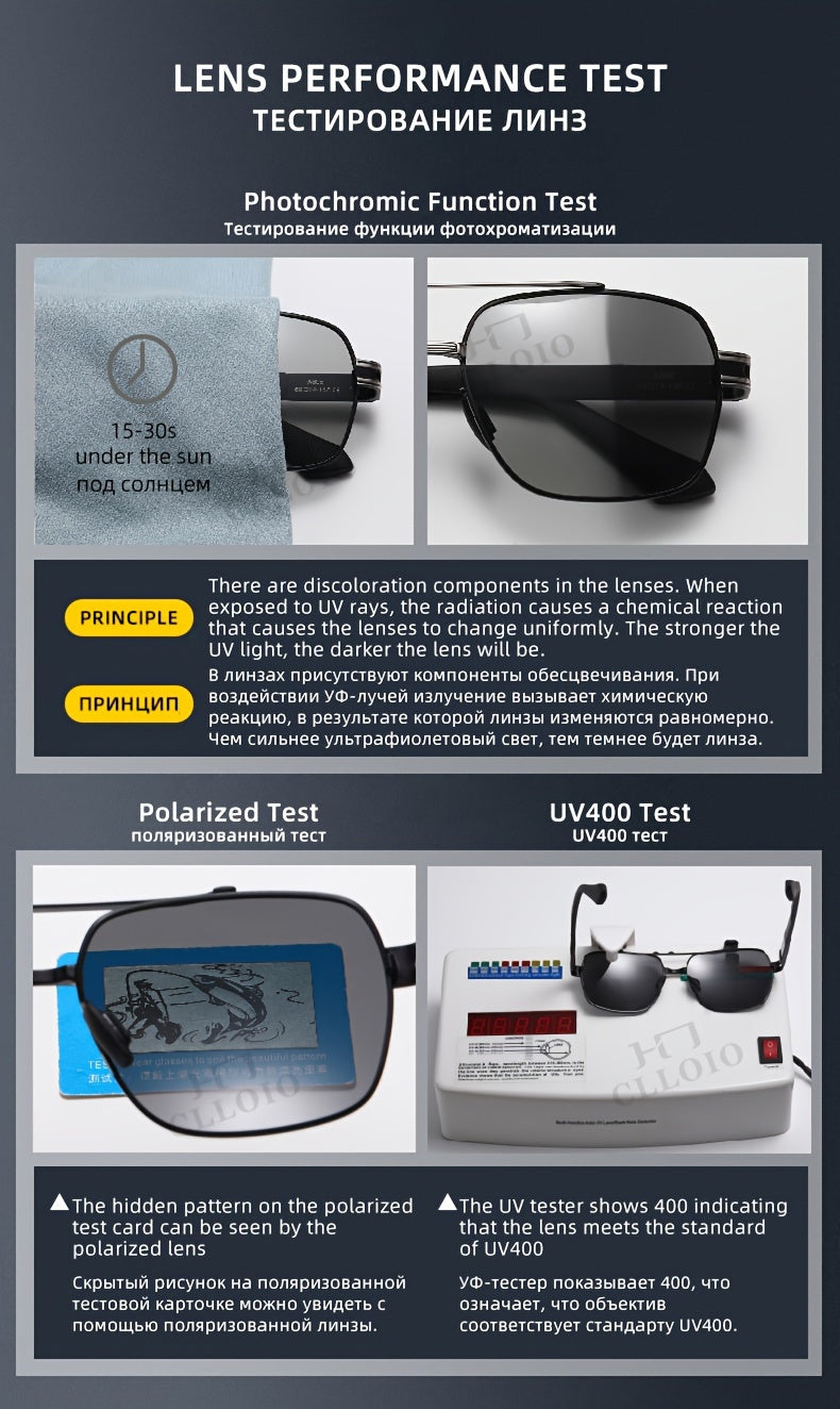 CLLOIO Բարձրորակ ֆոտոքրոմիկ տղամարդկանց և կանանց բևեռացված վարորդական քամելեոն հակա-շողացող սպորտային UV400