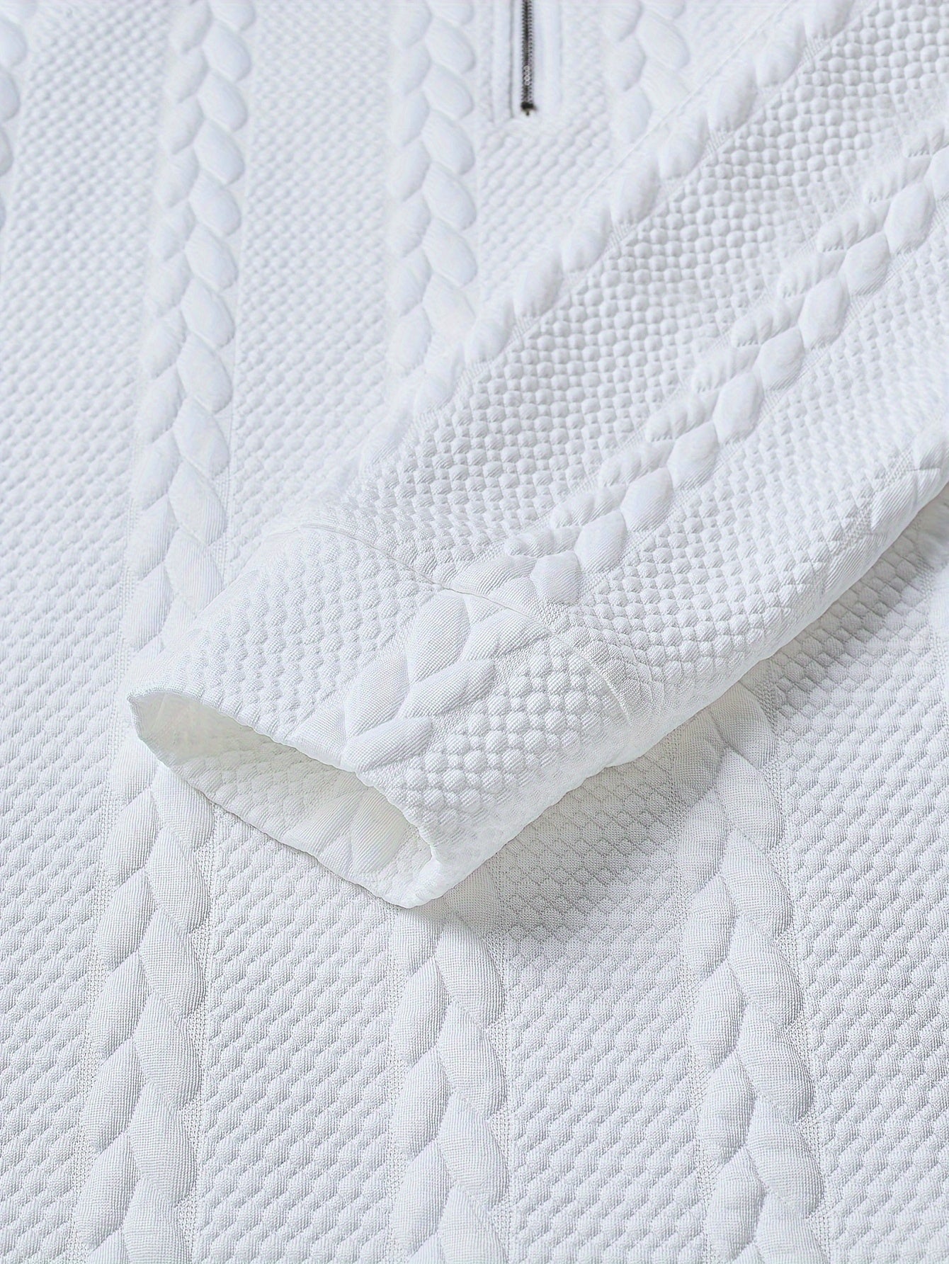 CLQWE Men's White Cable- Jacket with Collar & Brown Button Panel - Half-Zip Long Sleeve Blazer, Machine Washable Winter Coat for Casual & Formal Wear, Tailored Fit (No Belt)