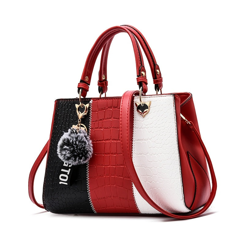 Cocogigi էլեգանտ կանացի կոկորդիլոսի նախշերով պայուսակ՝ հանվող ժապավենով, մեծ տարողությամբ, սև և սպիտակ դիզայնով, ոճային պայուսակ մայրիկի, ընկերուհու կամ նվերի համար, կոկորդիլոսի հյուսվածքով