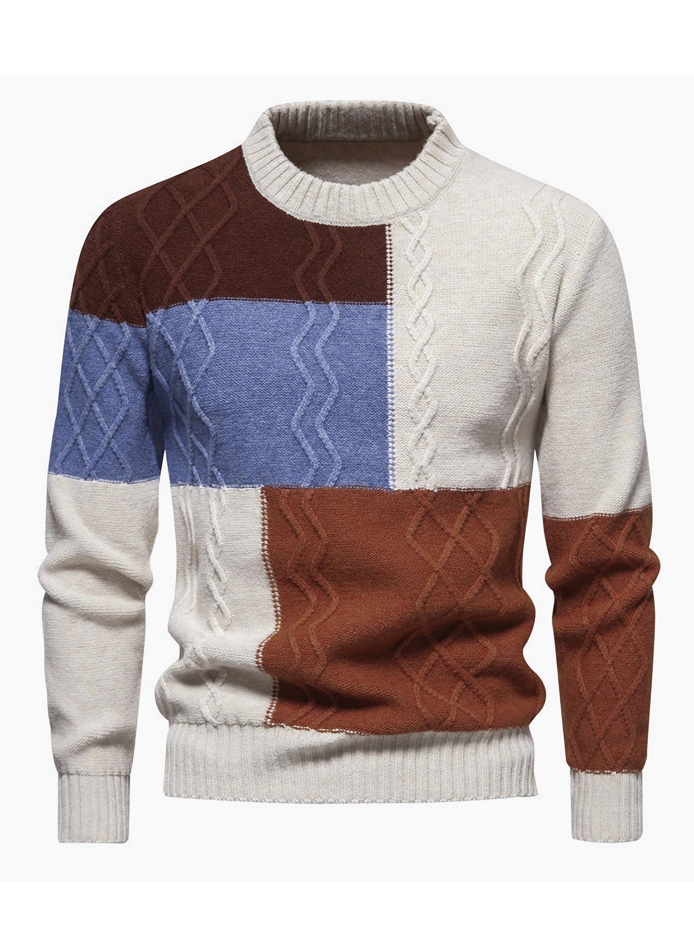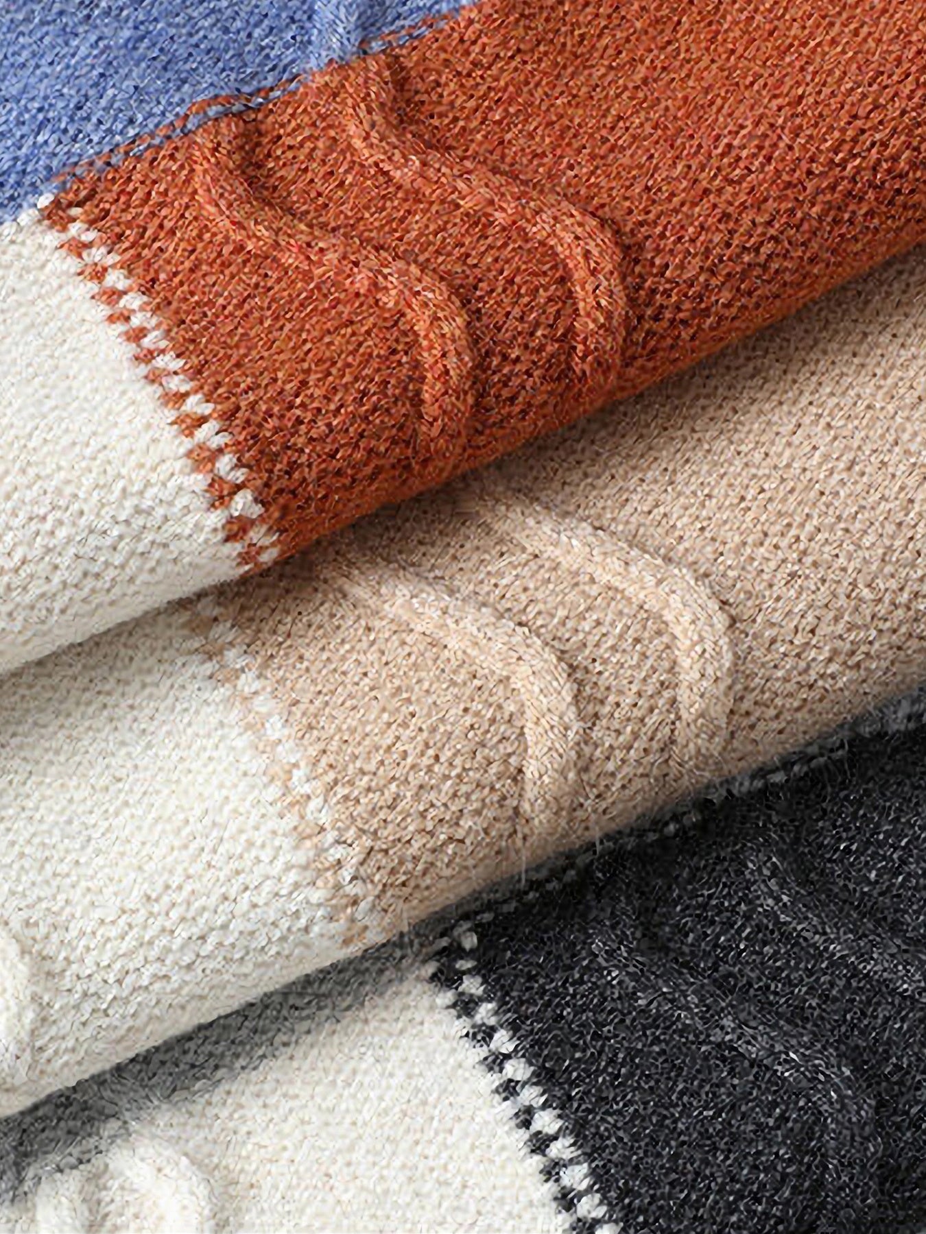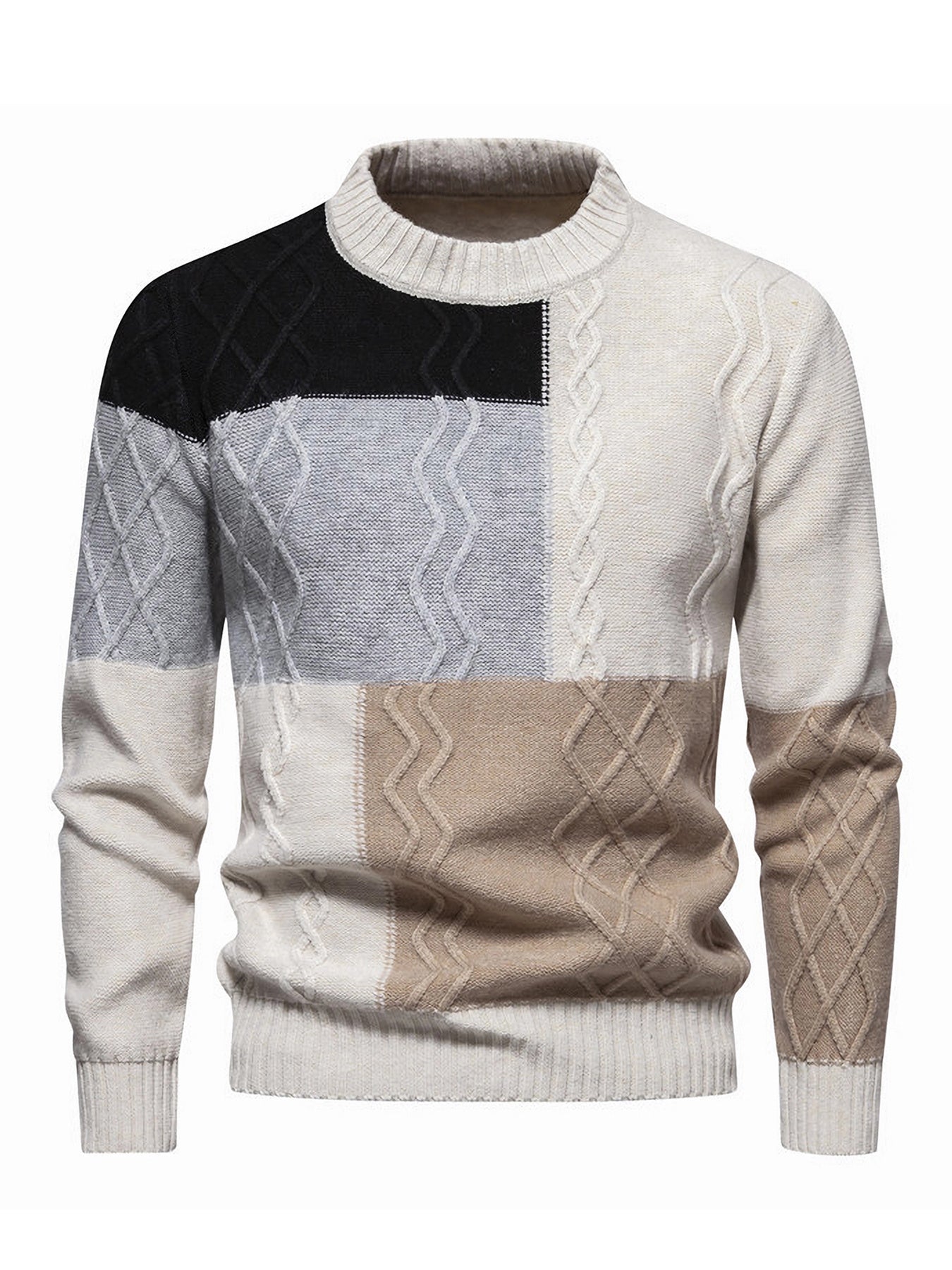 Գունավոր համադրություններով կլոր օձիքով պուլովեր սվիտեր տղամարդկանց համար, նորաձև ազատ գործվածքով վերնաշապիկ աշնանային և ձմեռային երիտասարդների համար