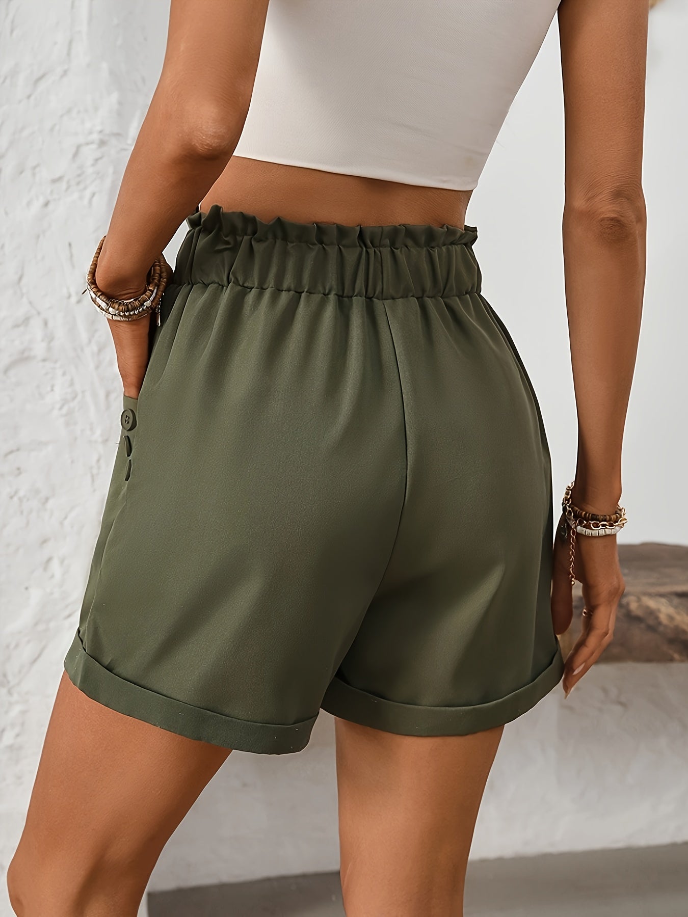 Հարմարավետ բարձր գոտկատեղով շորտեր՝ դեկորատիվ կոճակներով