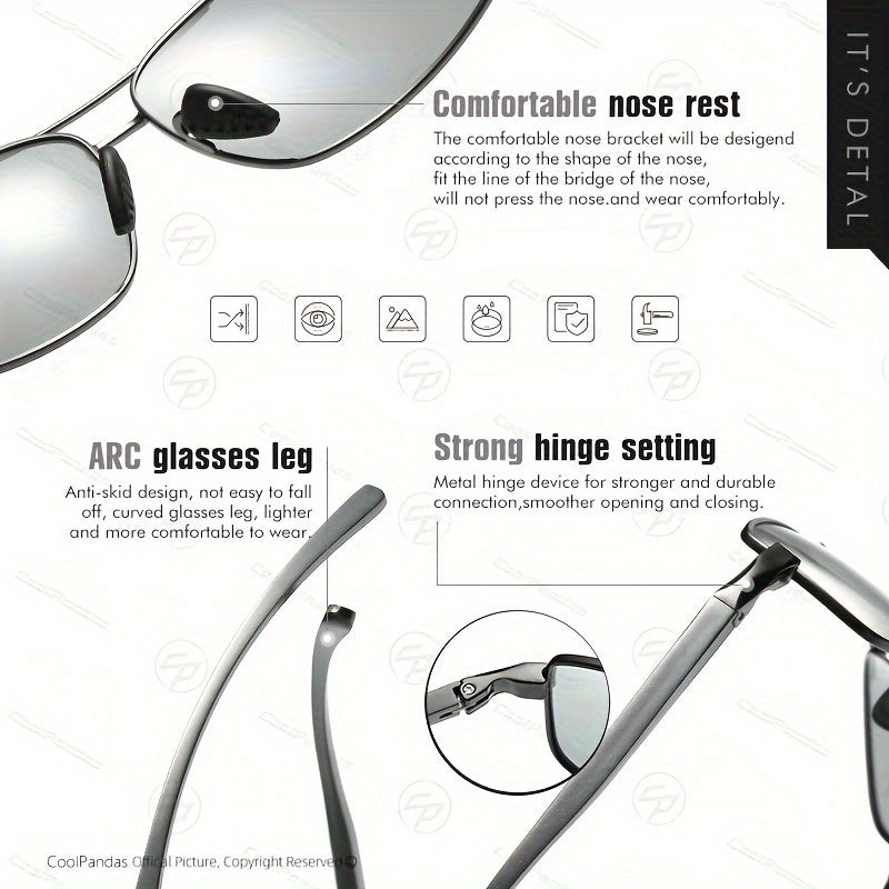 Coolpandas ապրանքանիշի լավագույն ֆոտոքրոմիկ ակնոցներ տղամարդկանց և կանանց համար, բևեռացված քամելեոնային ակնոցներ բացօթյա սպորտաձևերի, ձկնորսության, վարորդական ակնոցներ՝ հակաշողացող հատկություններով։