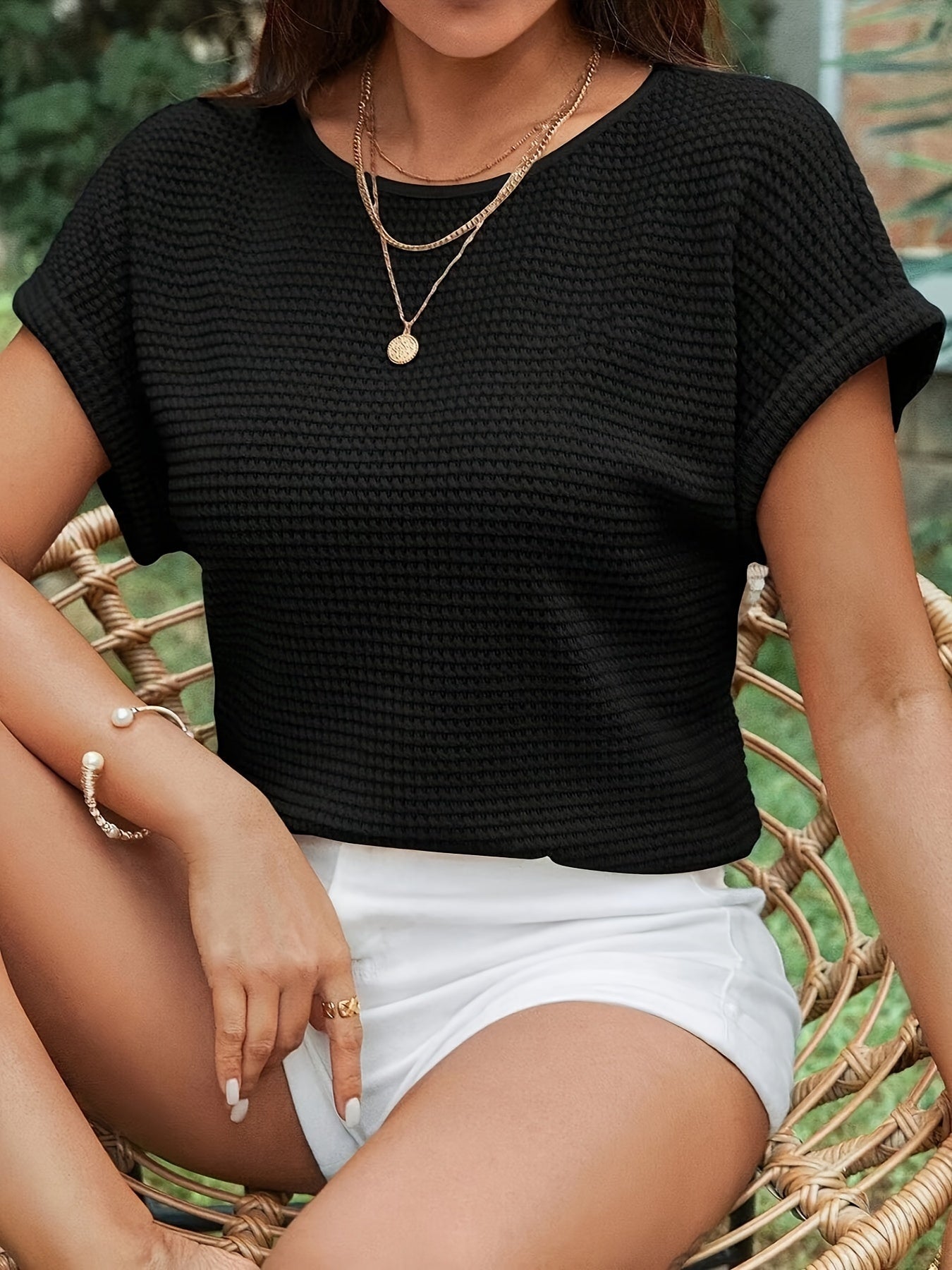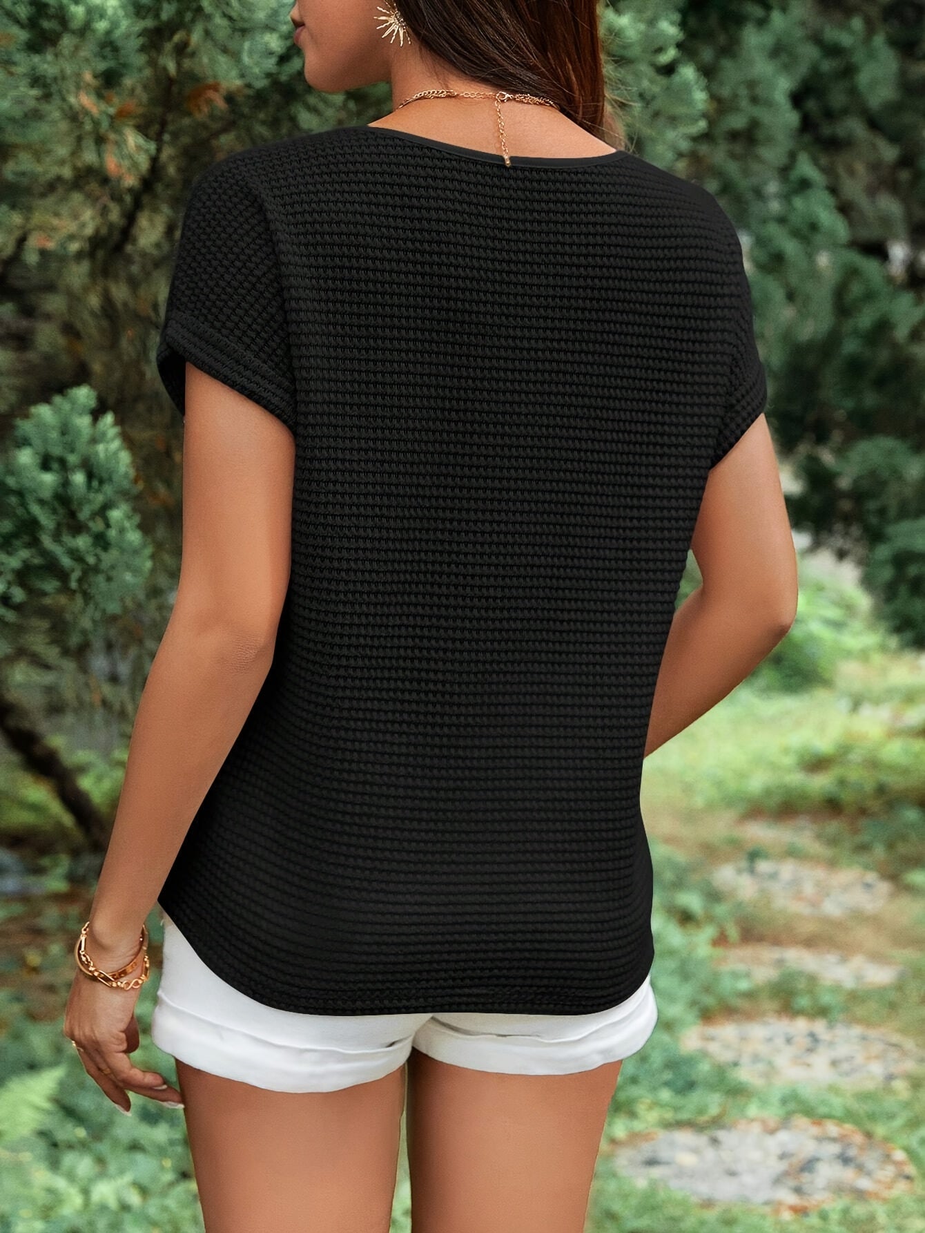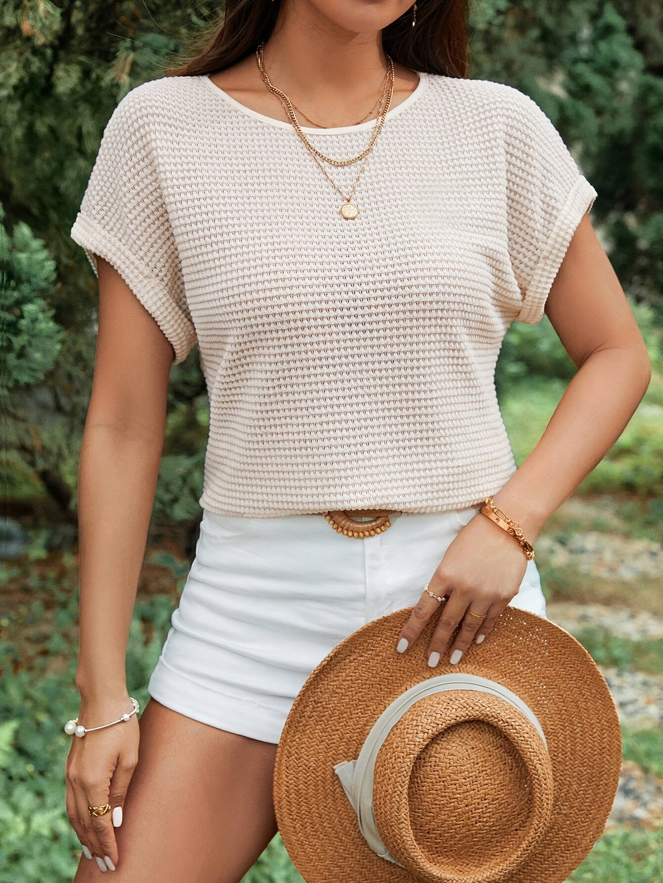 Կրկնակի վզնոցով միագույն, ազատ մարզաշապիկ, կարճ թևքերով վերնաշապիկ՝ գարնանային և ամառվա համար, կանացի հագուստ