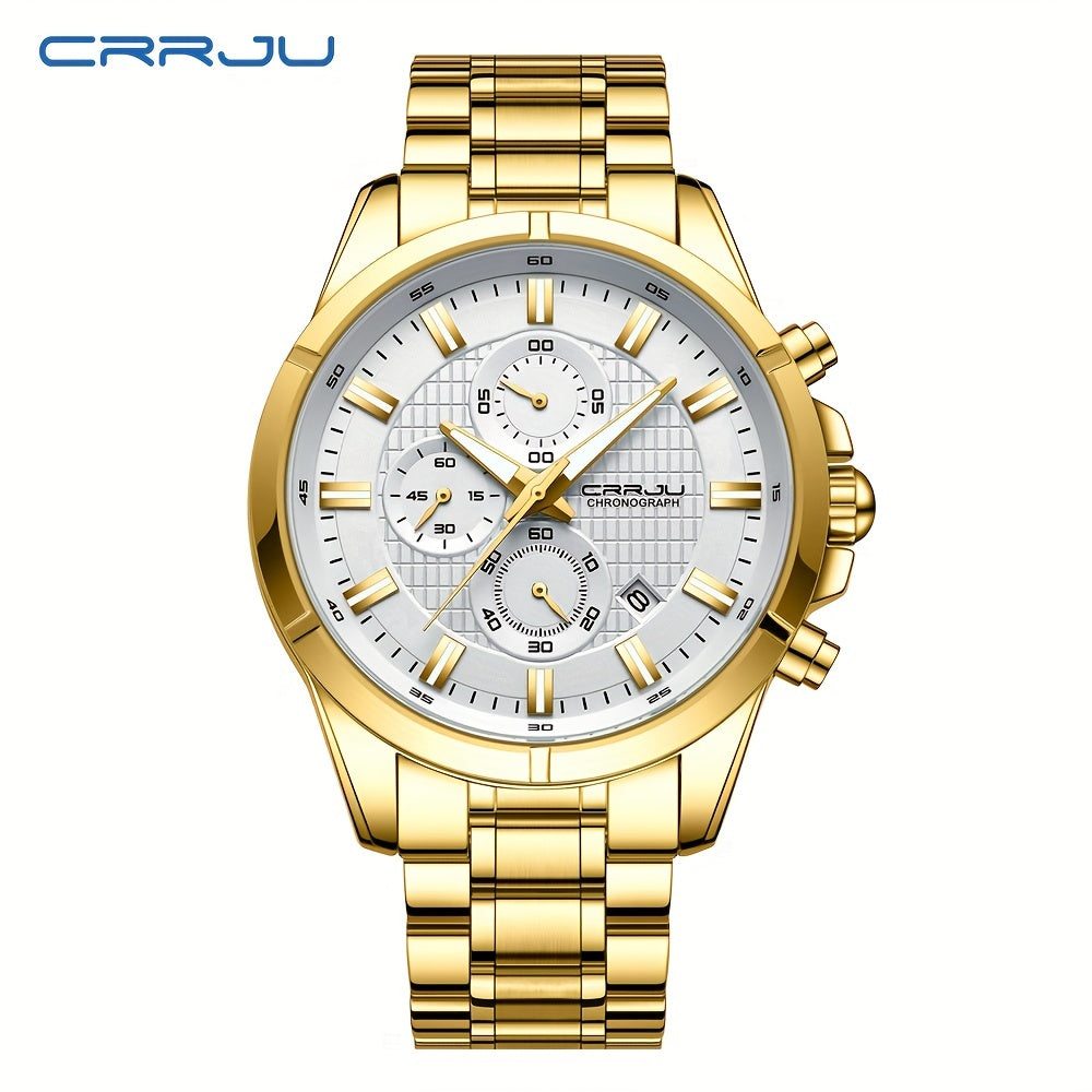 CRRJU նորաձև տղամարդու ժամացույց, գործնական, ամուր չժանգոտվող պողպատից բազմաֆունկցիոնալ քրոնոգրաֆիկ ժամացույց