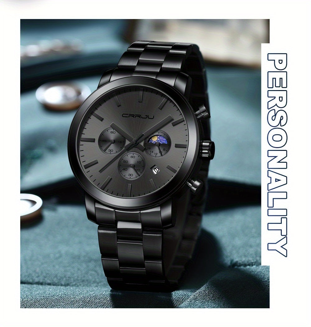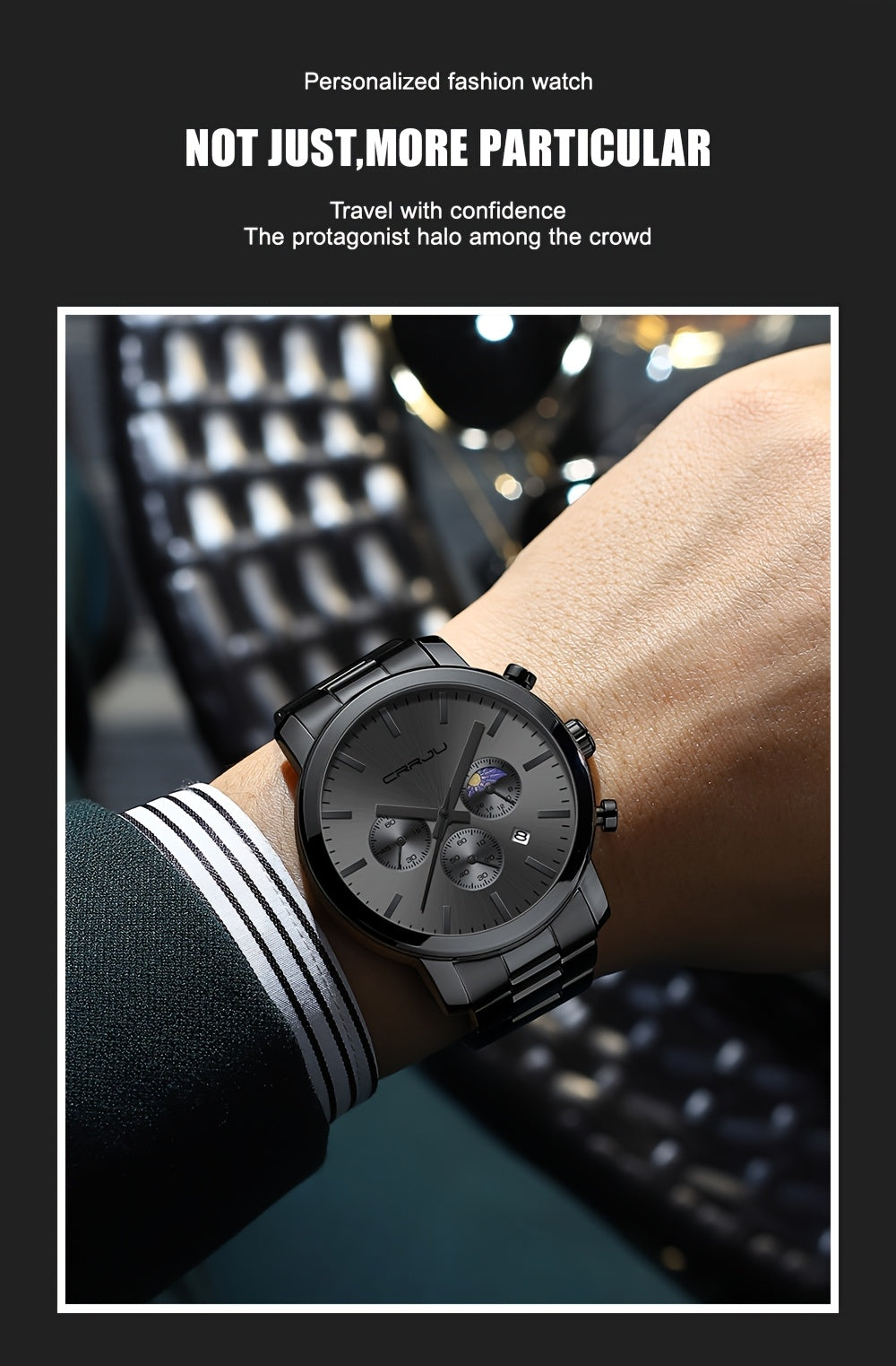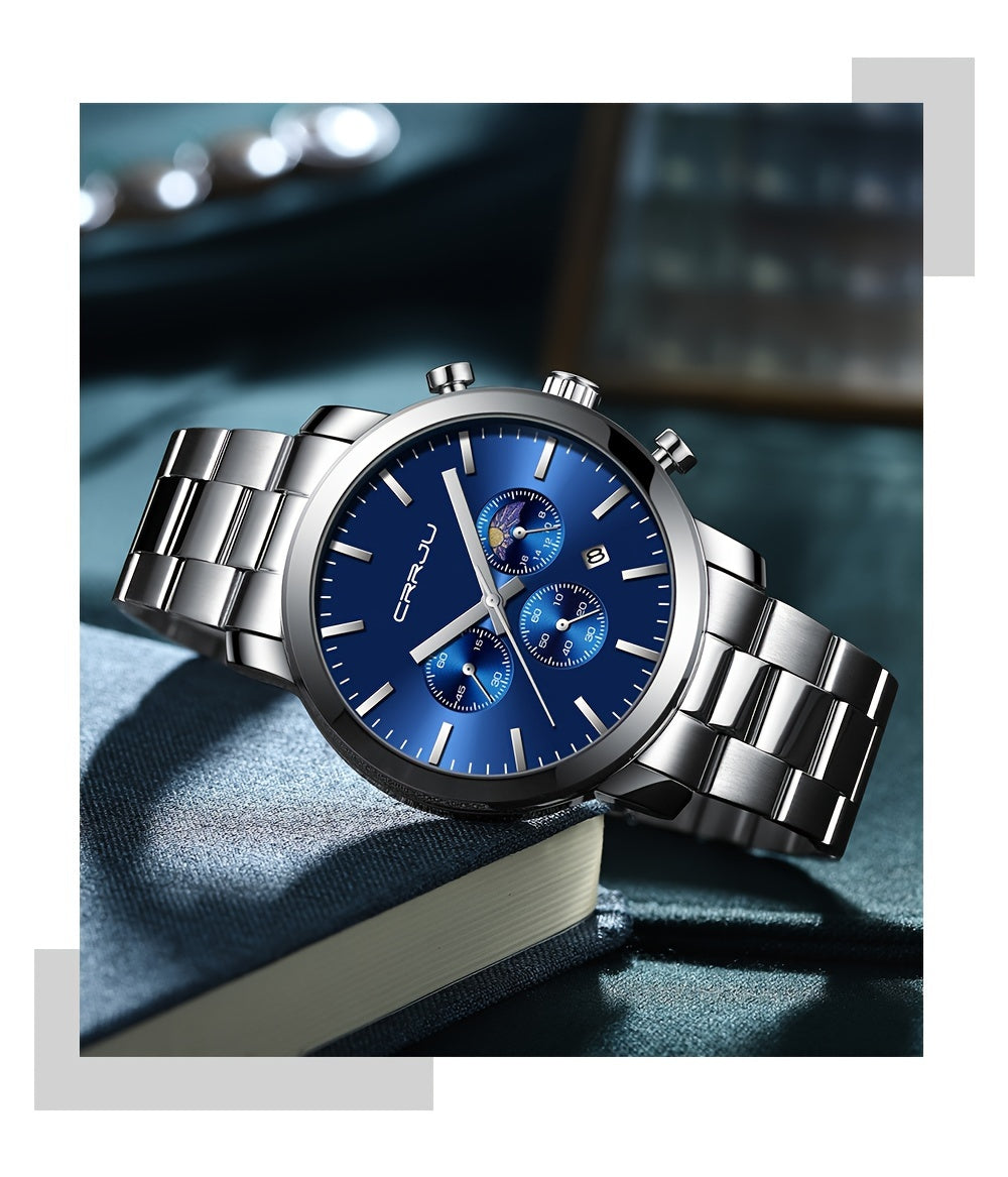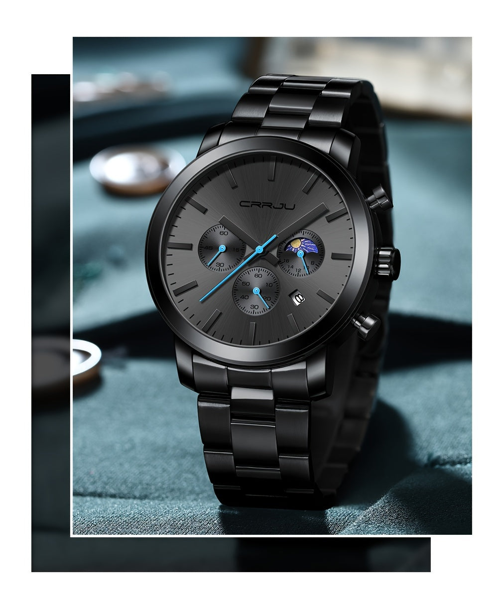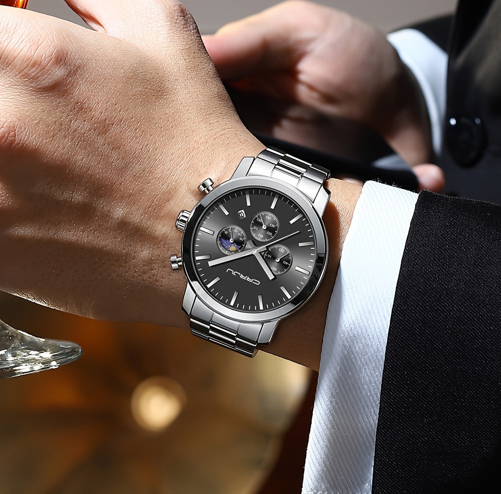 CRRJU տղամարդու շքեղ նորաձև ժամացույց՝ նրբագեղ գործնական ոճով, չժանգոտվող պողպատե ժապավենով, բազմաֆունկցիոնալ քվարցային ժամացույց՝ քրոնոգրաֆով, ամսաթվի ցուցադրմամբ, լուսավոր սլաքներով և ենթացուցիչով, հարմար է կանանց համար