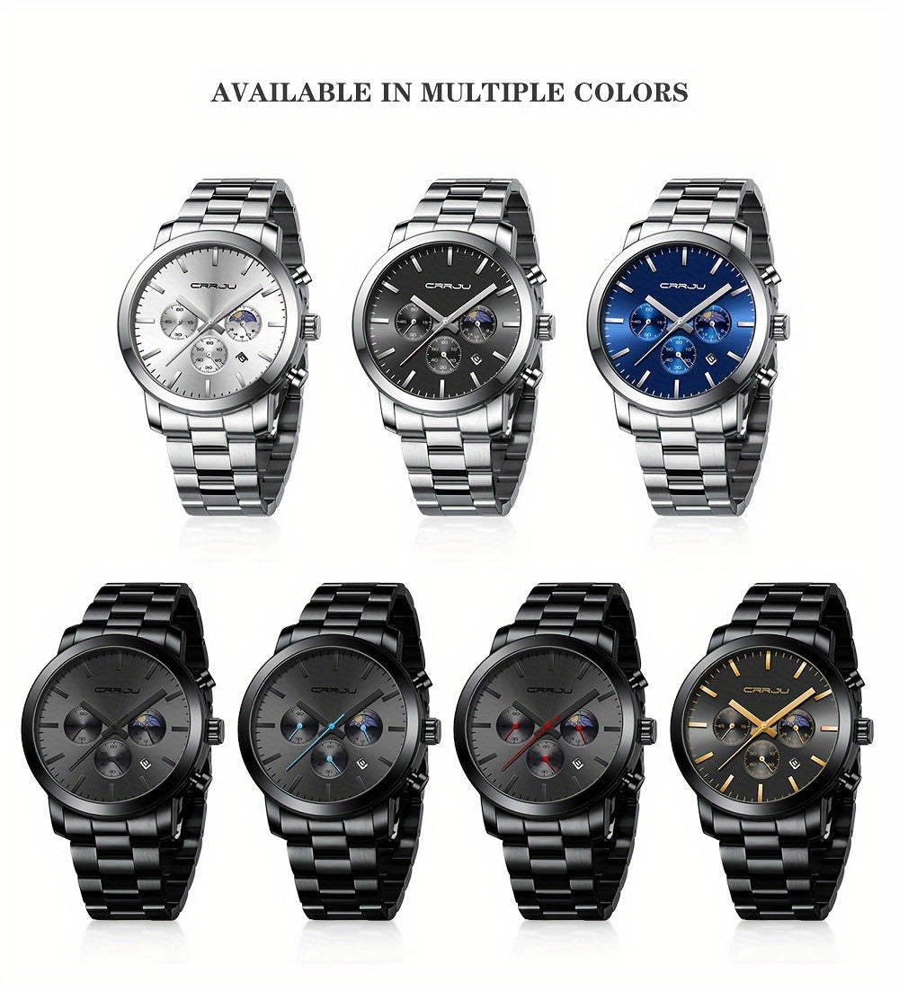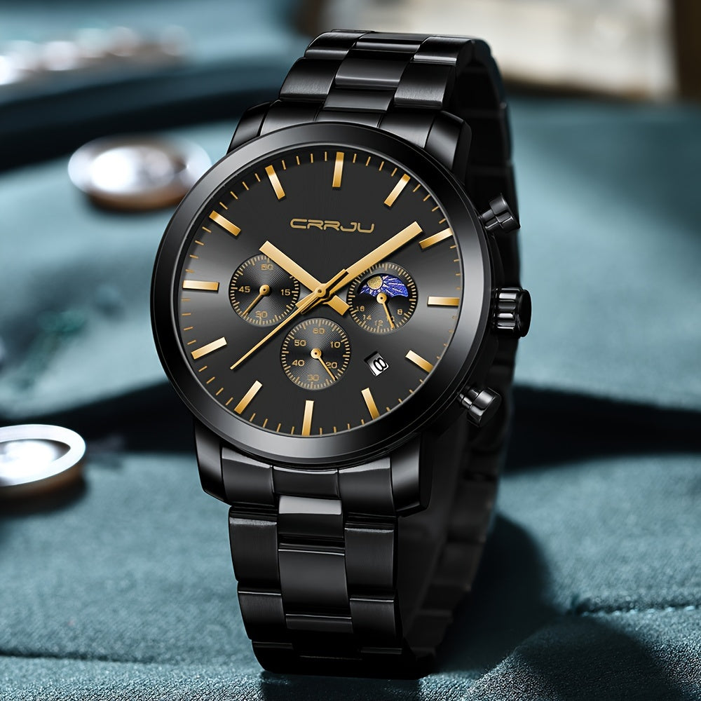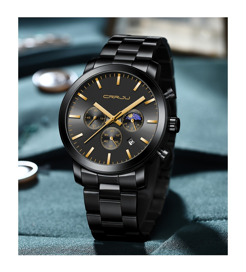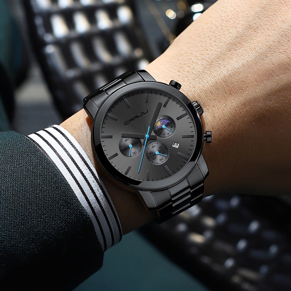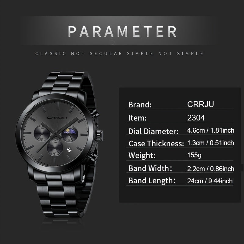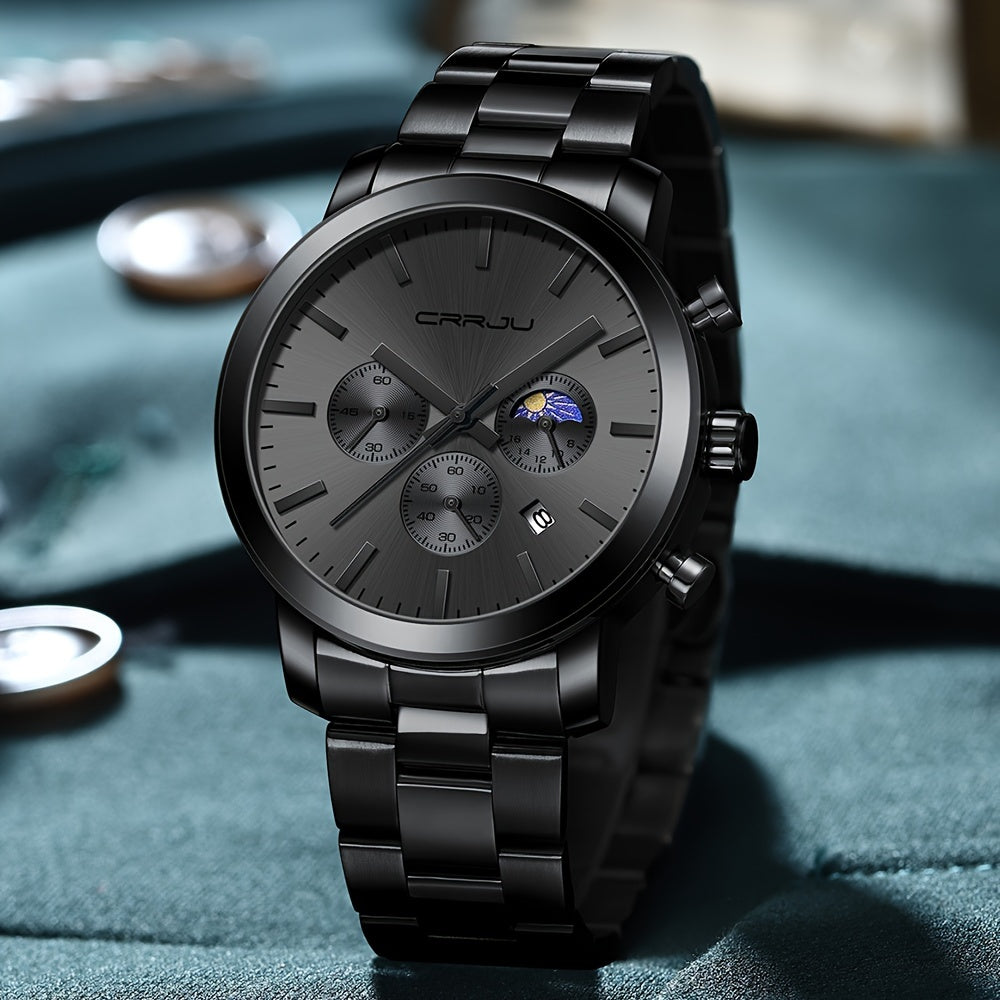 CRRJU տղամարդու շքեղ նորաձև ժամացույց՝ նրբագեղ գործնական ոճով, չժանգոտվող պողպատե ժապավենով, բազմաֆունկցիոնալ քվարցային ժամացույց՝ քրոնոգրաֆով, ամսաթվի ցուցադրմամբ, լուսավոր սլաքներով և ենթացուցիչով, հարմար է կանանց համար
