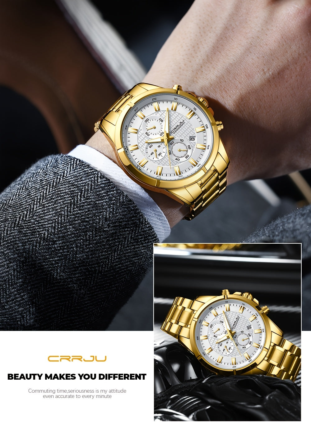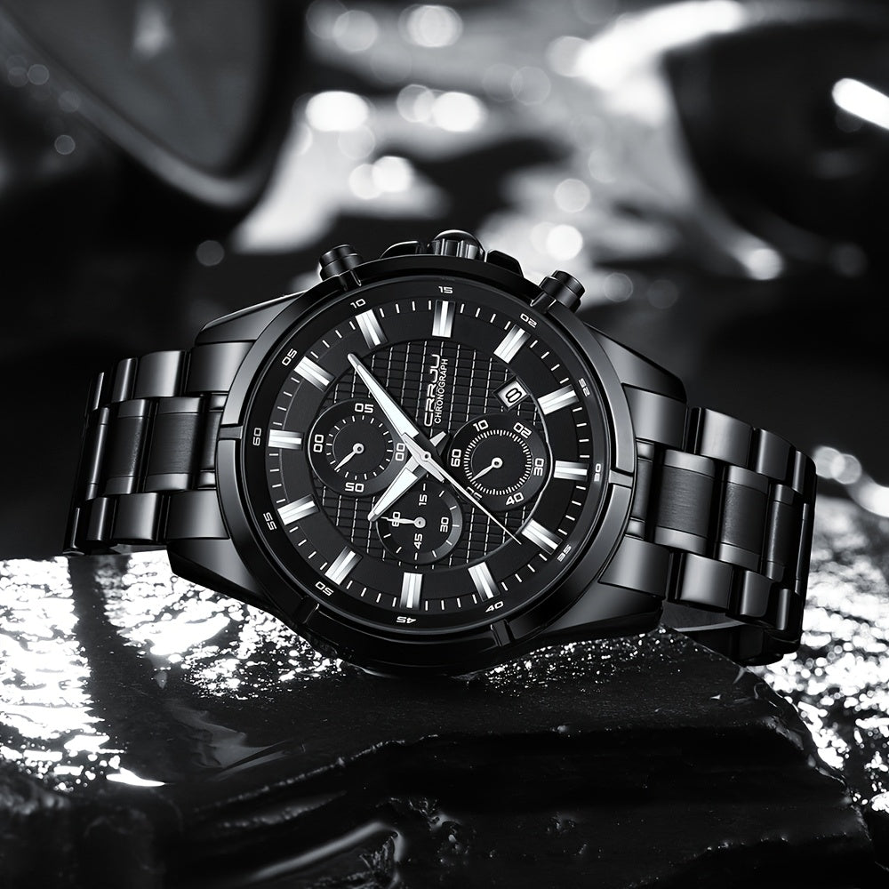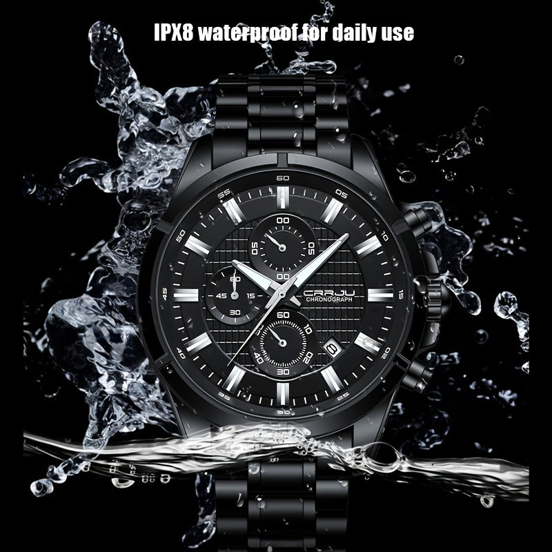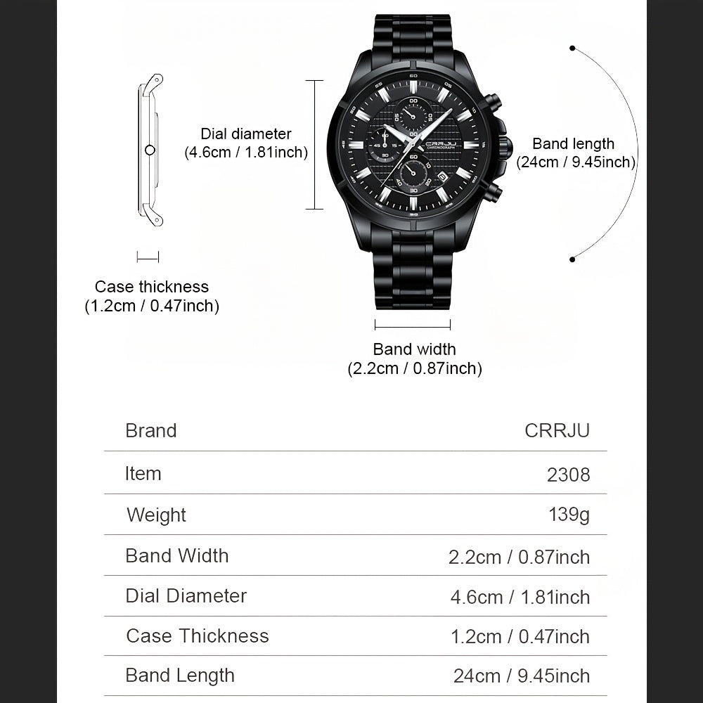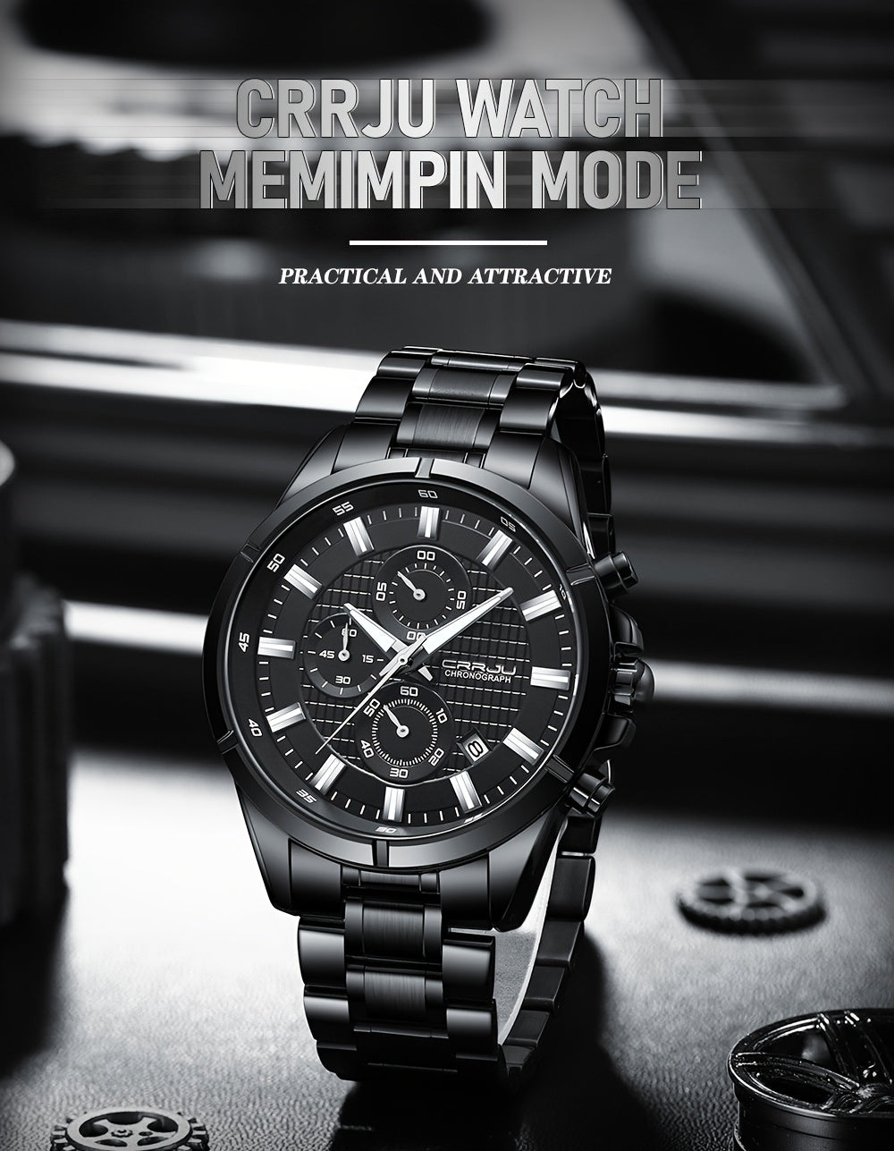 CRRJU տղամարդու ժամացույց՝ նորաձև, շքեղ, բազմաֆունկցիոնալ, չժանգոտվող պողպատից, քվարցե ժամացույց