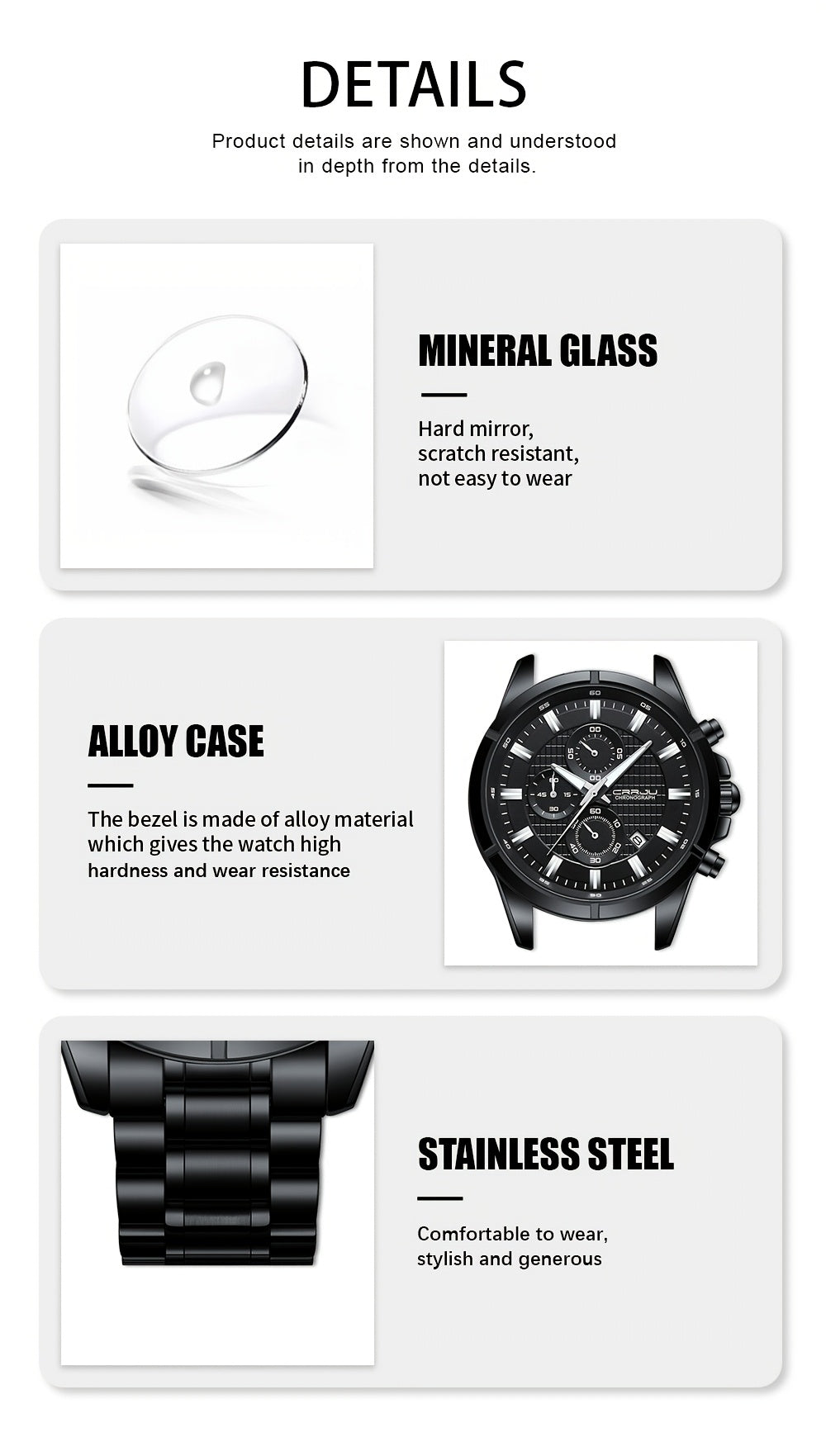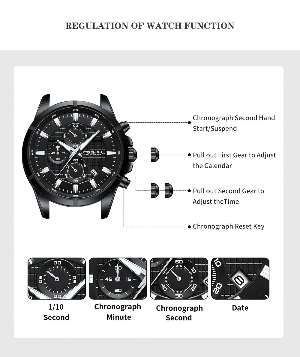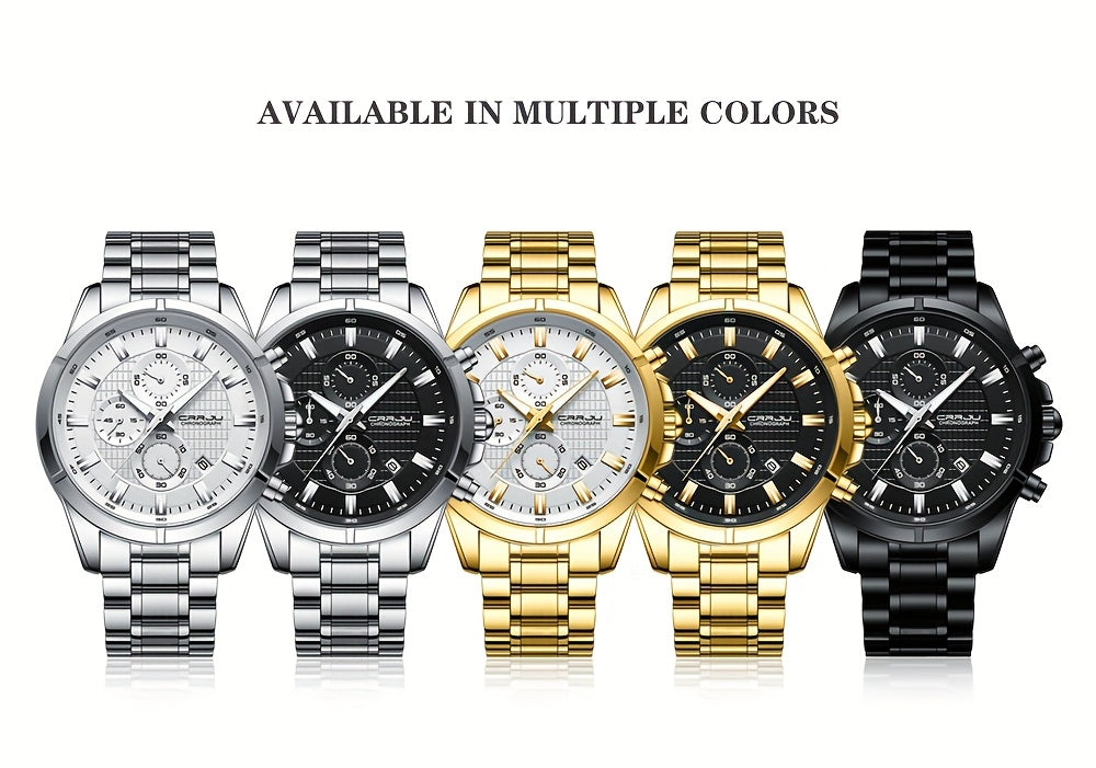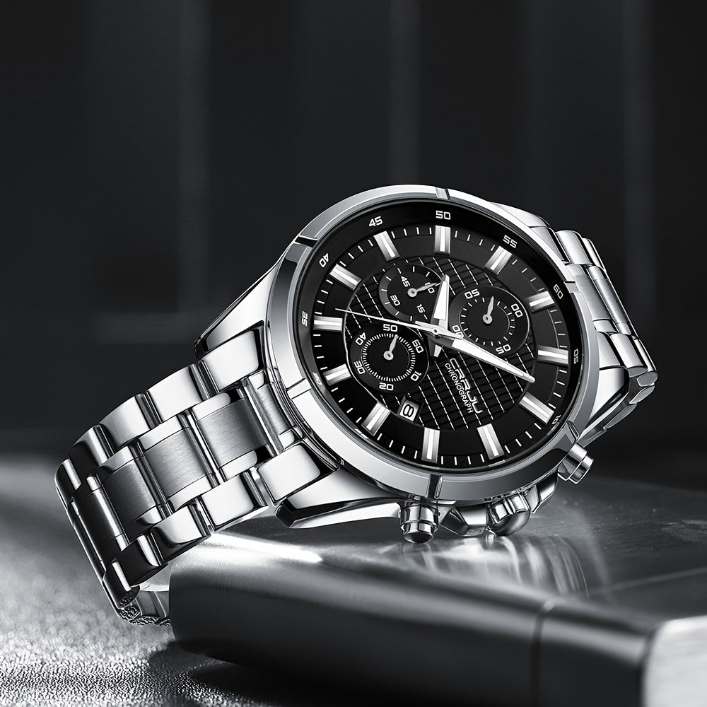 CRRJU տղամարդու ժամացույց՝ նորաձև, շքեղ, բազմաֆունկցիոնալ, չժանգոտվող պողպատից, քվարցե ժամացույց