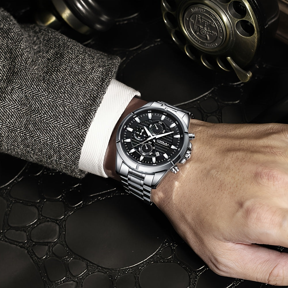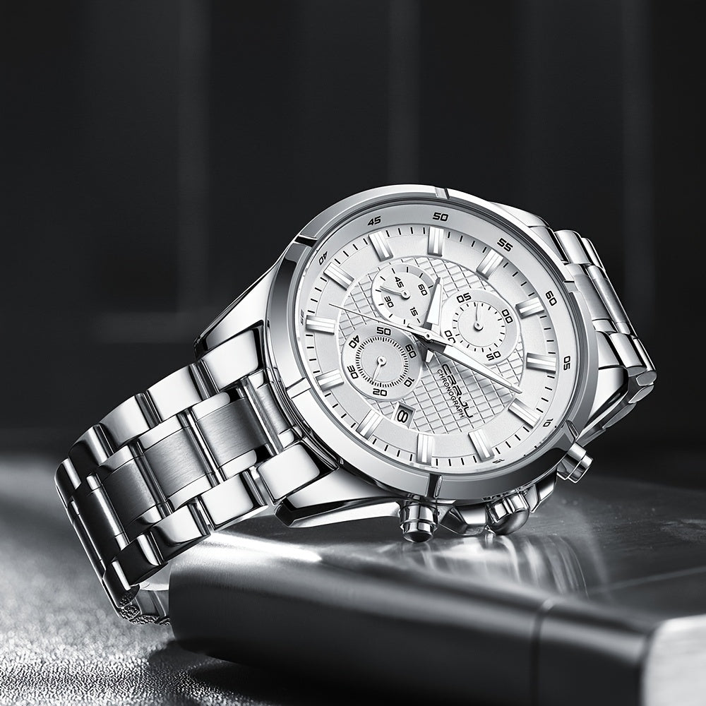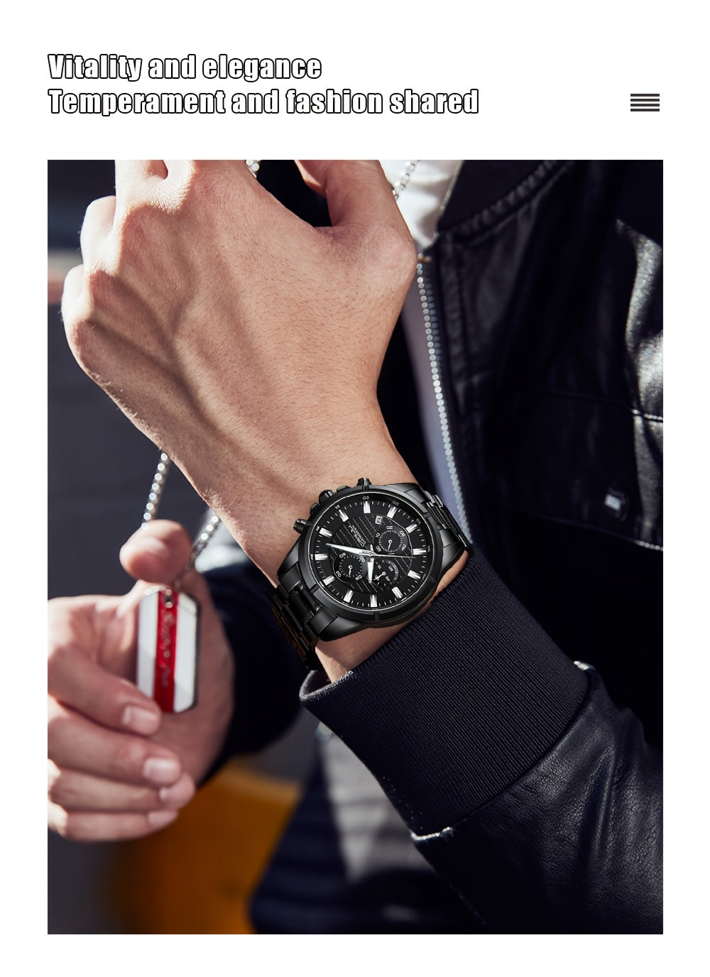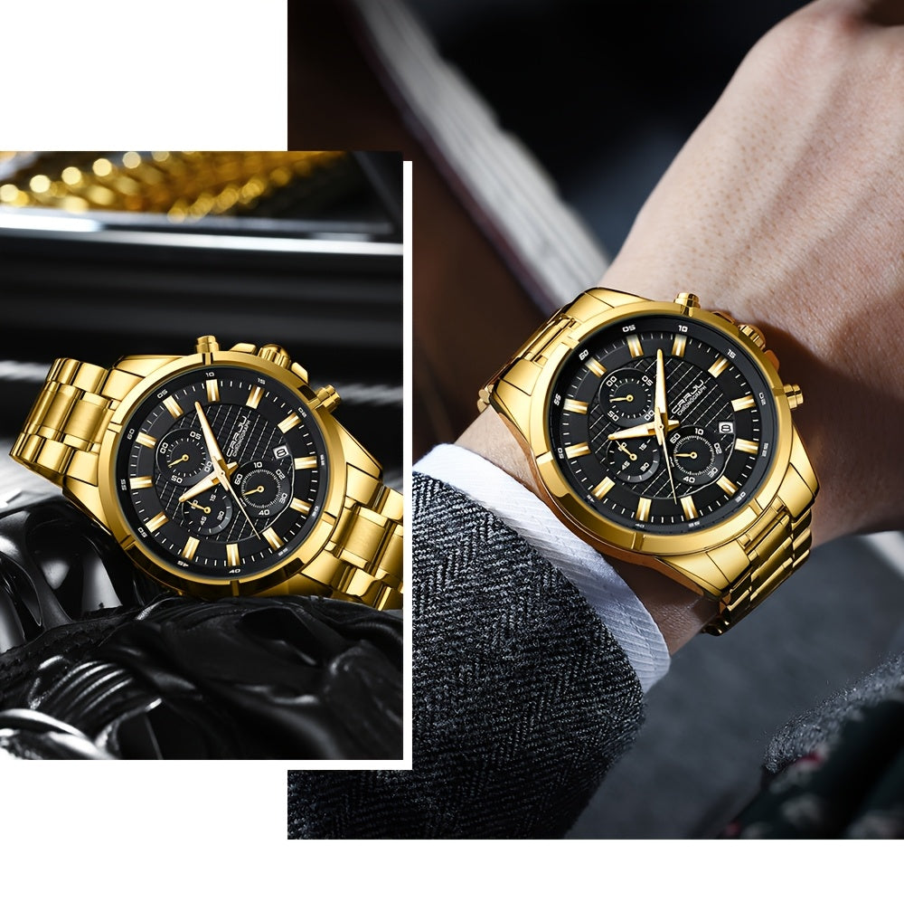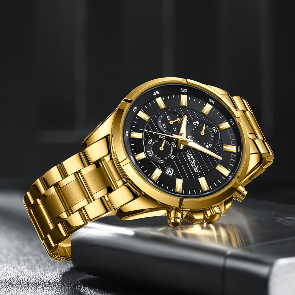 CRRJU տղամարդու ժամացույց՝ նորաձև, շքեղ, բազմաֆունկցիոնալ, չժանգոտվող պողպատից, քվարցե ժամացույց