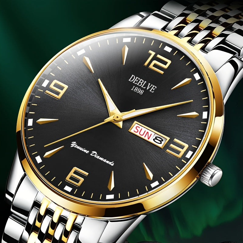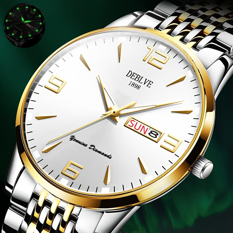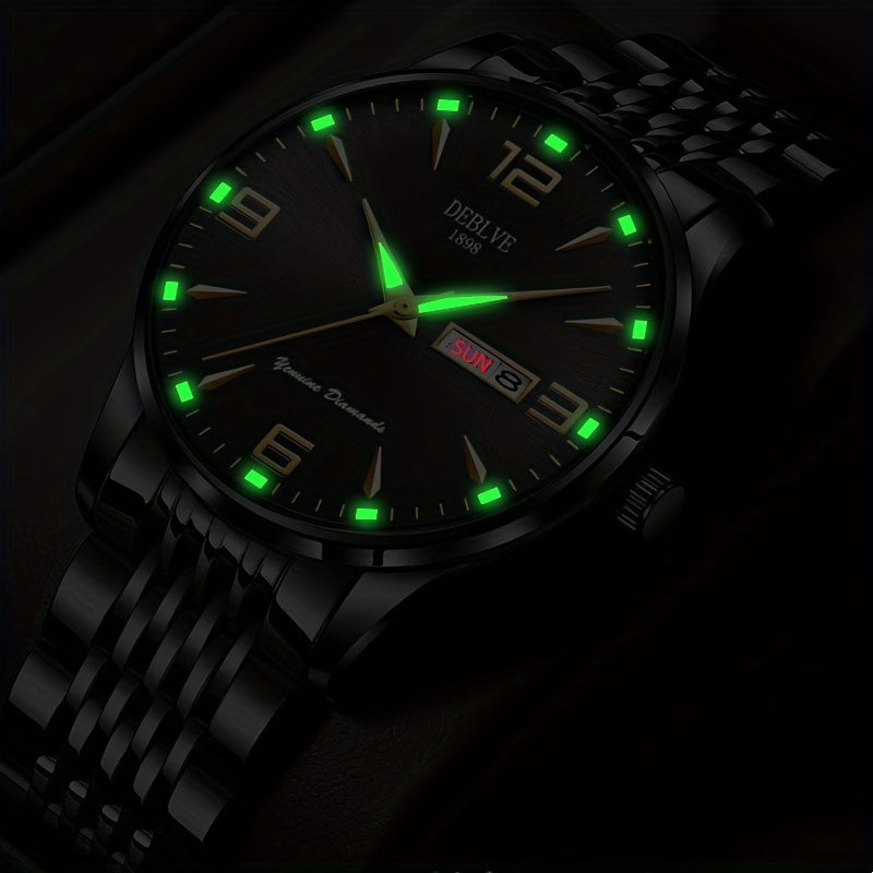 DEBLVE տղամարդկանց նրբագեղ գործնական ժամացույց՝ գերբարակ համաձուլվածքից, լուսավոր սլաքներով, օրացույցի և շաբաթվա ցուցադրմամբ, ջրակայուն, սպորտային պողպատե ժապավեն՝ ամուր ամրակով