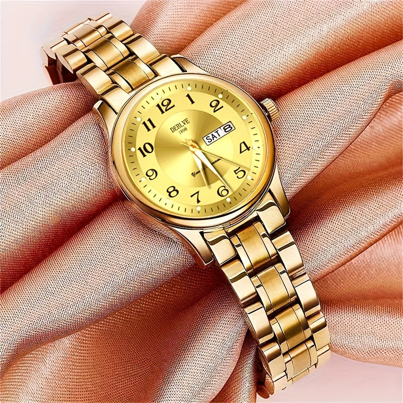DEBLVE կանացի գերբարակ չժանգոտվող պողպատից քվարցային ժամացույց - ոճային, թեթև, IPX7 օրացույցով, լուսավոր օրվա էկրանով և չժանգոտվող պողպատե ժապավենով - իդեալական է առօրյա հագուստի համար, DEBLVE